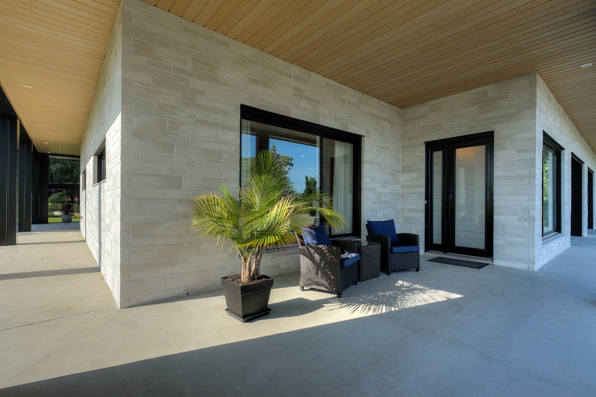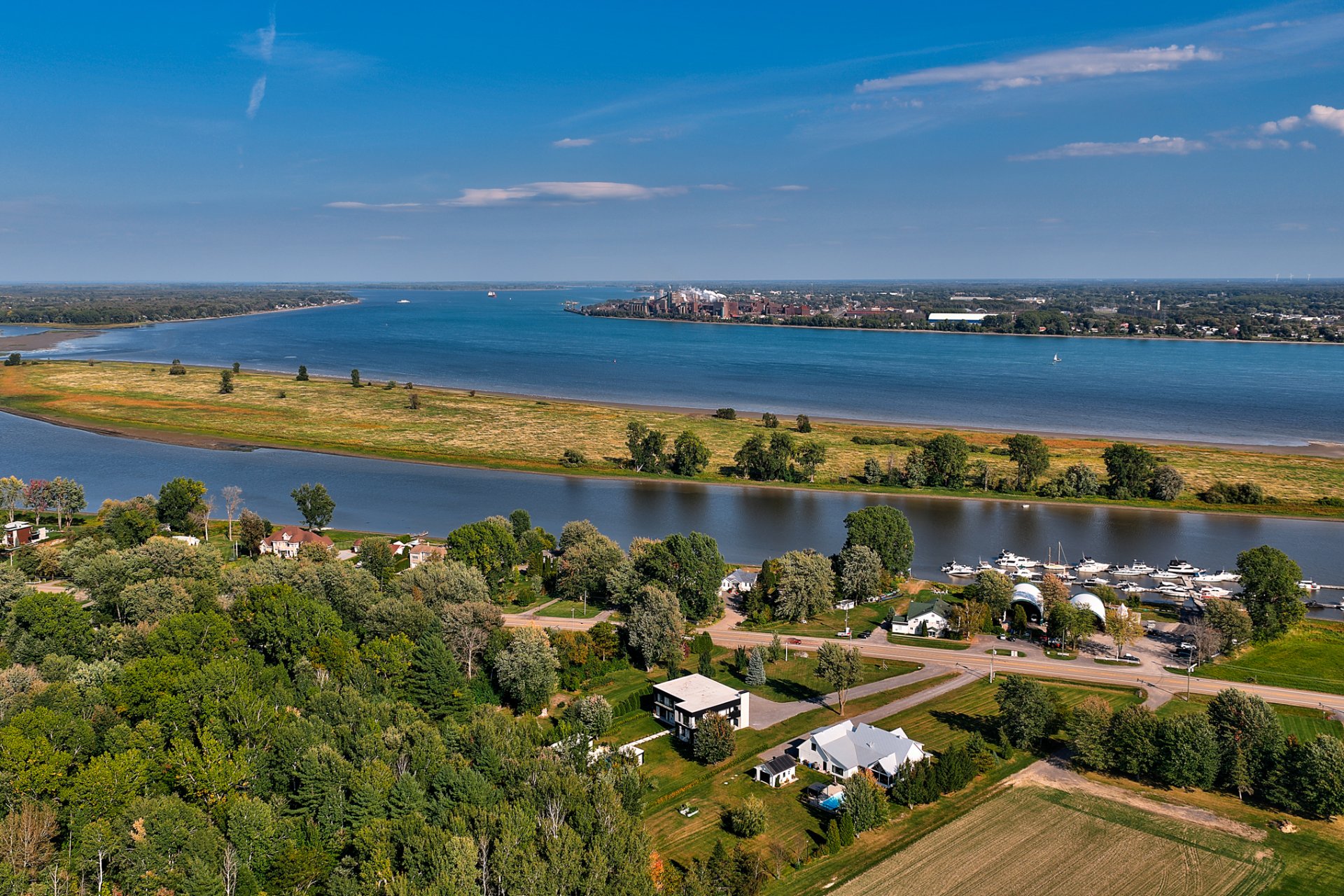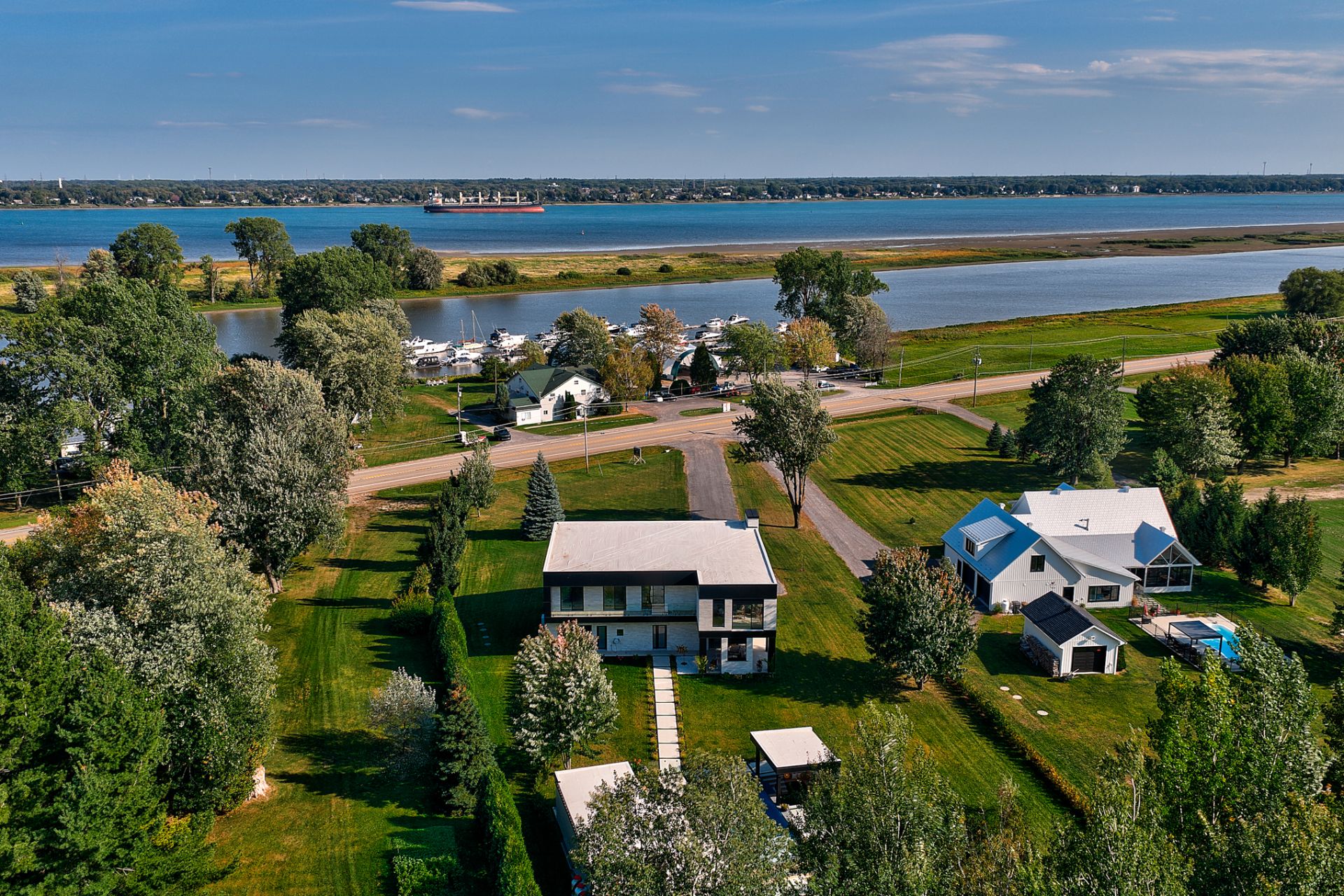 Located on a large lot offering privacy and tranquility, this contemporary residence is set adjacent the MARINA -- ideal for installing your BOAT -- with spectacular VIEWS of the Saint-Lawrence River, where SHIPS pass by and every season paints a new landscape.