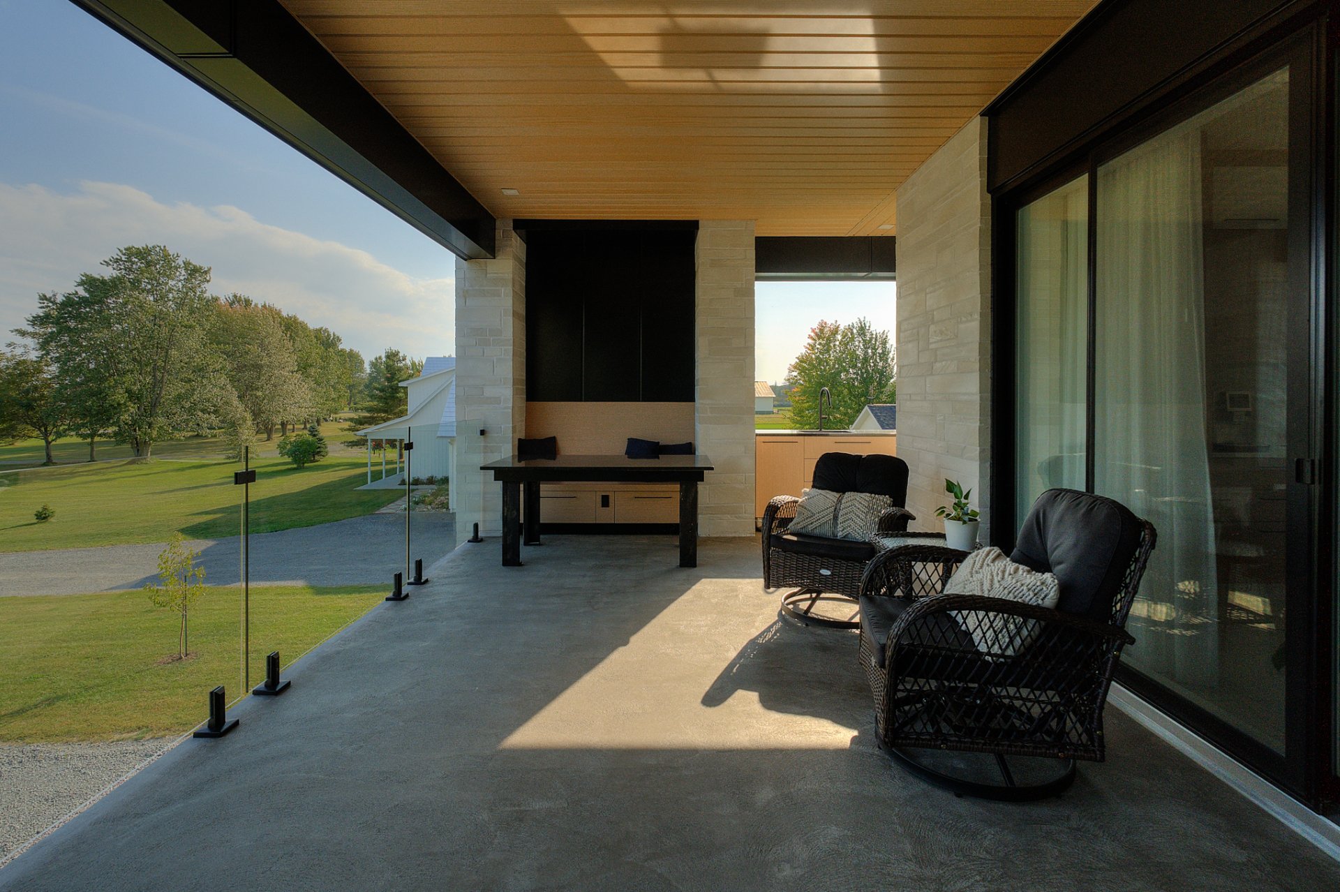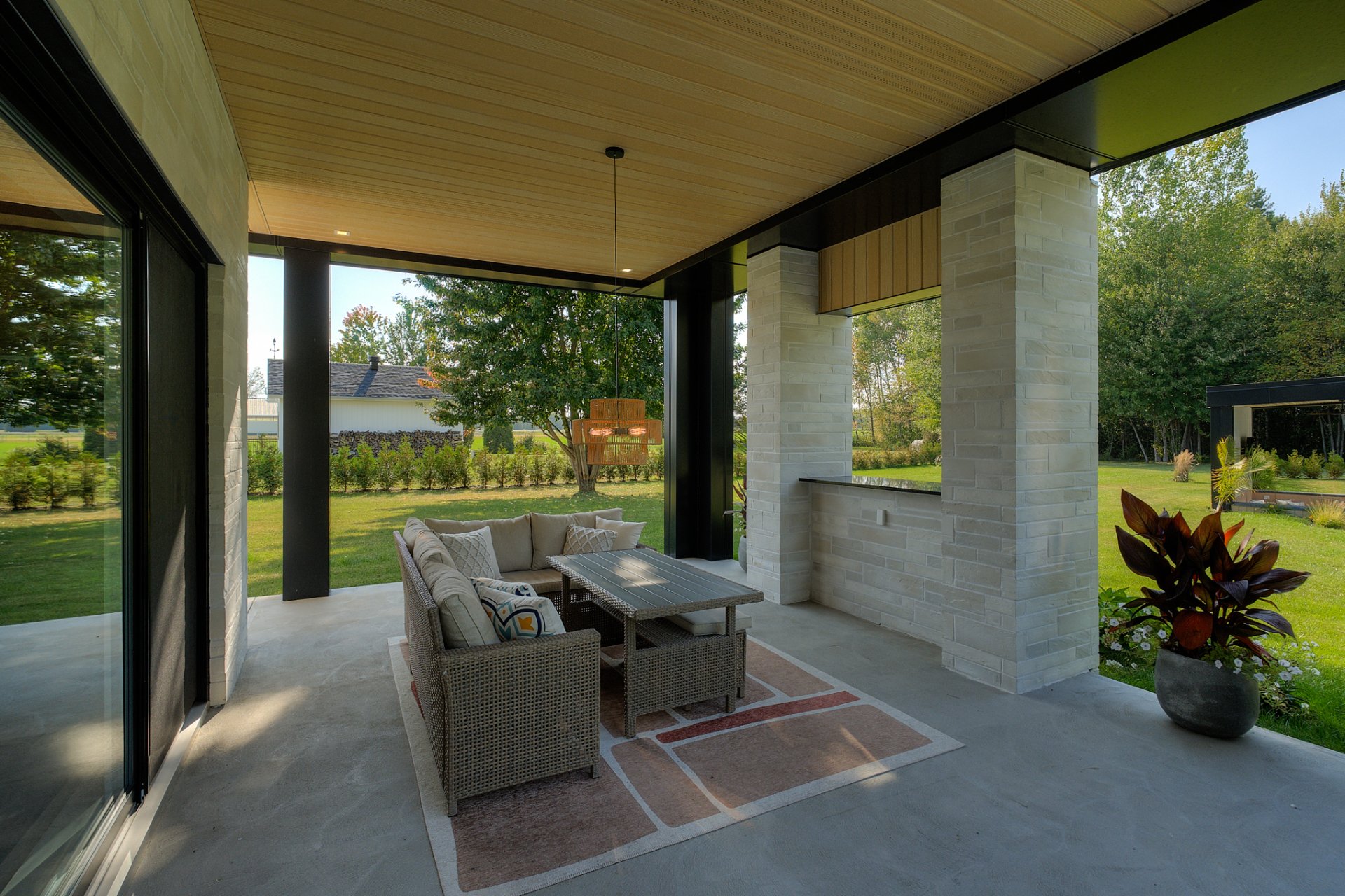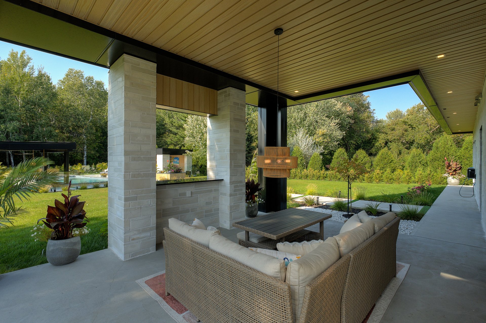 Located on a large lot offering privacy and tranquility, this contemporary residence is set adjacent the MARINA -- ideal for installing your BOAT -- with spectacular VIEWS of the Saint-Lawrence River, where SHIPS pass by and every season paints a new landscape.