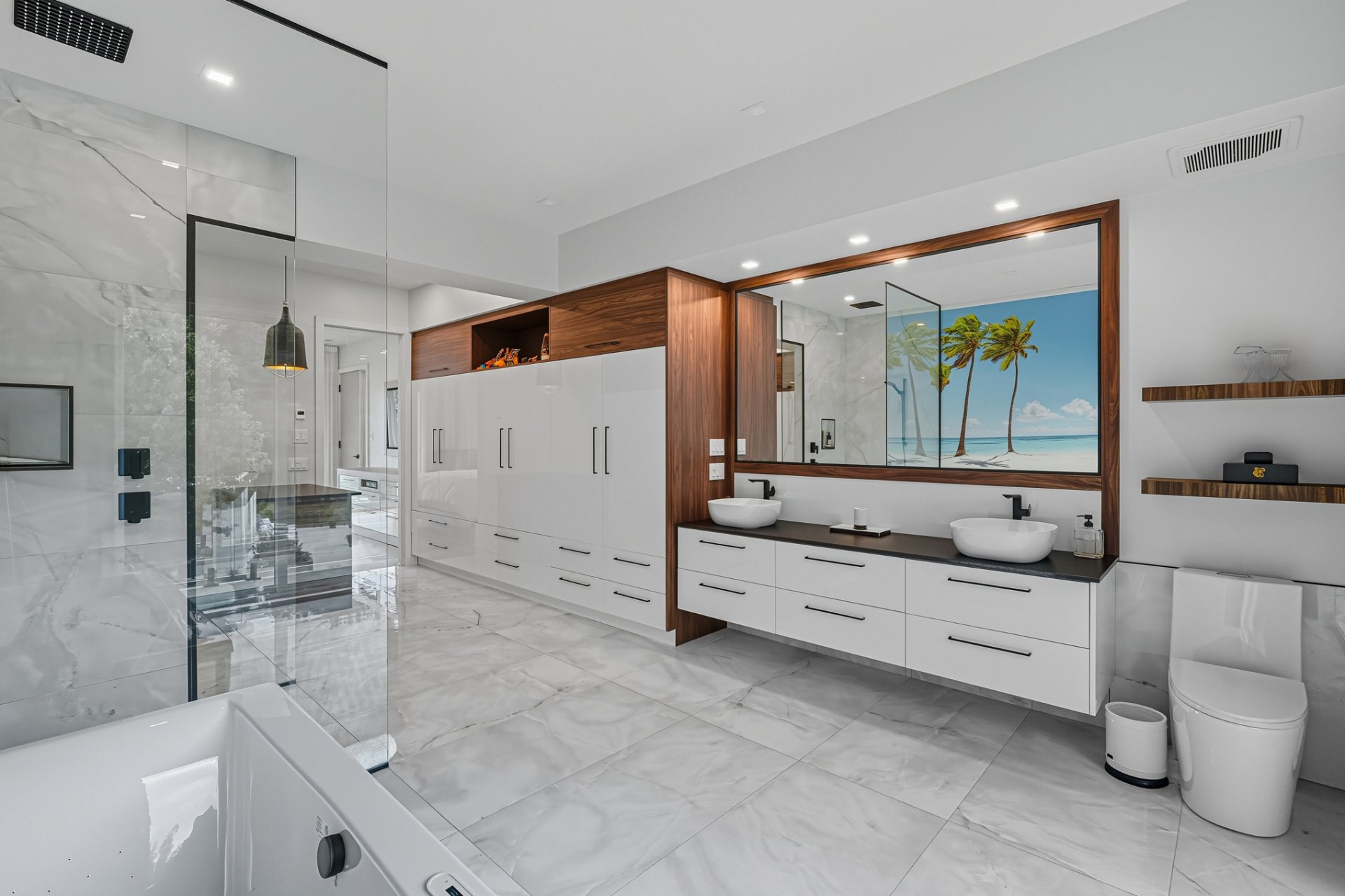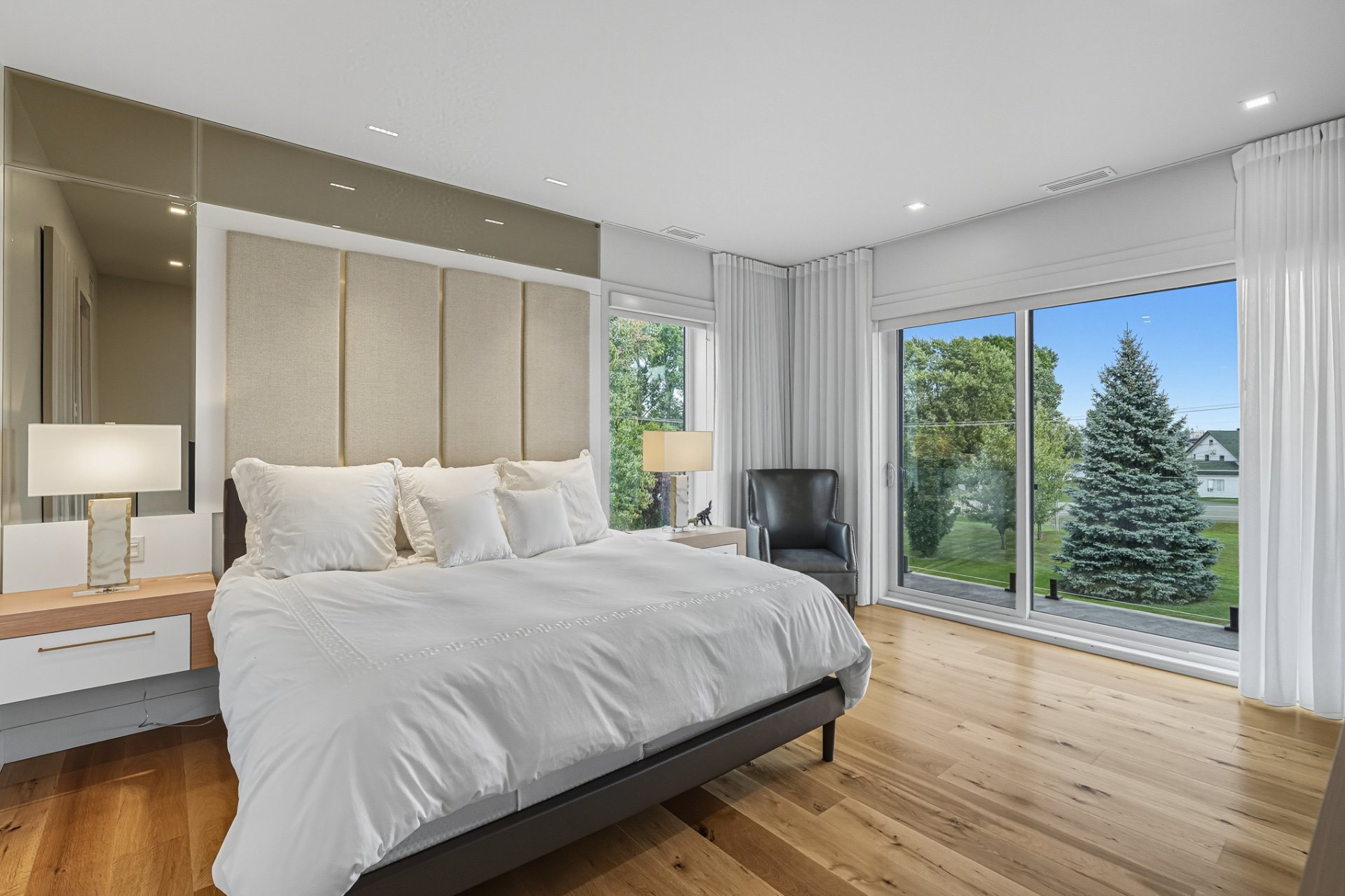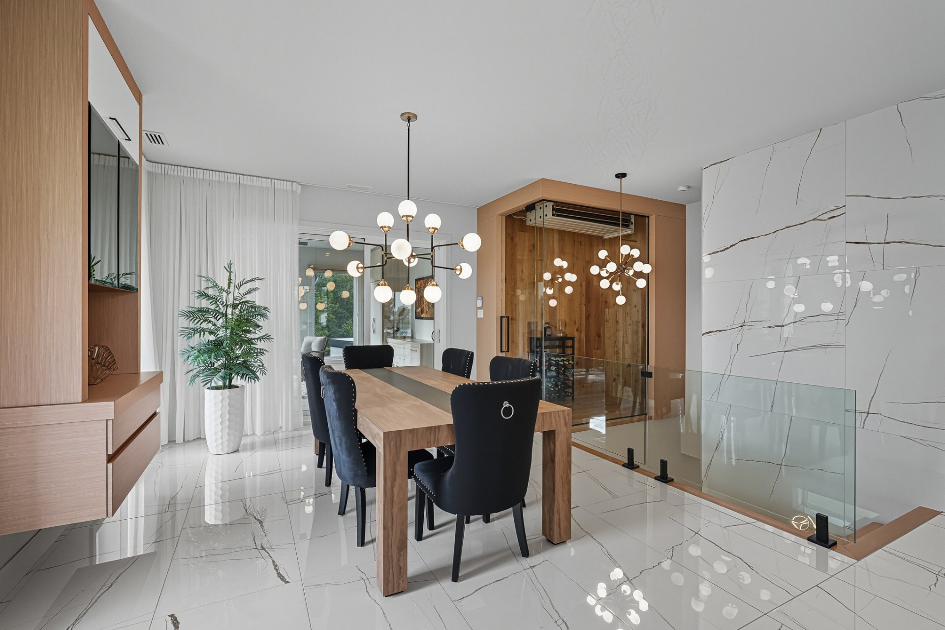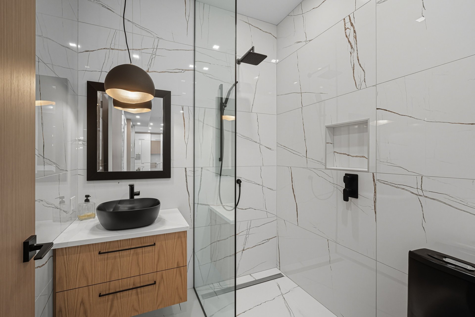 Reached by the elevator, the upper level reveals an impressive living space where LIGHT takes center stage. The kitchen, lounge and dining area unfold in a refined atmosphere, highlighted by a GLASS WINE CELLAR. Three spacious bedrooms complete this floor. The primary suite is a true haven: large walk-in closet and private bathroom with Italian shower and freestanding tub. The two additional bedrooms include BUILT-IN custom furniture -- perfect for an organized and harmonious lifestyle.