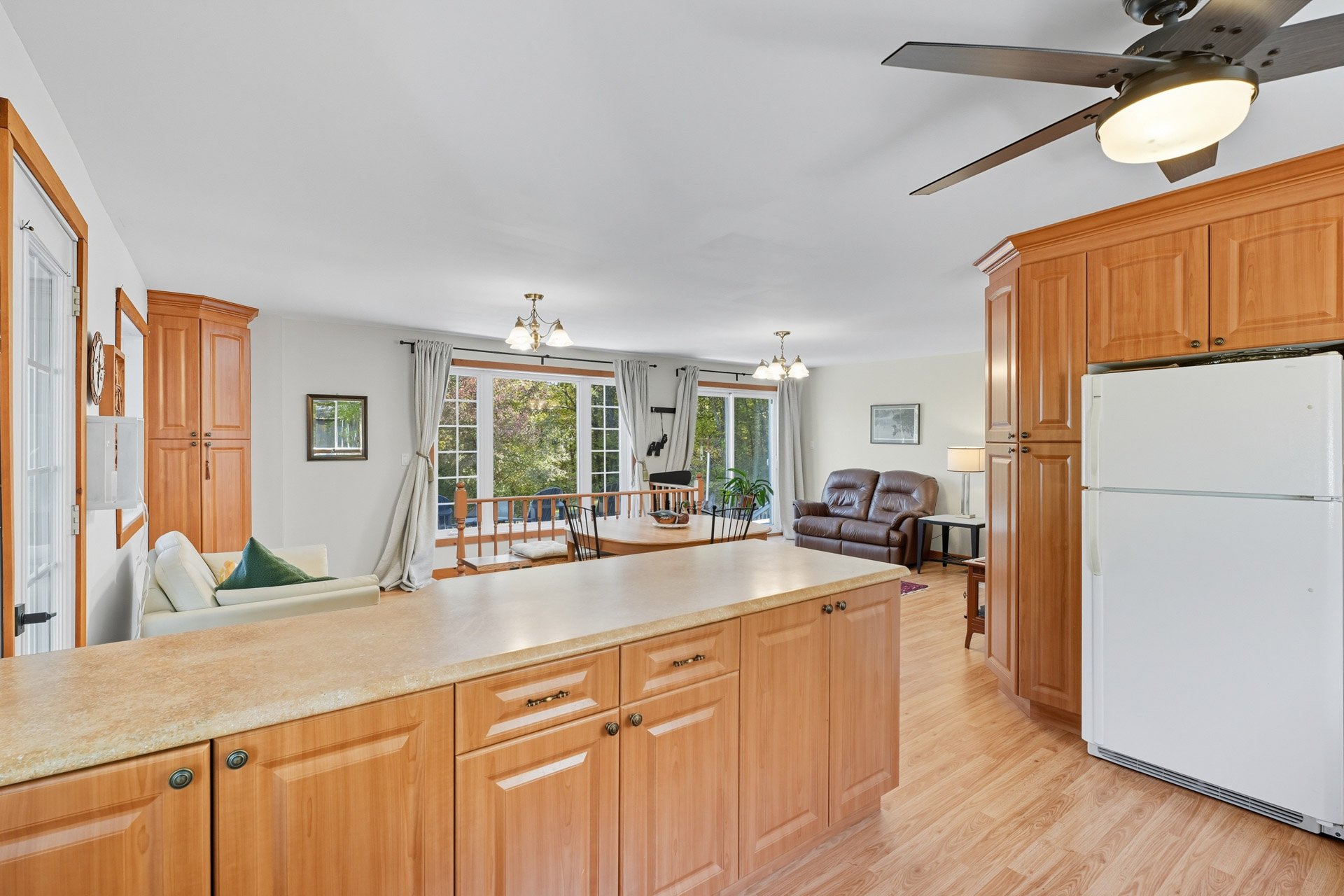 Experience the unique pleasure of living on an enchanting site filled with serenity, where breathtaking views blend with the natural beauty of Lake Heney. Nestled on nearly 2 acres of land, this property stands out for its privacy, peaceful surroundings, and amenities such as detached garage, shed, and large chicken coop. Fully renovated, the turnkey chalet blends comfort, charm, and functionality, featuring 4 bedrooms, 2 bathrooms, and bright living spaces, perfect for family and friends. Each day begins with a breathtaking view and ends with a sunset over the lake.