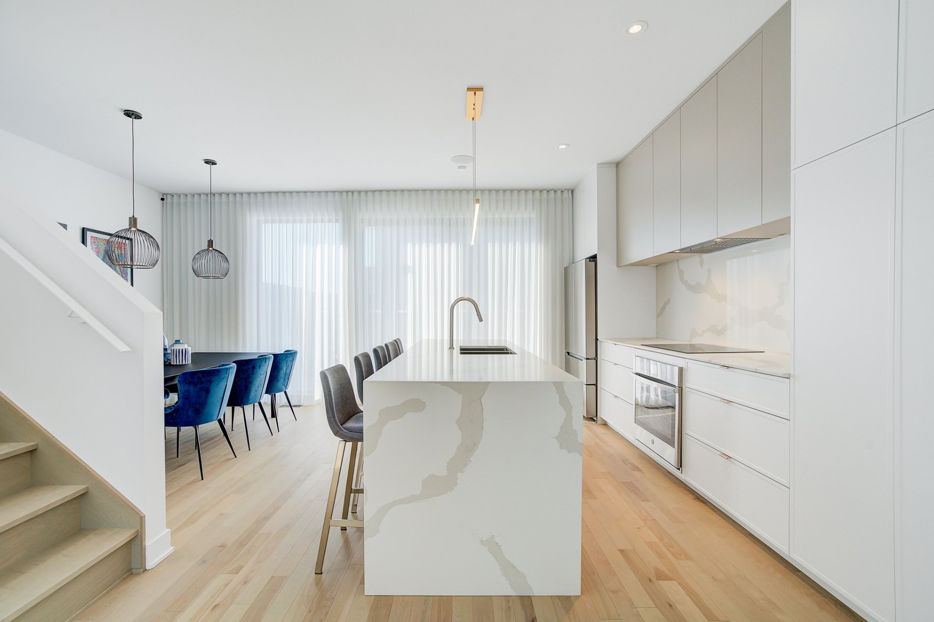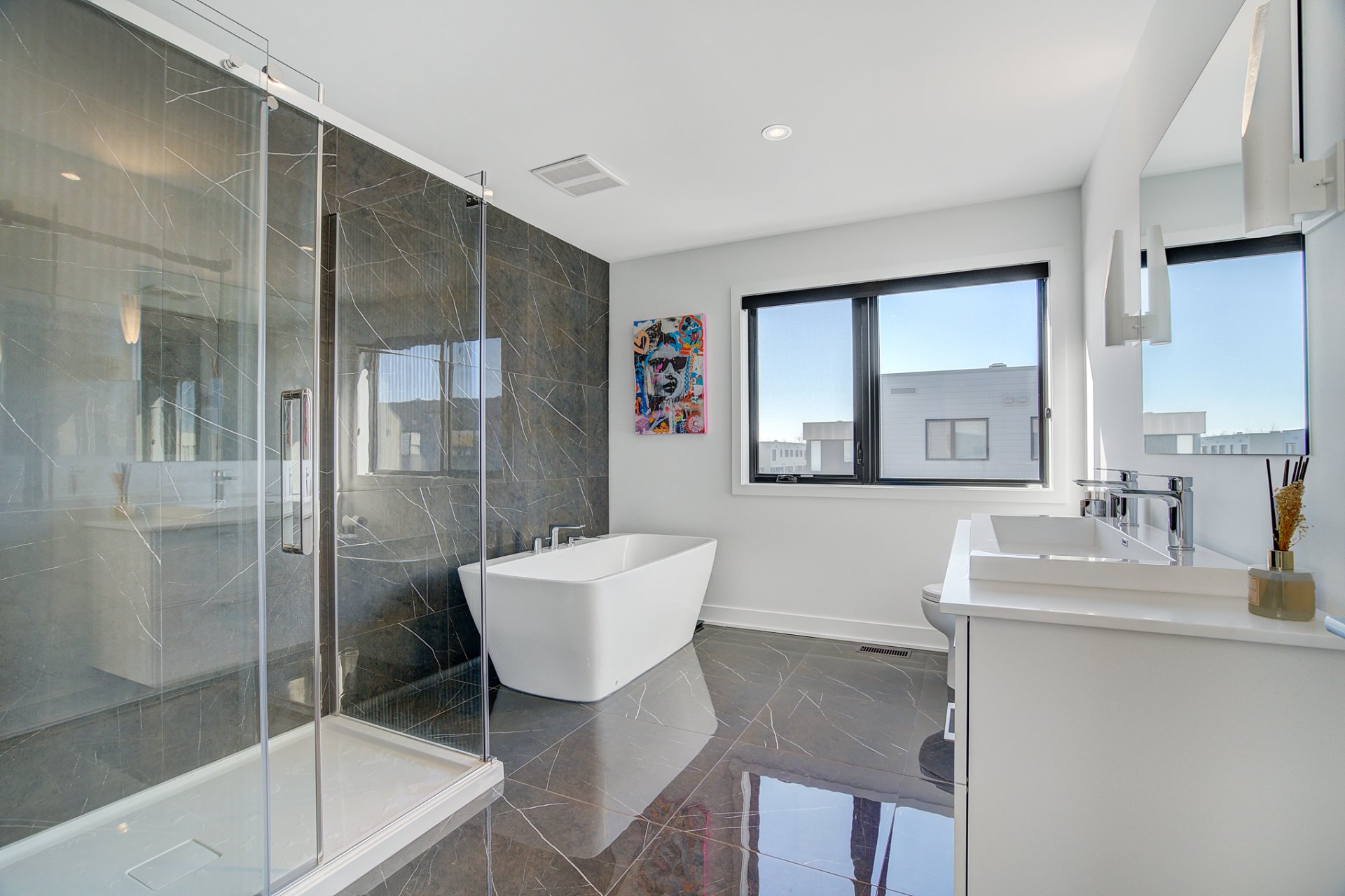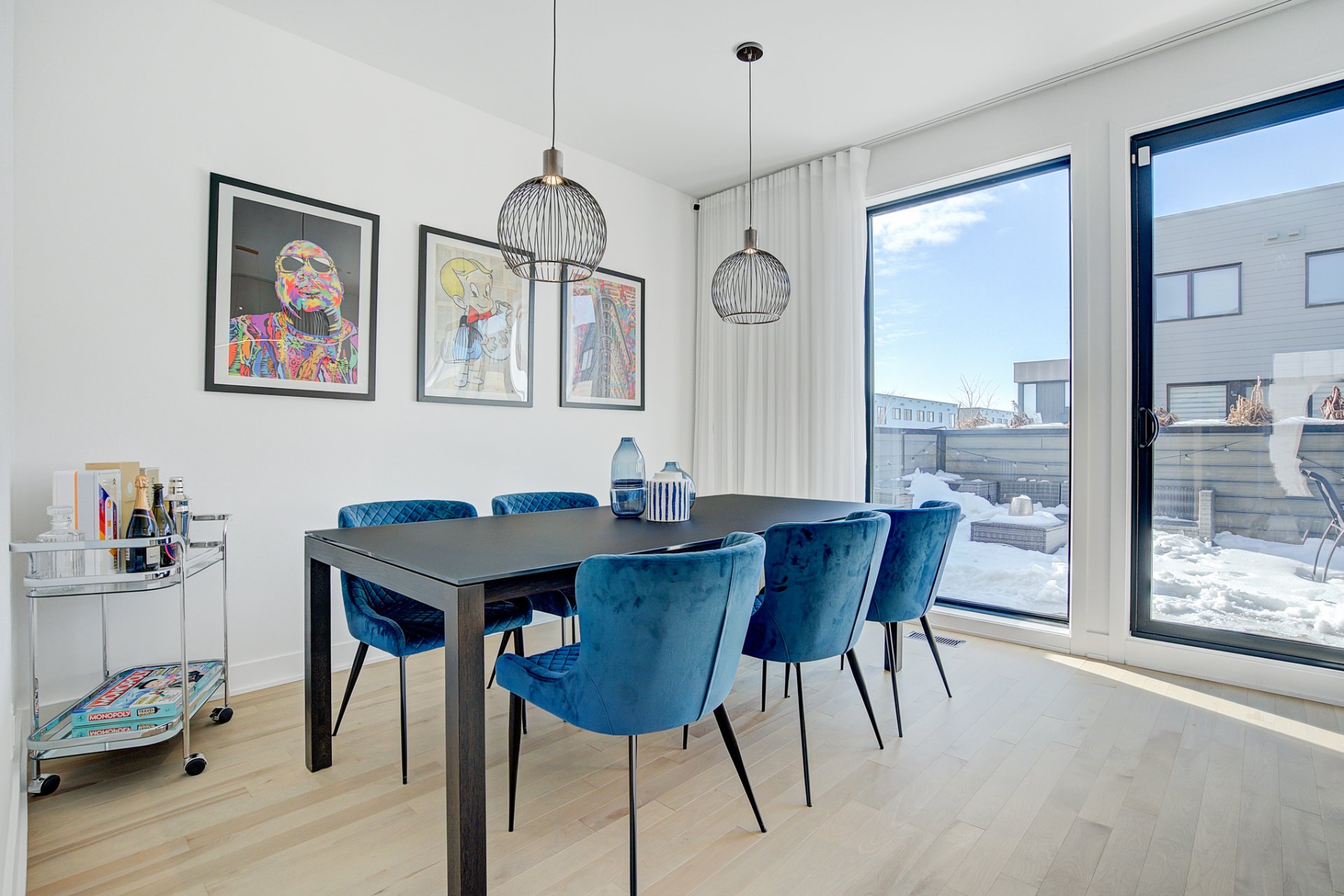 Charming south-facing corner home with a private entrance, offering a generous living area of 1,851 square feet spread over three levels (basement, ground floor, and upper level). This residence features three bedrooms, including two on the main level and one in the basement, as well as two full bathrooms and a powder room. It offers 9-foot ceilings on the ground floor and 10-foot ceilings in the entrance hall. The private double garage is ready for the installation of an electric vehicle charging station. Enjoy beautiful summer days on the 20-by-13-foot terrace, equipped with electricity and a spa connection.
