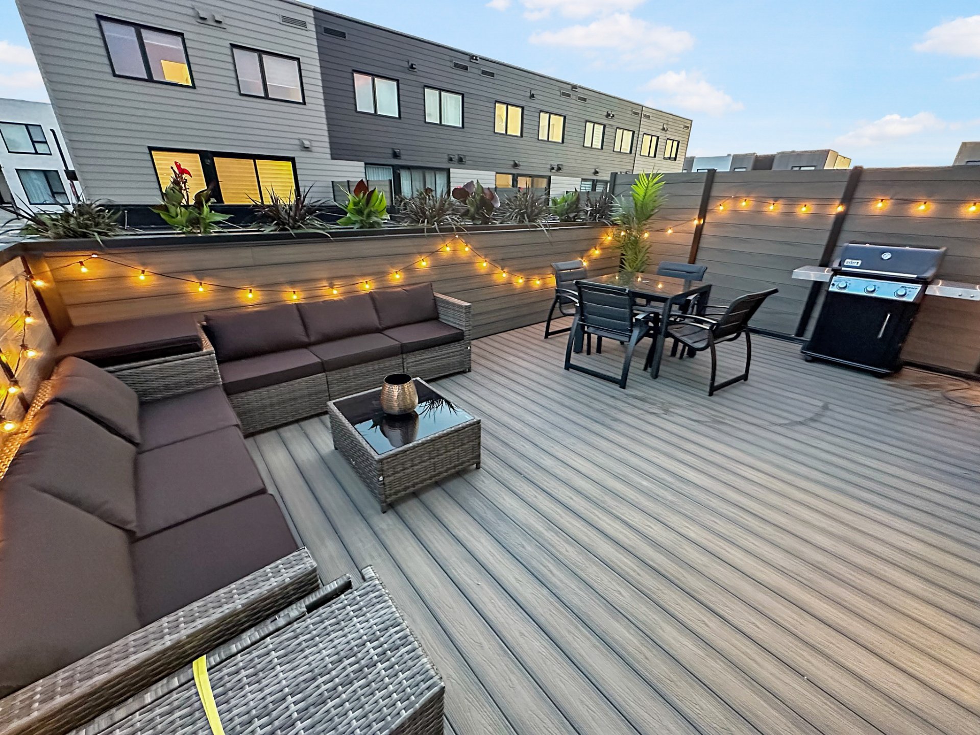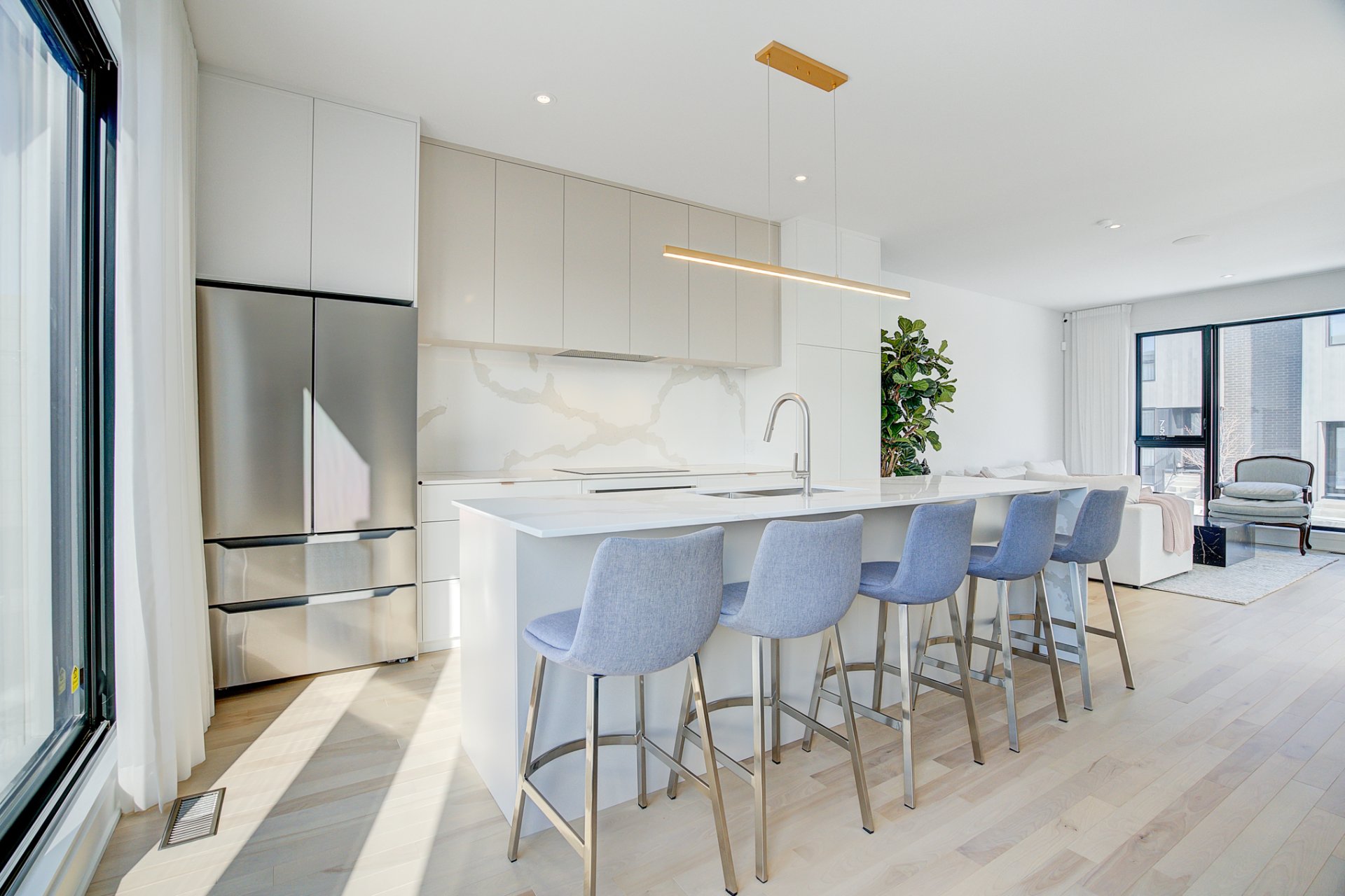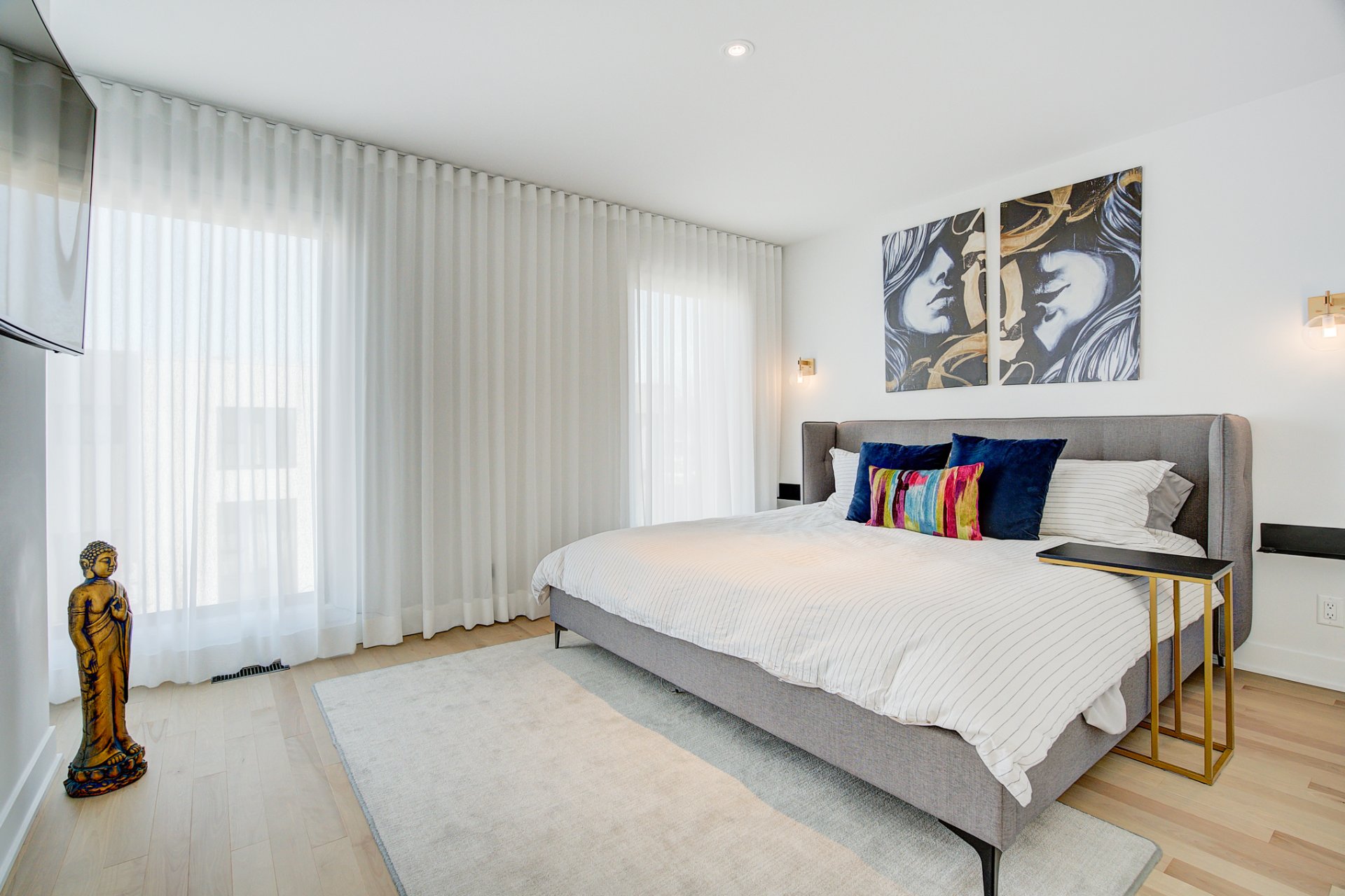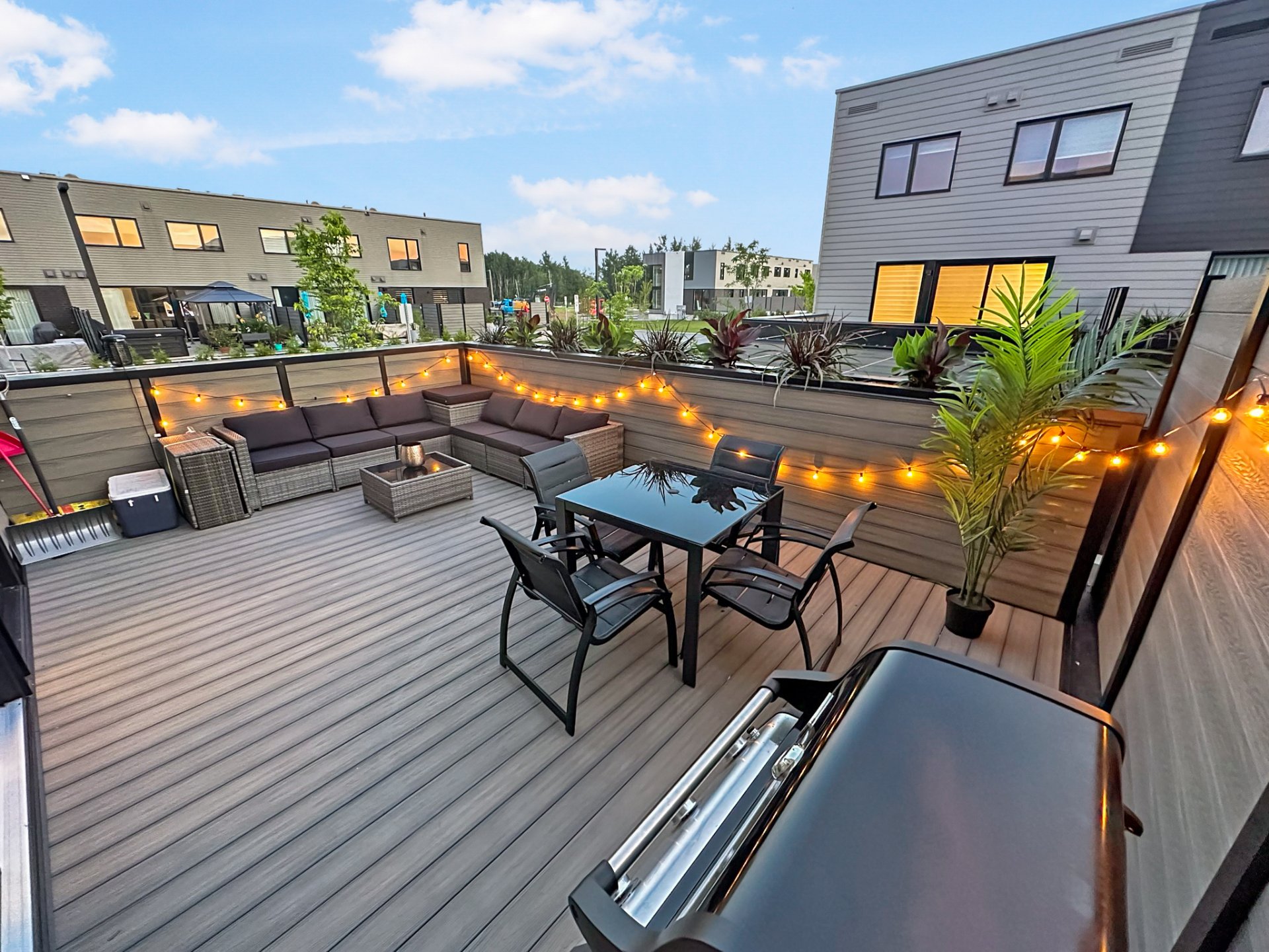 Charming south-facing corner home with a private entrance, offering a generous living area of 1,851 square feet spread over three levels (basement, ground floor, and upper level). This residence features three bedrooms, including two on the main level and one in the basement, as well as two full bathrooms and a powder room. It offers 9-foot ceilings on the ground floor and 10-foot ceilings in the entrance hall. The private double garage is ready for the installation of an electric vehicle charging station. Enjoy beautiful summer days on the 20-by-13-foot terrace, equipped with electricity and a spa connection.