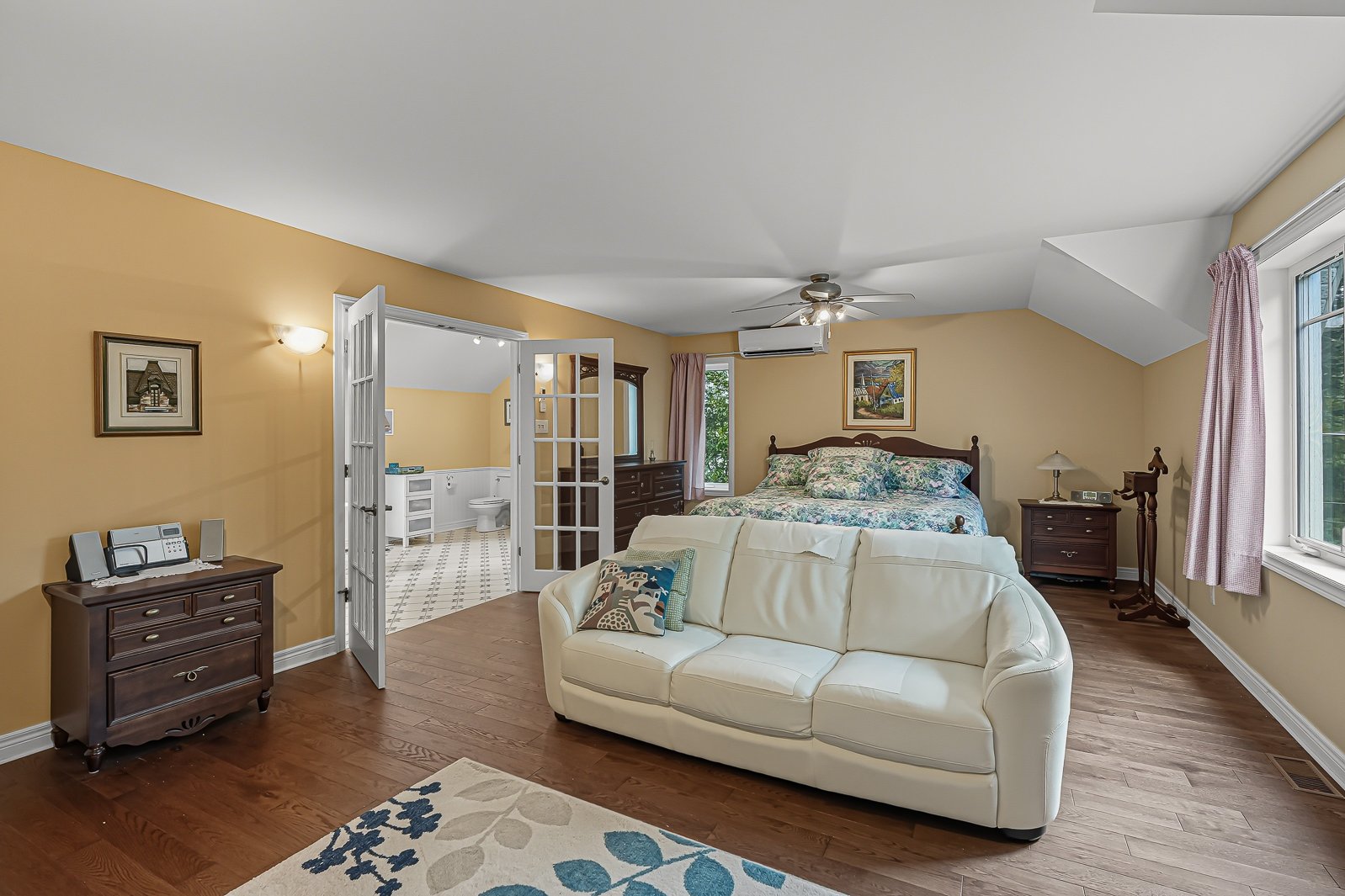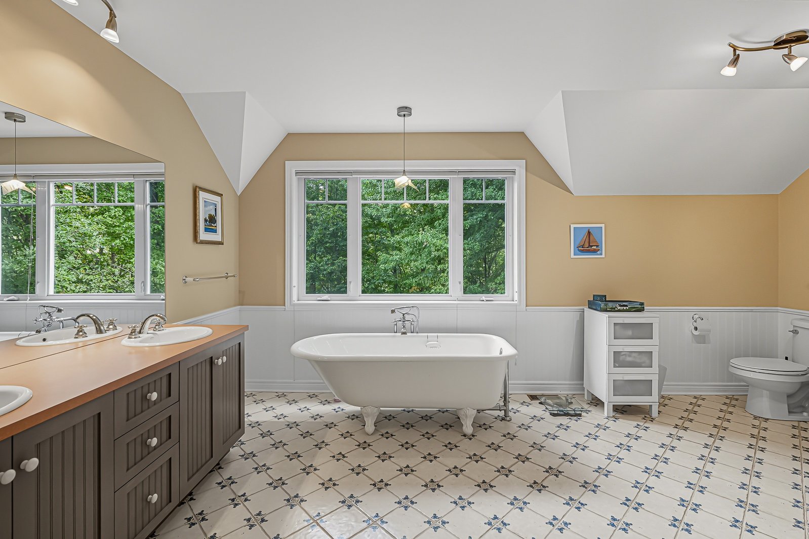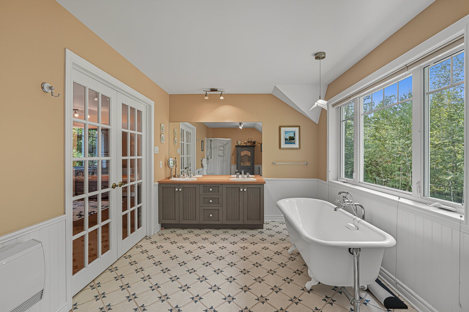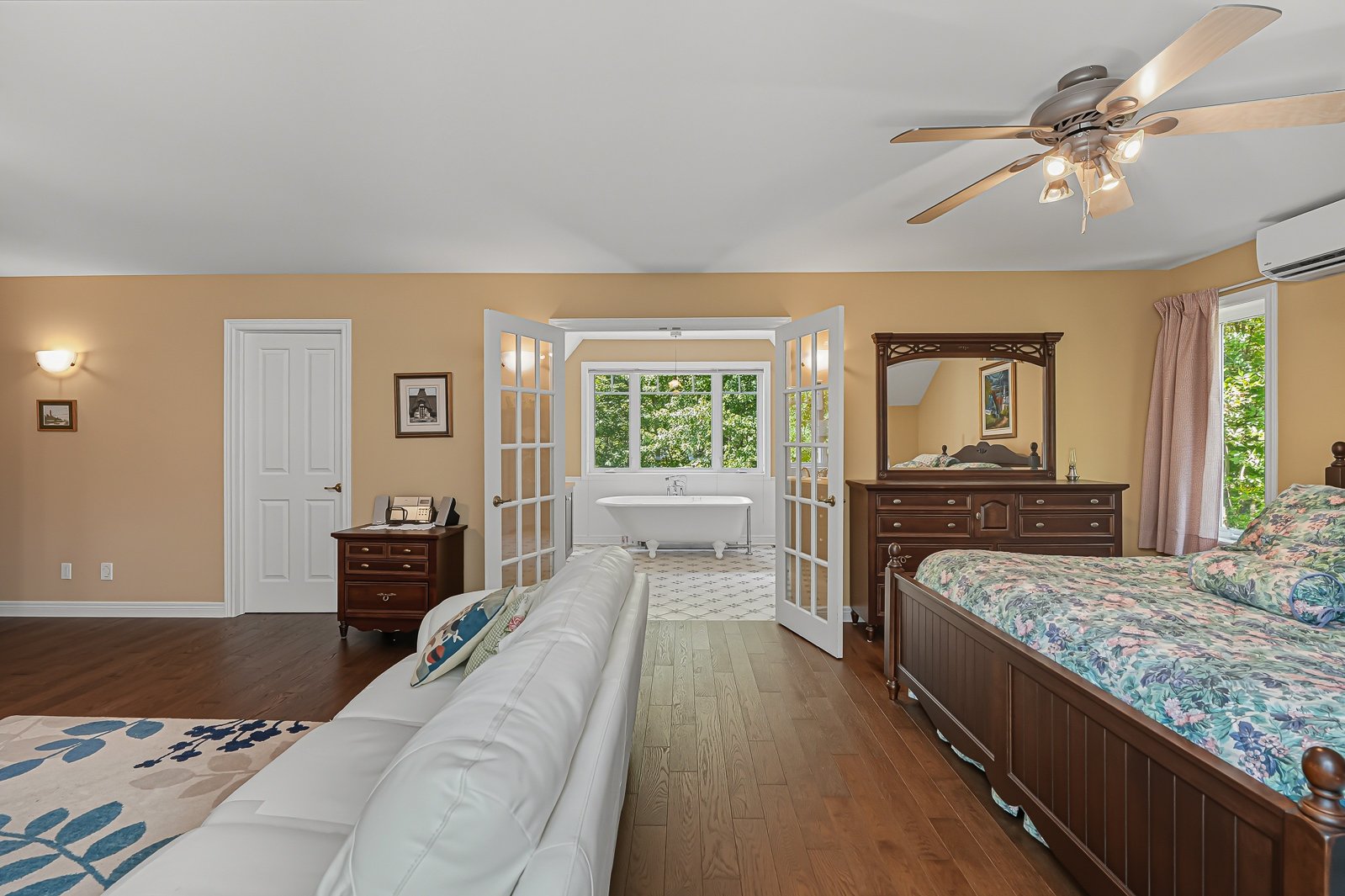 Set in Fitch Bay on the prestigious Lake Memphremagog, this elegant residence was built in 2002 by renowned builder Denis Legault for the current owners. Offering an exceptional setting with 200 linear feet of waterfront, it features a spacious detached garage (2008) along with an attached double garage. Designed to comfortably accommodate family and guests, the property sits on a private 1.64-acre lot within the Domaine de la Baie des Hurons. Just ±20 minutes from Magog and ±1h50 from Montreal, it combines elegance, privacy, and convenience.