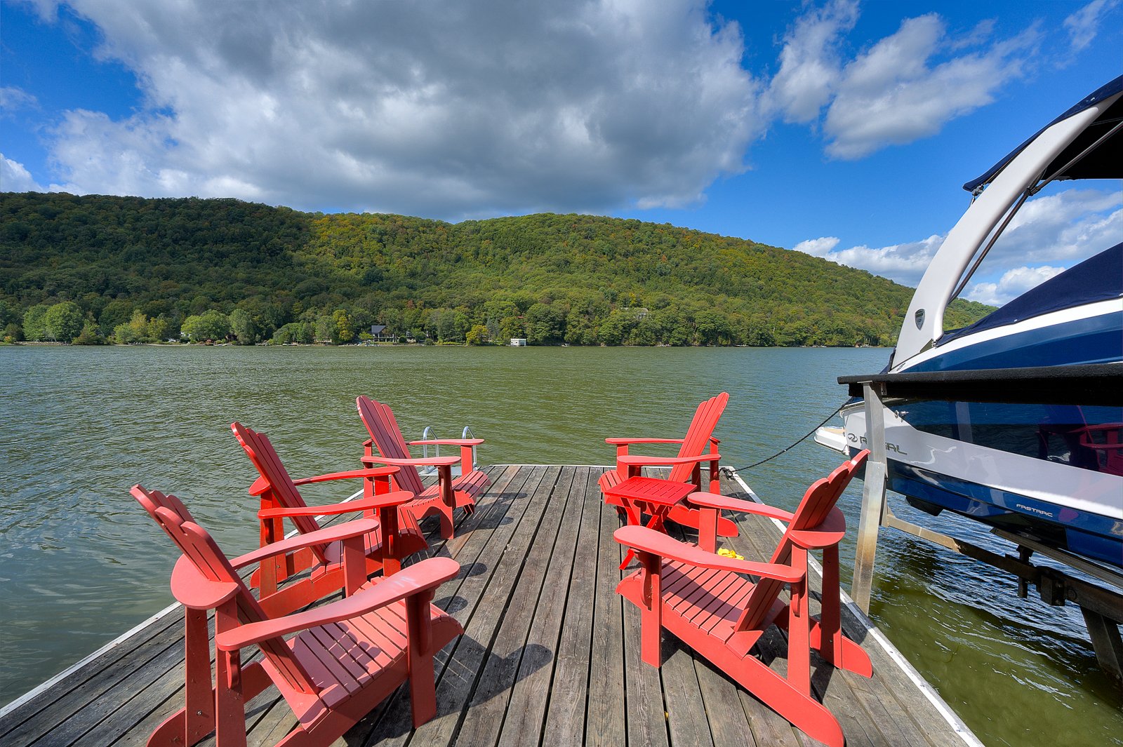- Kitchen appliances, wood-burning oven (dining room), chandeliers, blinds, shades, dock, wine cellars (dining room and basement), washer, dryer, electric charging station, water softener, and central vacuum.