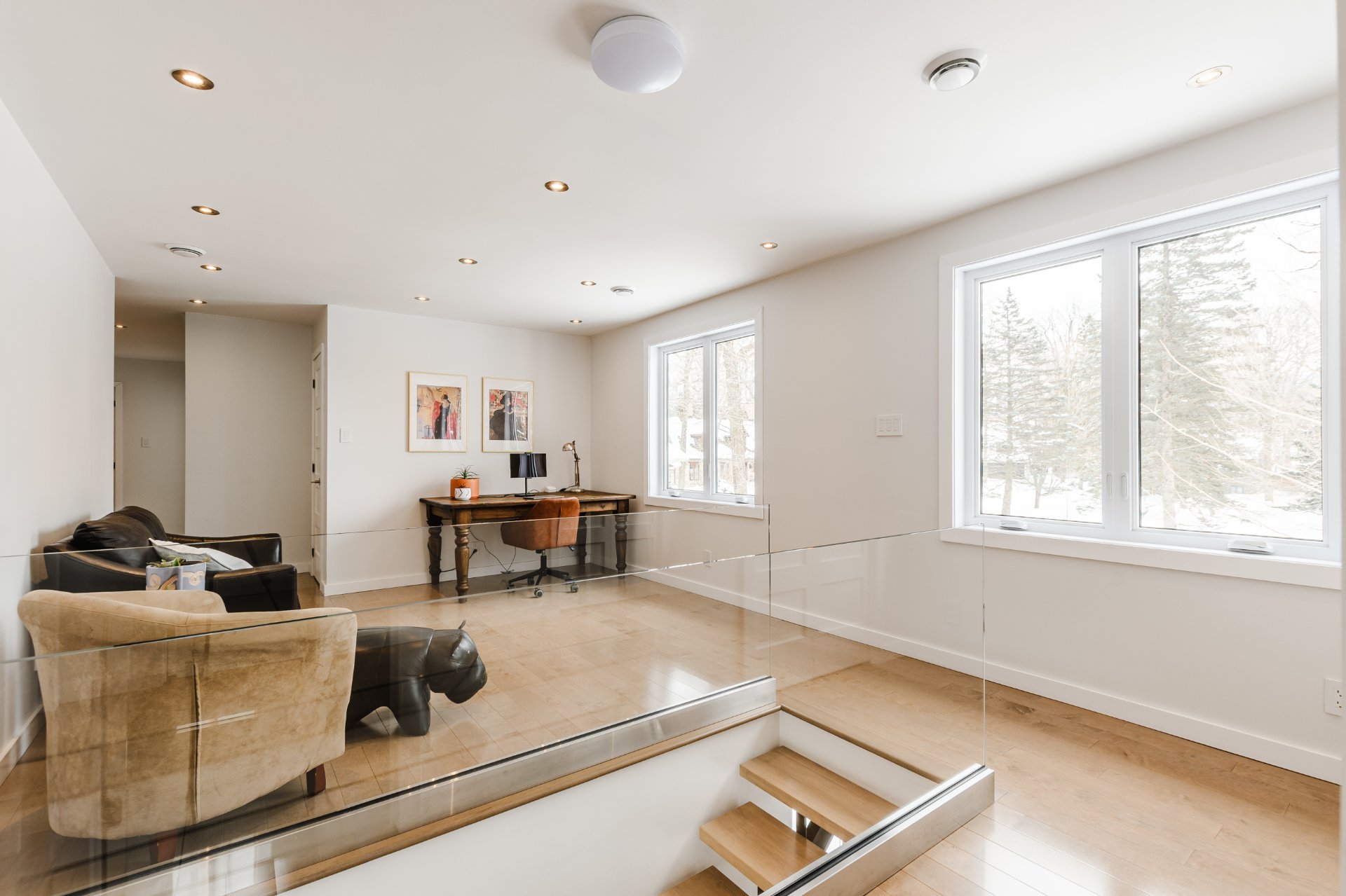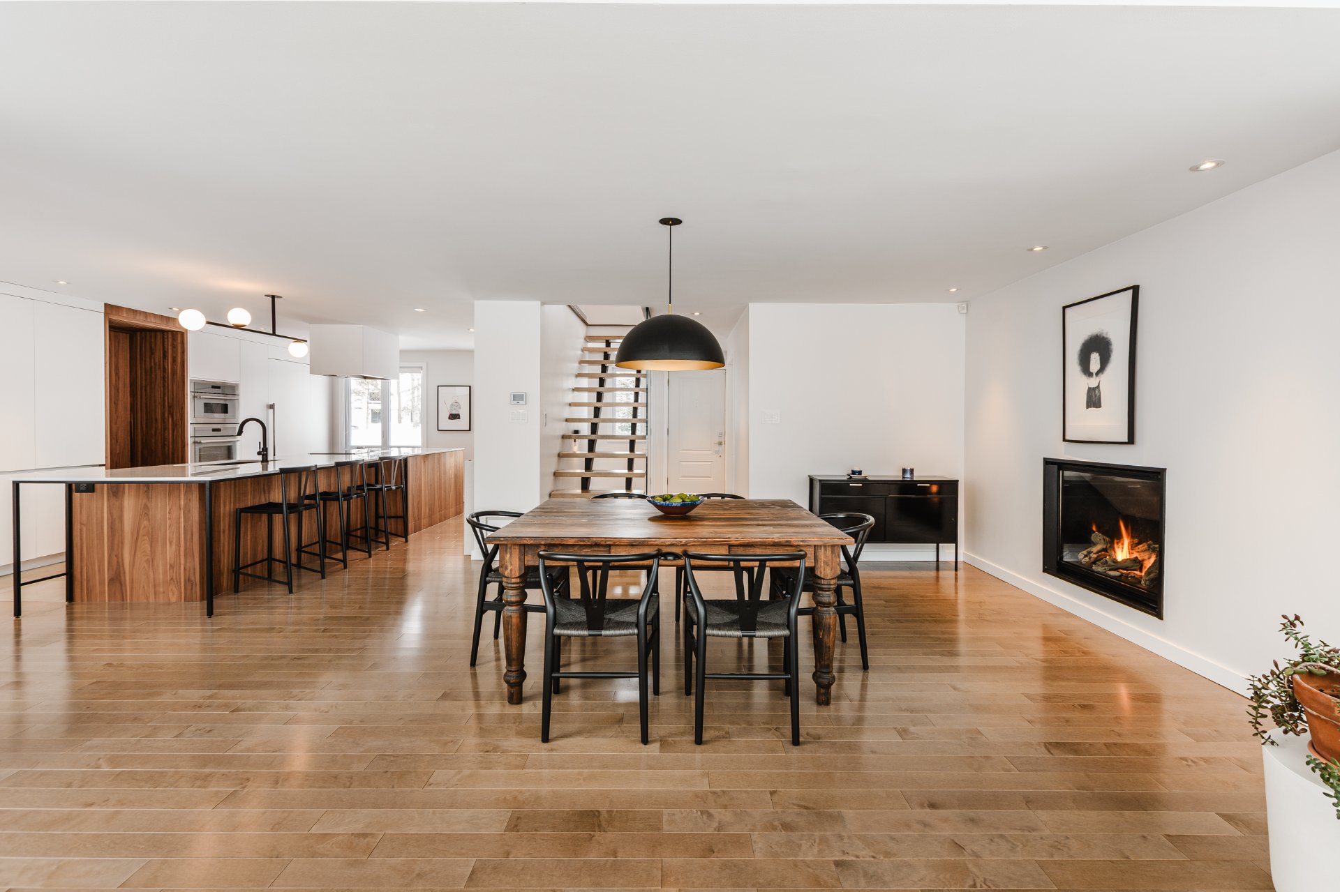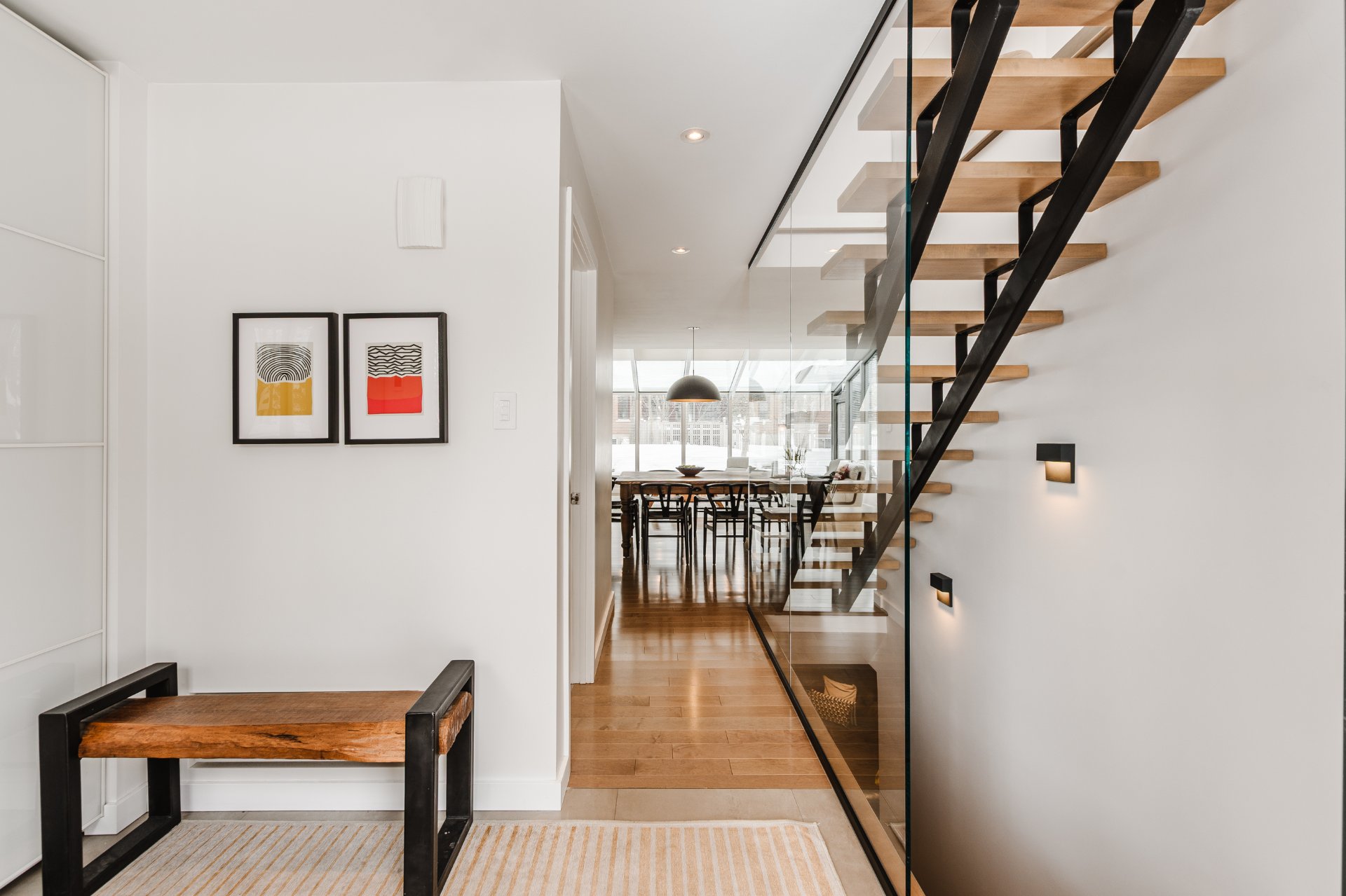 + Fully renovated living space with high-end execution and refined architectural details. Central open-riser staircase with glass railings, concealed air vents and Mirage maple hardwood floors.