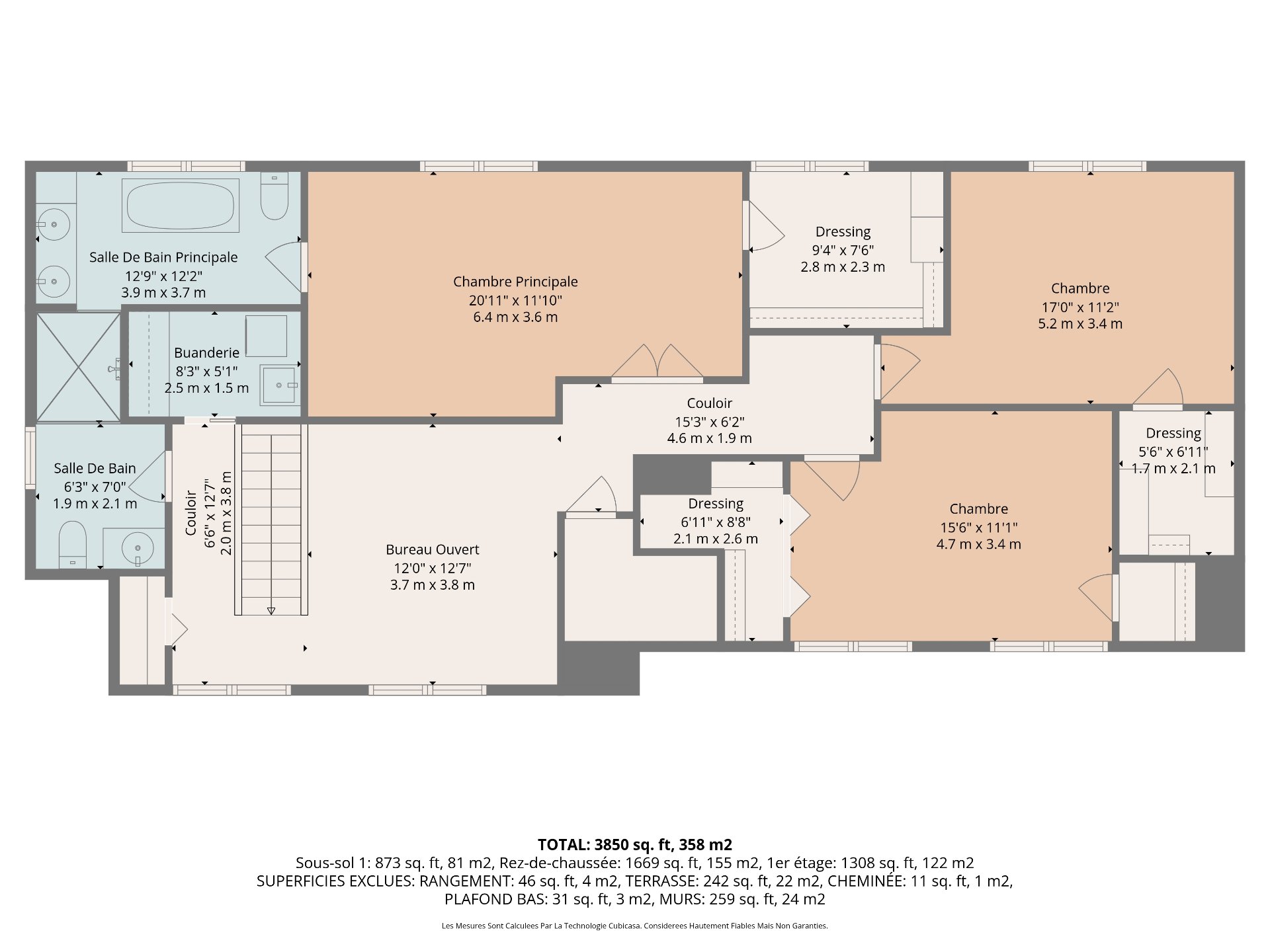 + Three-zone forced-air central heating and air conditioning system, air exchanger, central vacuum, alarm system and smart switches.