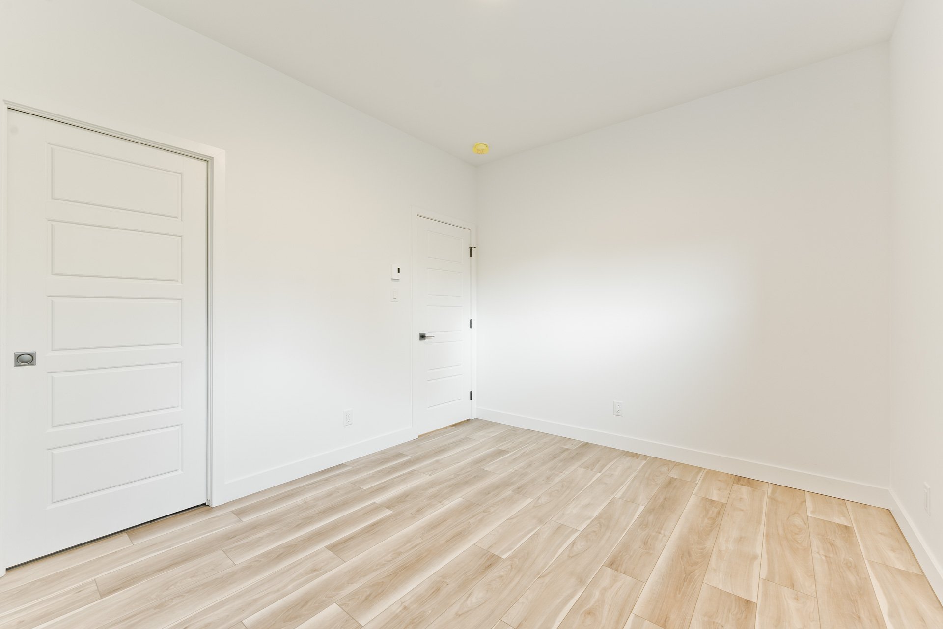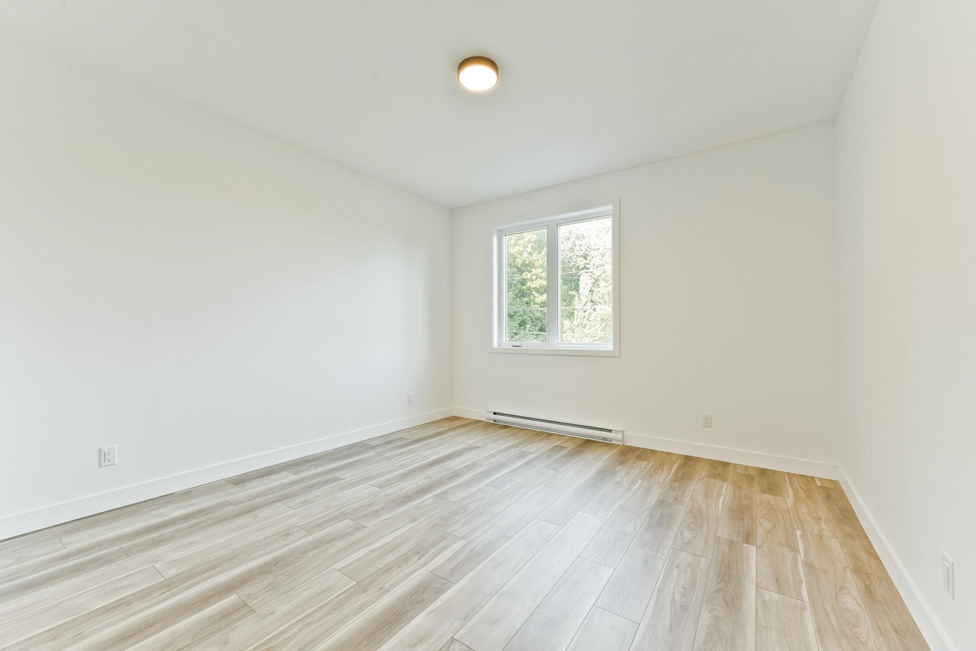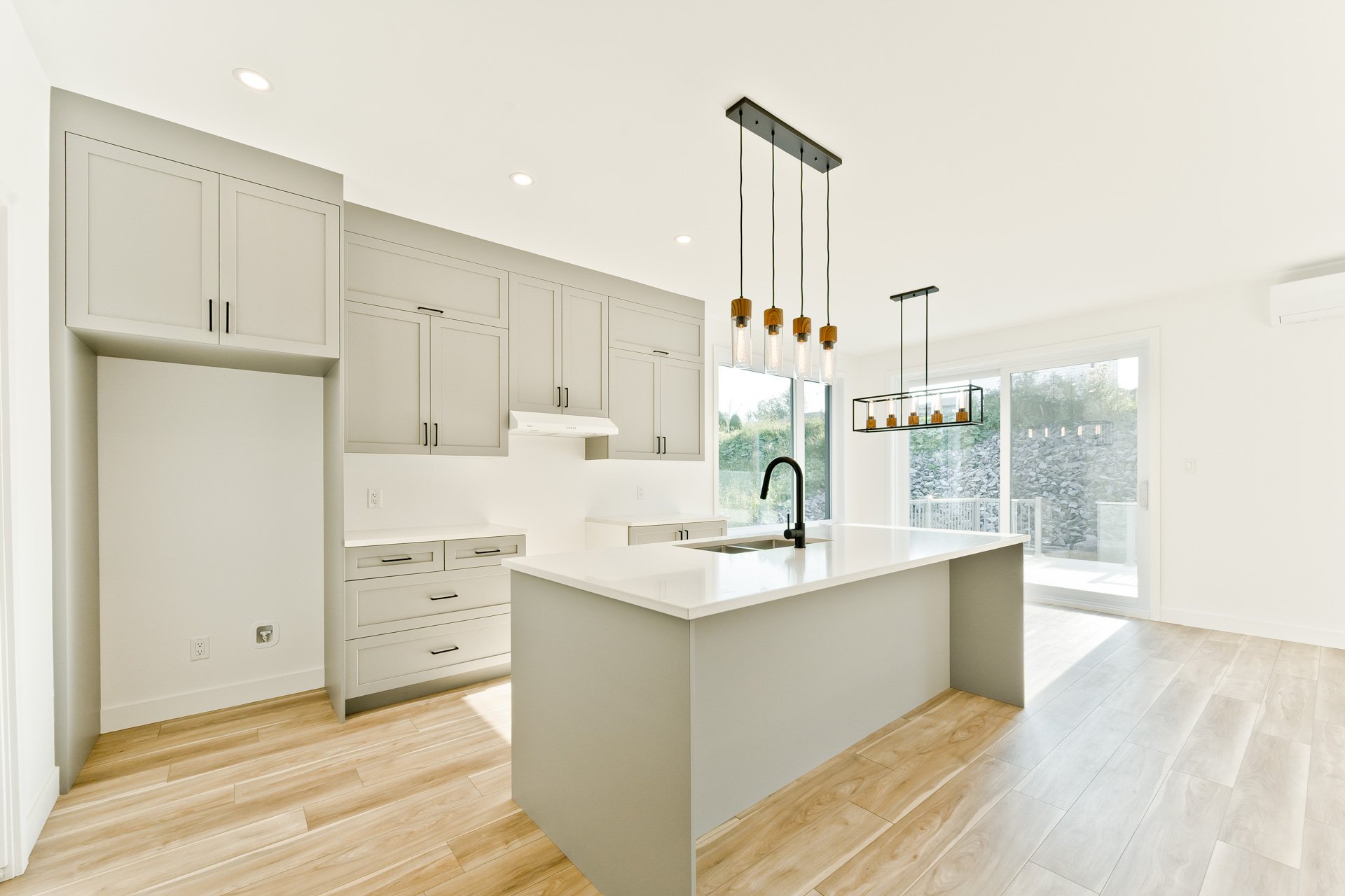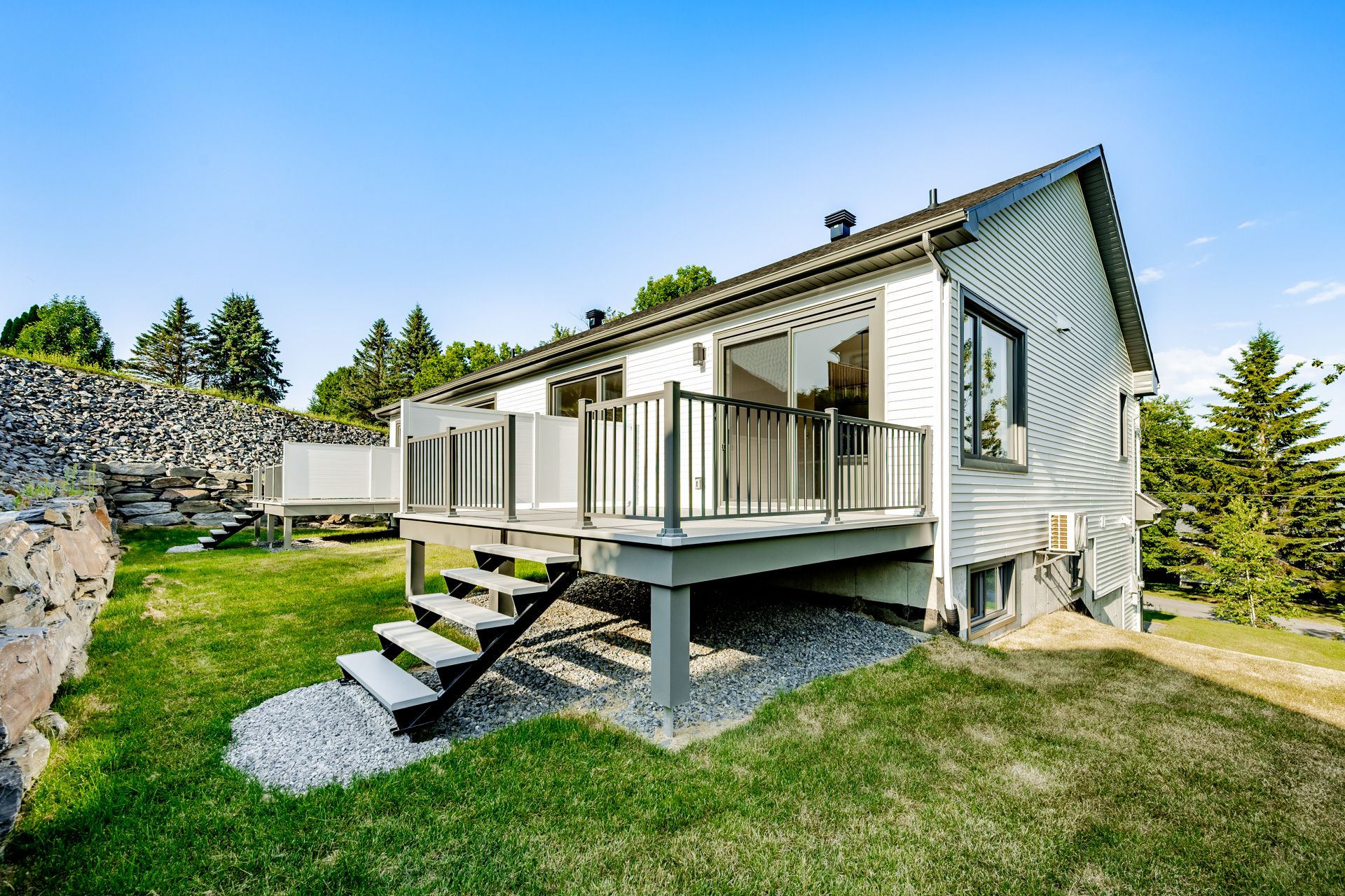 Step inside through the main entrance, where a practical walk-in closet provides the perfect space to store coats and shoes. Head upstairs to discover a spacious open-concept living area filled with natural light thanks to expansive windows that create a warm and inviting atmosphere. The kitchen, truly the heart of the home, impresses with its contemporary design, refined finishes, and a large walk-in pantry--ideal for keeping all your ingredients and kitchen essentials within easy reach. The dining area opens onto a large rear patio with privacy wall, inviting you to extend your gatherings with family and friends in a pleasant outdoor setting. The bright and spacious living room is perfectly suited for both relaxation and entertaining, offering clear views of the outdoors and breathtaking sunsets. On this level, you'll also find the master bedroom with a generous walk-in closet for optimal storage and the first full bathroom. Comfort is ensured year-round with a wall-mounted heat pump.
