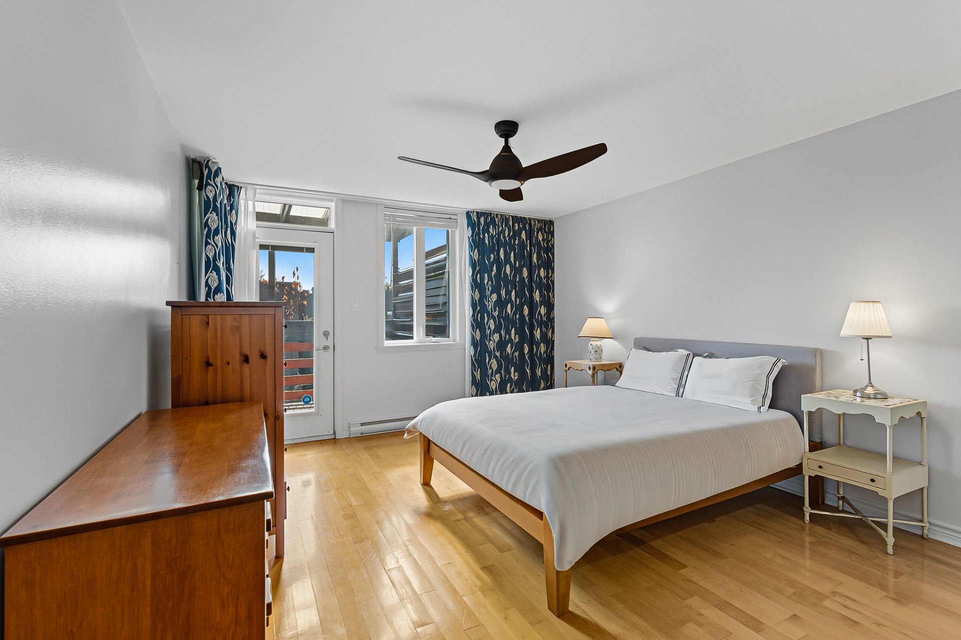Bright and spacious top-floor 2-bedroom, 2-bath condo in the heart of Saint-Henri. Offering 1,205 sqft of living space, this unit features a renovated kitchen with quartz counters, hardwood floors, skylight, and gas fireplace. The primary suite includes an ensuite with heated floors. Two private balconies, driveway parking with easy access, and wall-mounted A/C add convenience. Ideally located steps from the metro, Atwater Market, Lachine Canal, parks, shops, and Notre-Dame's renowned restaurants. A rare turnkey home blending comfort, lifestyle, and location.