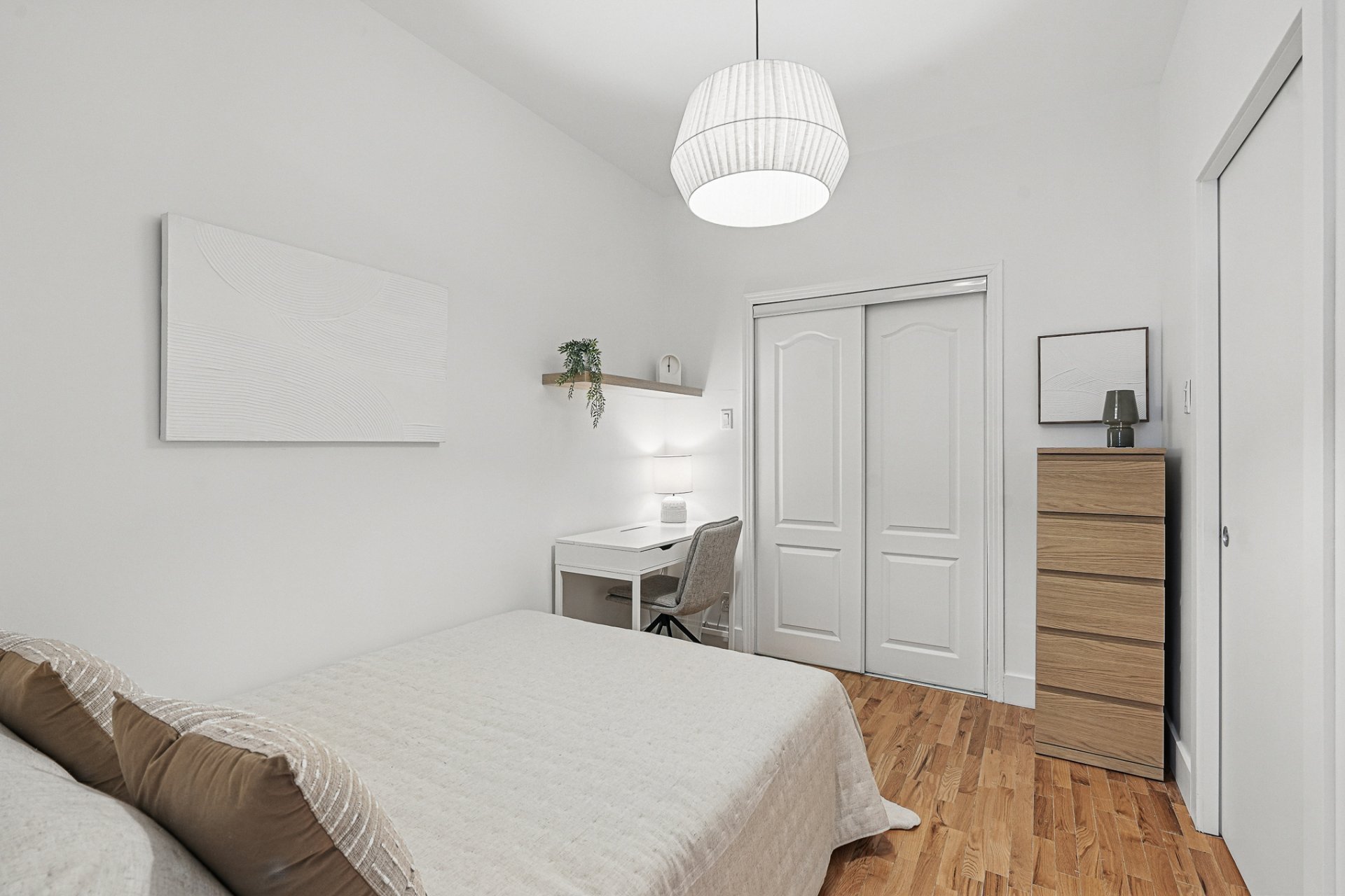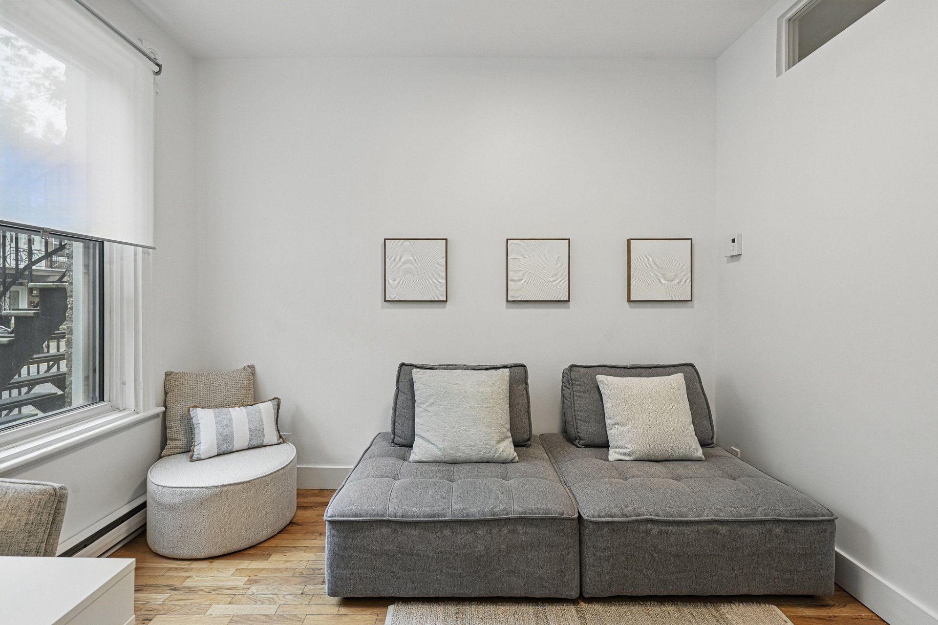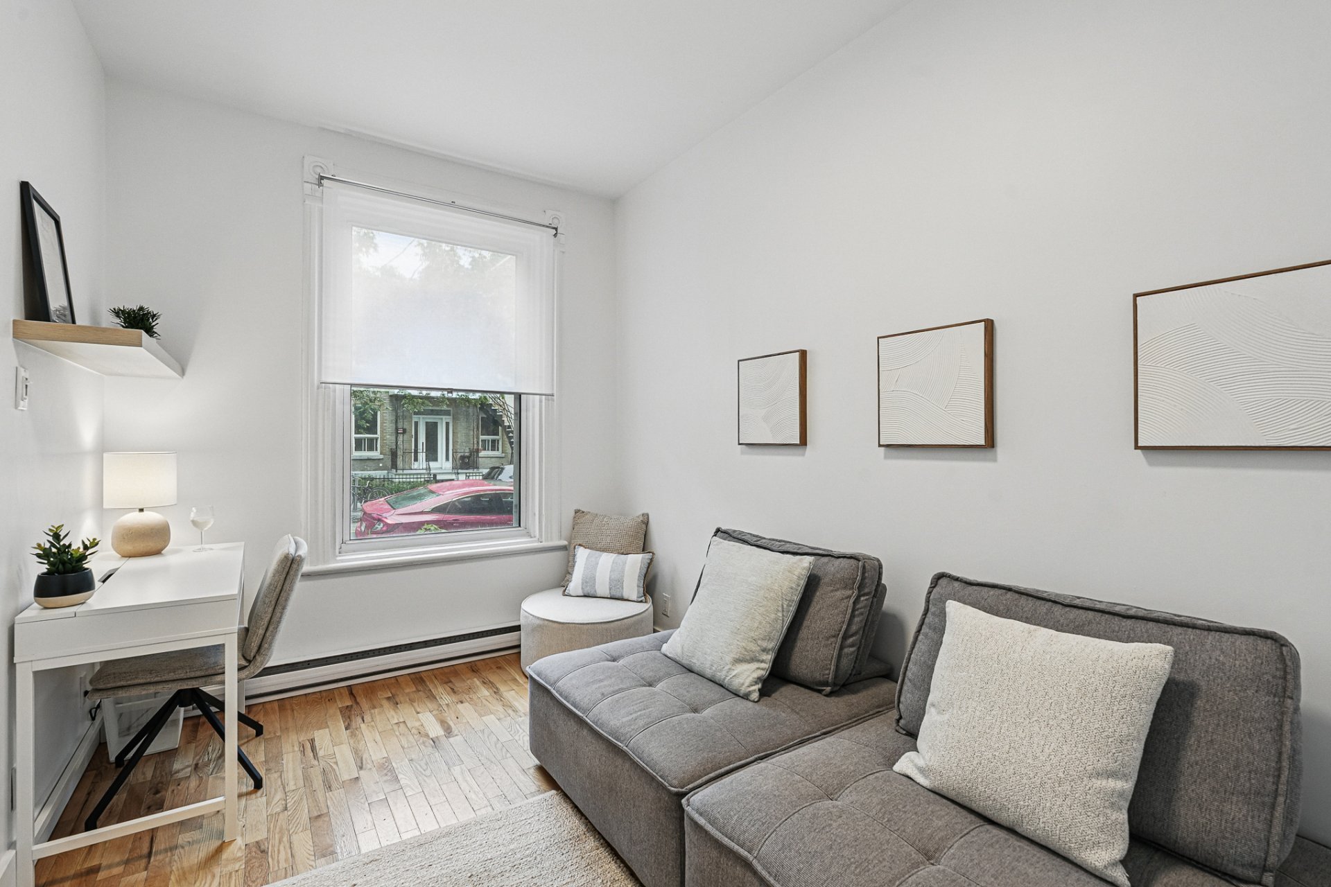 It is located in a quiet, tree-lined neighborhood on a peaceful street near a park, while still being just steps away from the vibrant life of the Plateau and Promenade Masson. Nearby are many shops and services (grocery stores, cafés, restaurants, boutiques, etc.) on Laurier, Mont-Royal, and Masson, with quick access to Laurier metro via the bus at the corner.