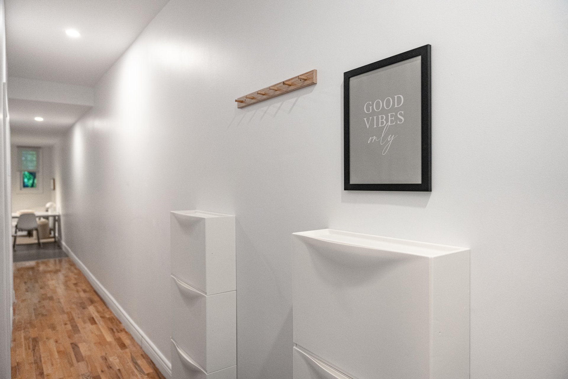 The apartment is ideal for a single person, a couple of professionals or students (with its two separate office spaces), or two roommates.