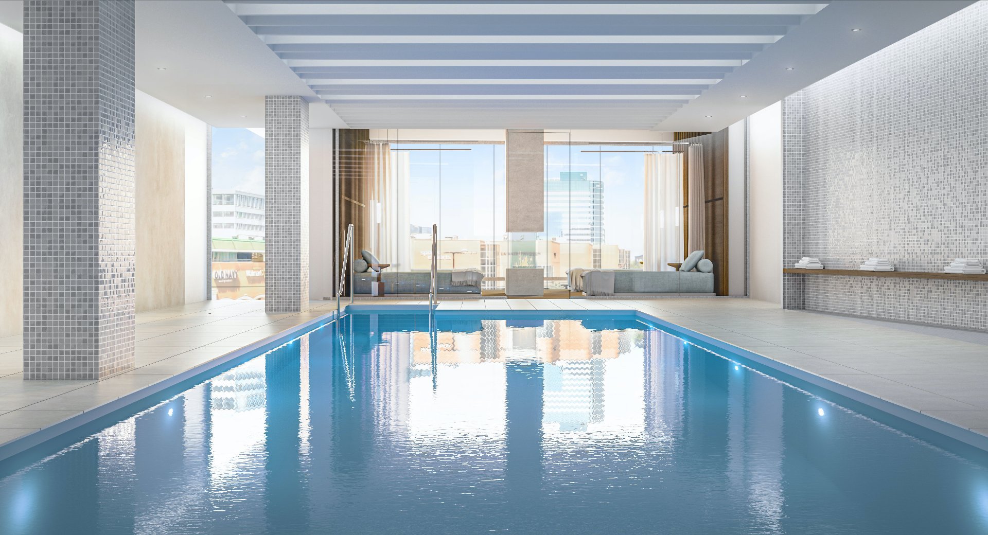 Living at SWL means having access to luxurious, friendly and convenient indoor common areas. Sumptuous lounges, a fully equipped workout room, a shared chef's kitchen and a spa area with a pool,