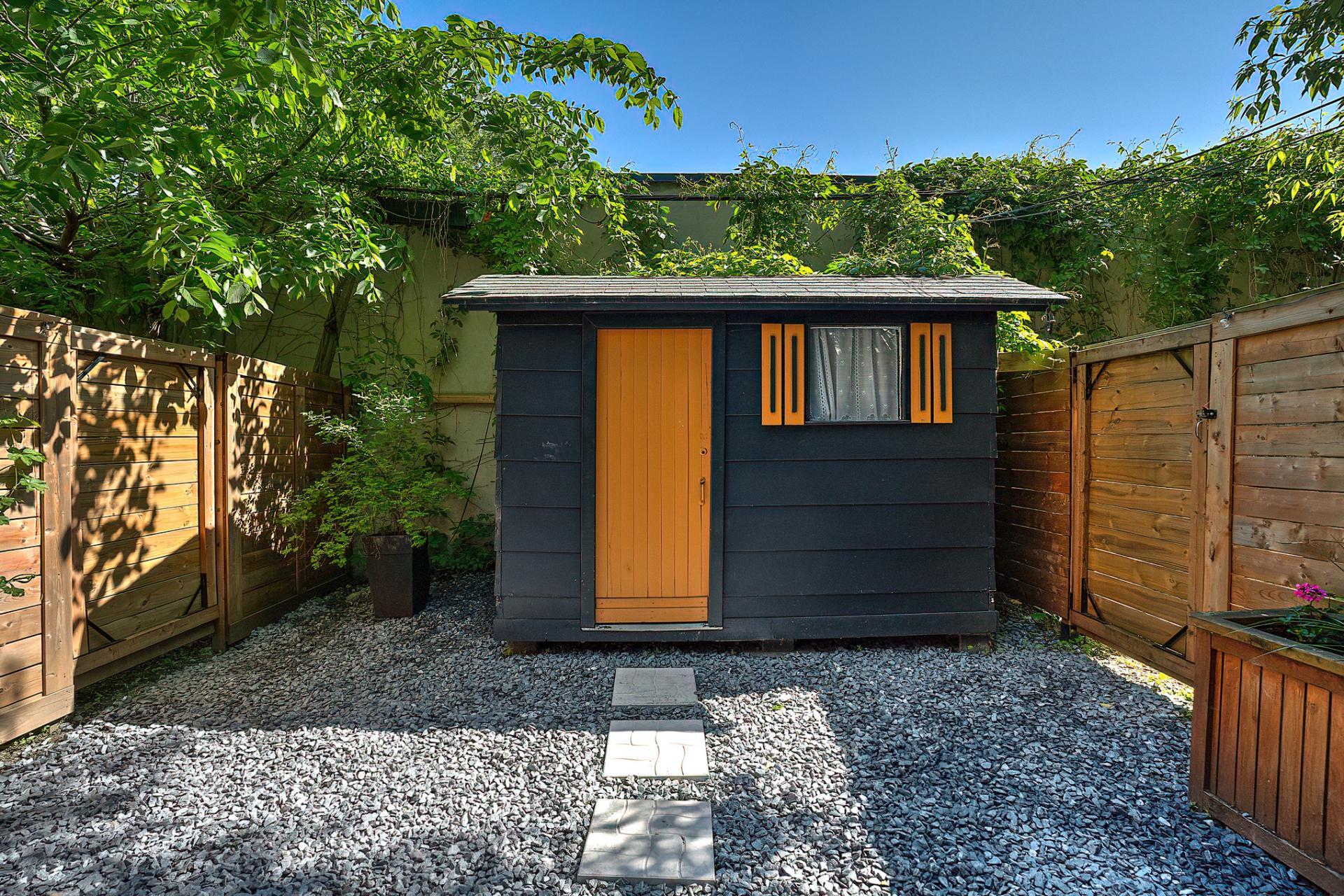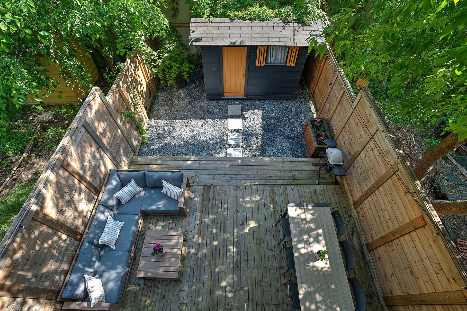 Fully landscaped and fenced, the backyard is a true urban oasis. It features an elegant terrace off the kitchen, a cozy lounge area, an outdoor dining space with BBQ, and a discreet storage shed. Perfect for hosting or simply enjoying peaceful moments in complete privacy.