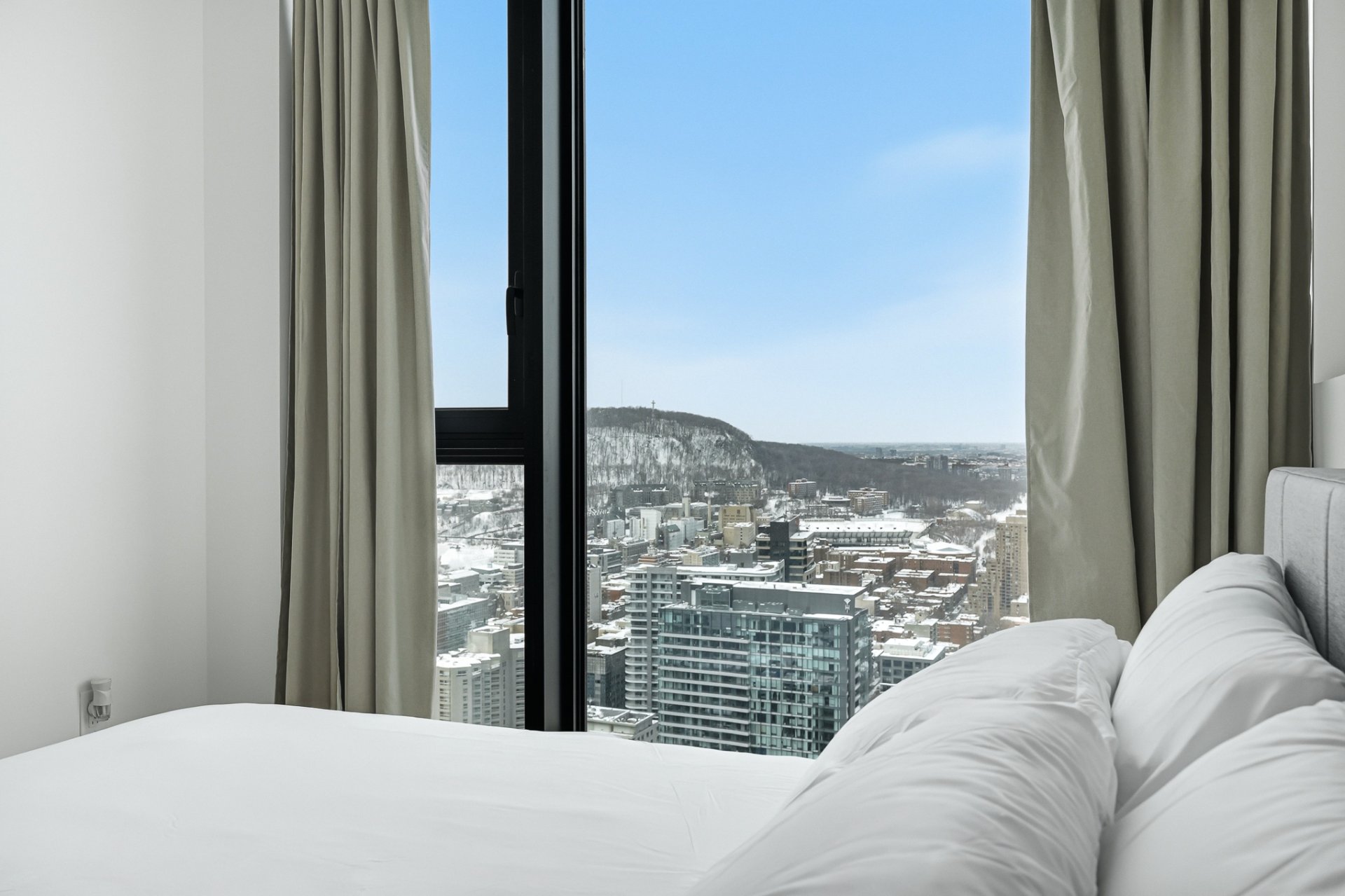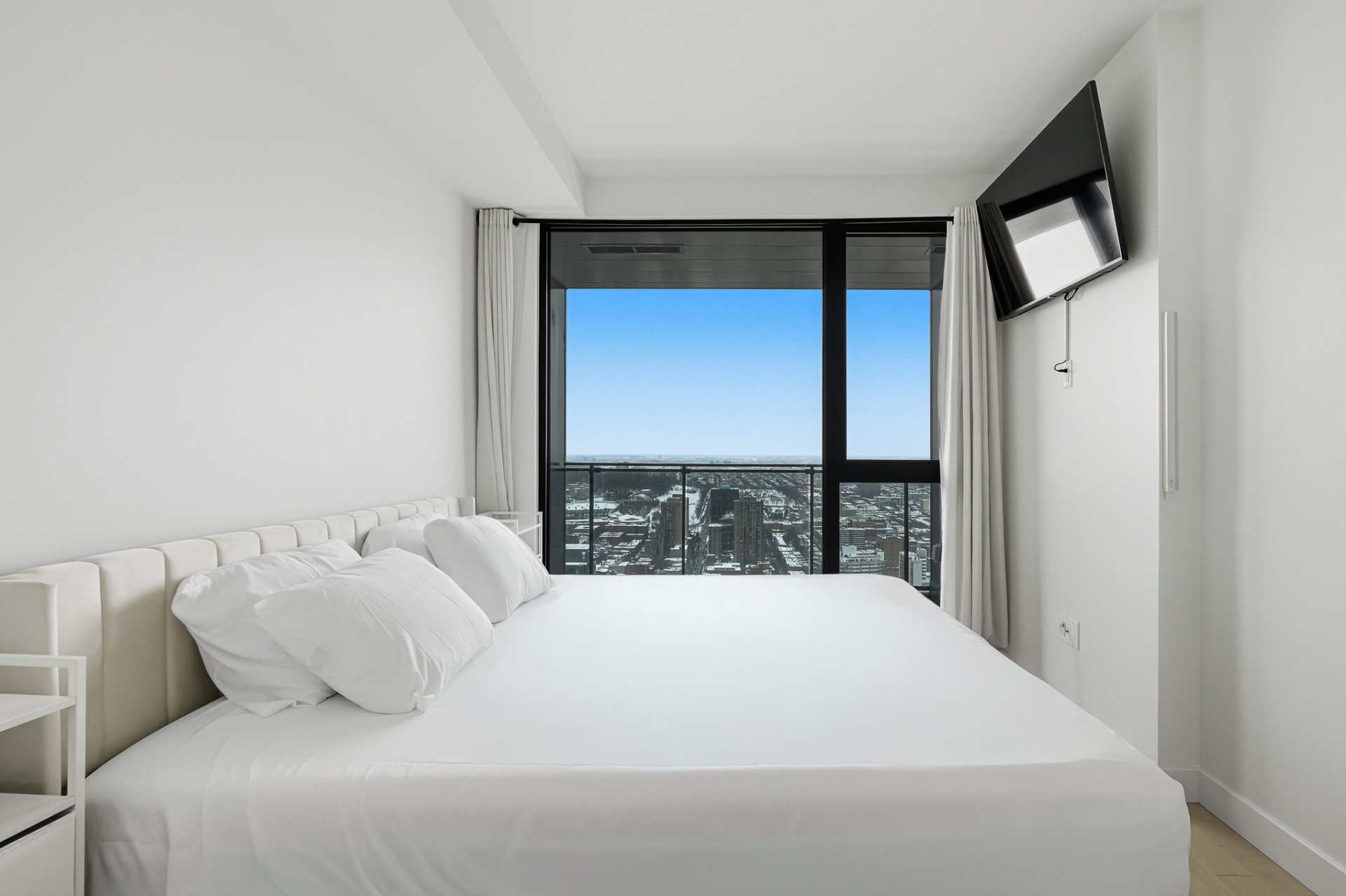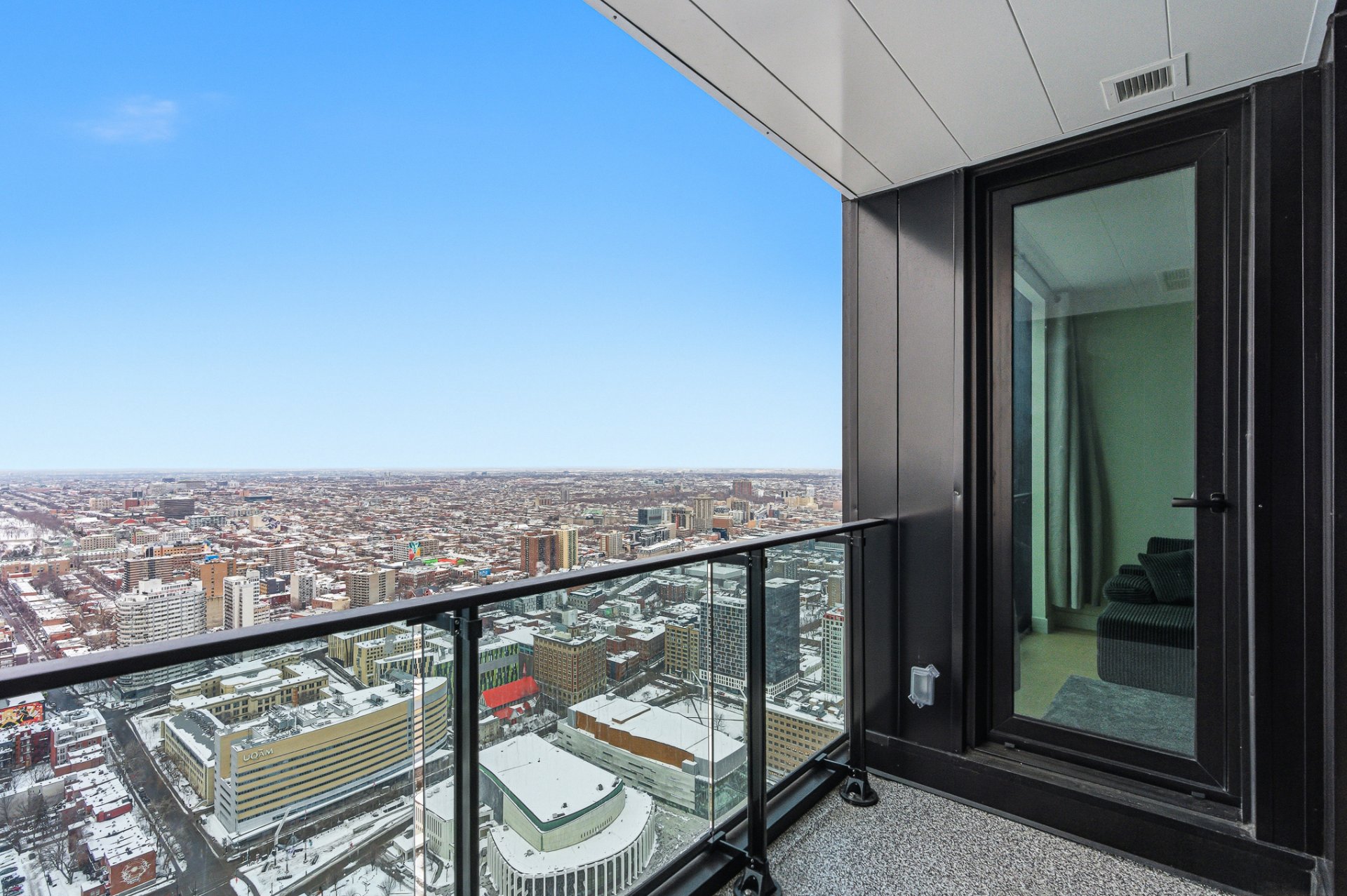 Furnished two-bedroom residence on the 54th floor of Maestria, available immediately. This bright and elegant unit features floor-to-ceiling windows, refined contemporary finishes, quartz countertops, quality appliances, a sleek modern bathroom, and in-unit laundry. Enjoy Maestria's exceptional amenities, including the iconic skybridge, indoor and outdoor pools, fitness centre, spa, golf simulator, lounges, and coworking spaces. Ideally located in the heart of the Quartier des Spectacles, steps from Place des Arts, McGill, UQÀM, metro stations, cafés, and Montreal's vibrant cultural scene.