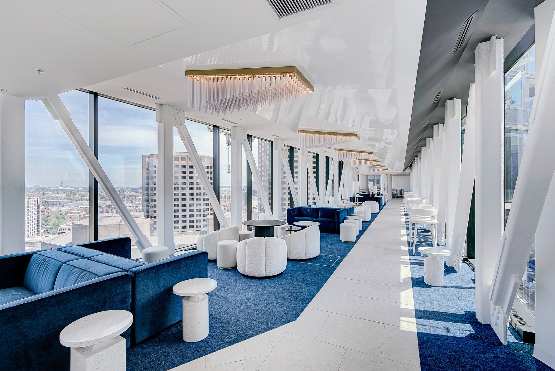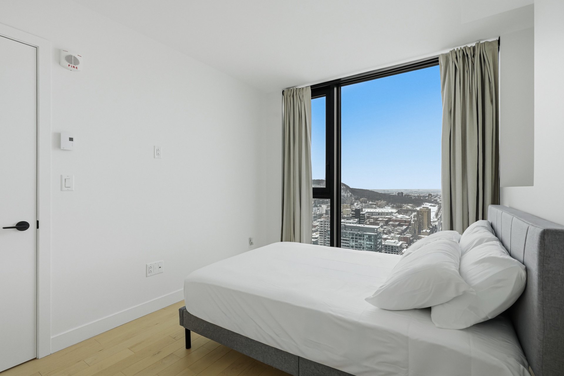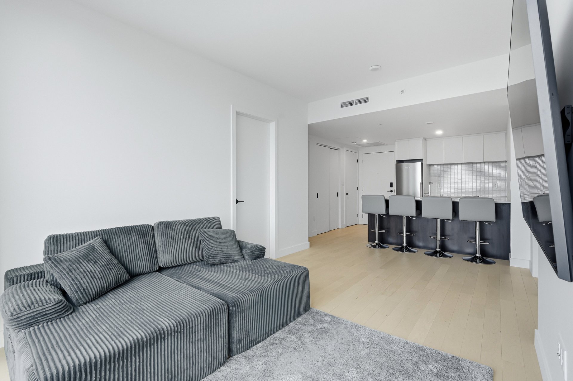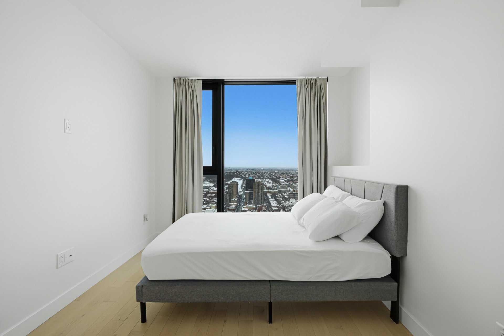 Furnished two-bedroom residence on the 54th floor of Maestria, available immediately. This bright and elegant unit features floor-to-ceiling windows, refined contemporary finishes, quartz countertops, quality appliances, a sleek modern bathroom, and in-unit laundry. Enjoy Maestria's exceptional amenities, including the iconic skybridge, indoor and outdoor pools, fitness centre, spa, golf simulator, lounges, and coworking spaces. Ideally located in the heart of the Quartier des Spectacles, steps from Place des Arts, McGill, UQÀM, metro stations, cafés, and Montreal's vibrant cultural scene.