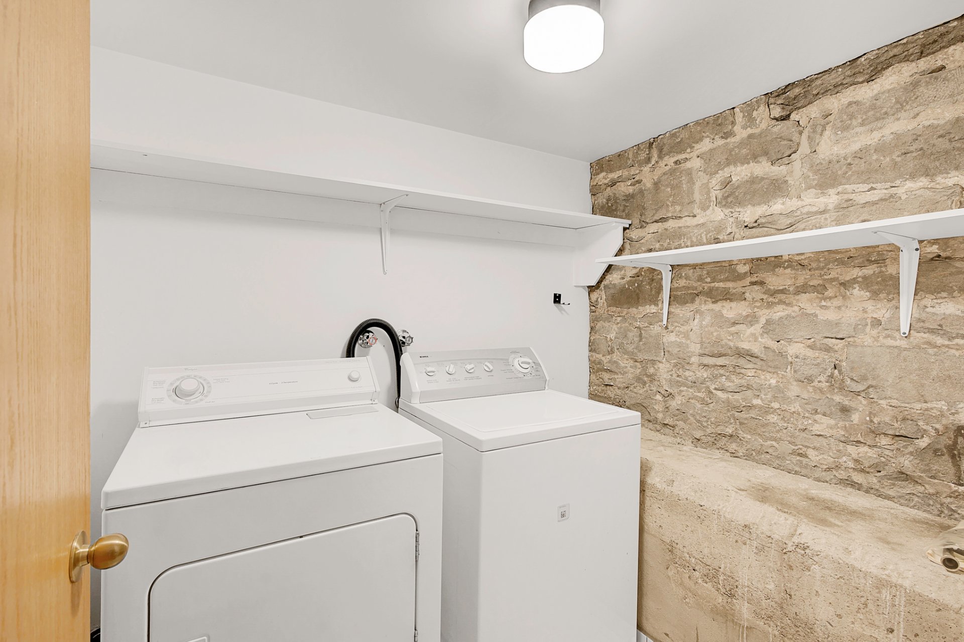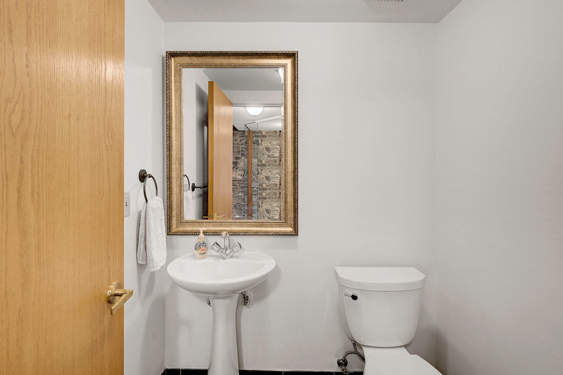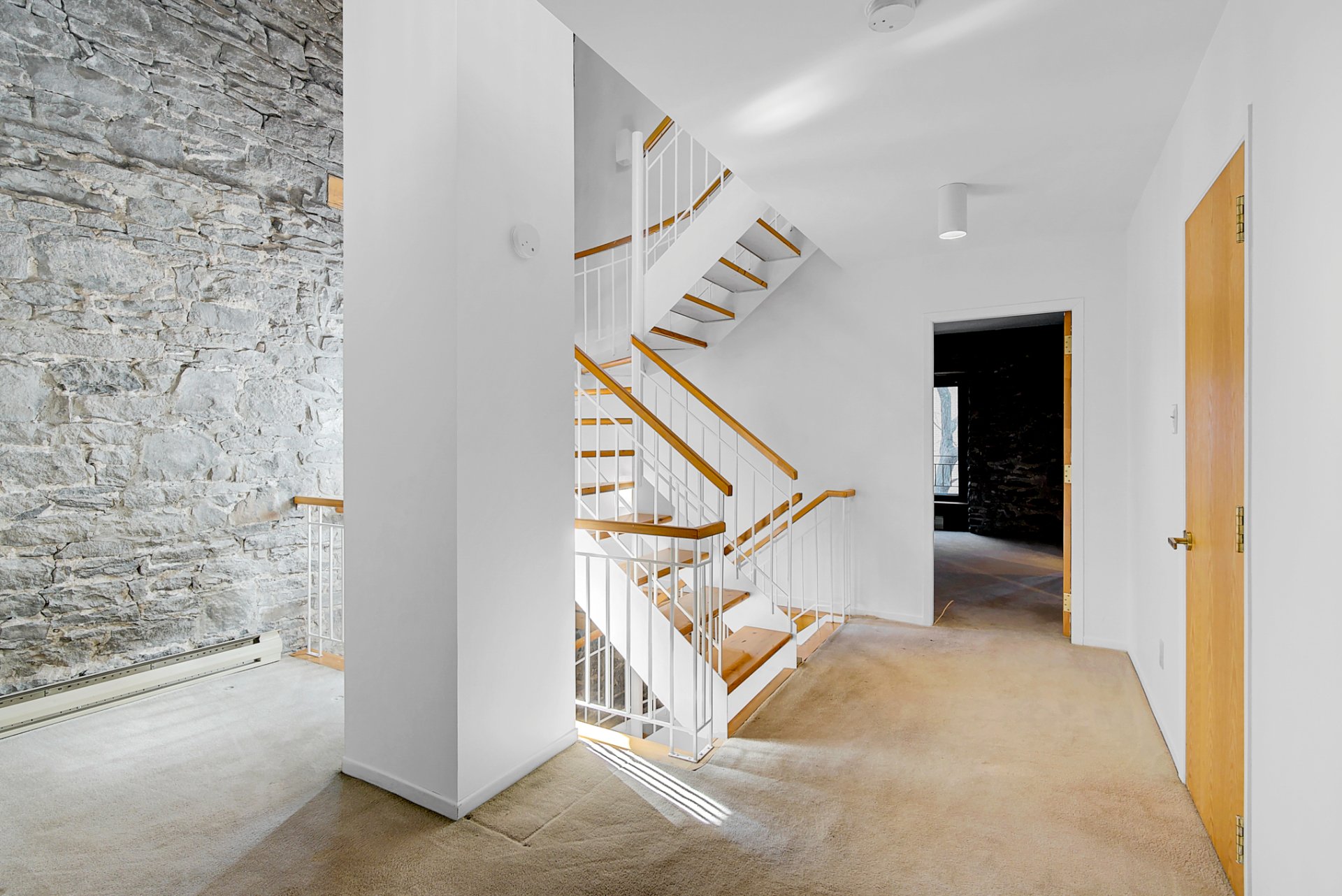 There are 3 bedrooms, 2+1 bathrooms, a mezzanine with access to the private terrace. Its floor plan allows for separate living, working and sleeping areas for its occupants. The basement is a large open space ideal for media room, family room, game room, etc. The basement also has a laundry room & spacious entrance (mudroom) adjacent to the interior entrance to the private 2 car garage, accessed from the common garage.
