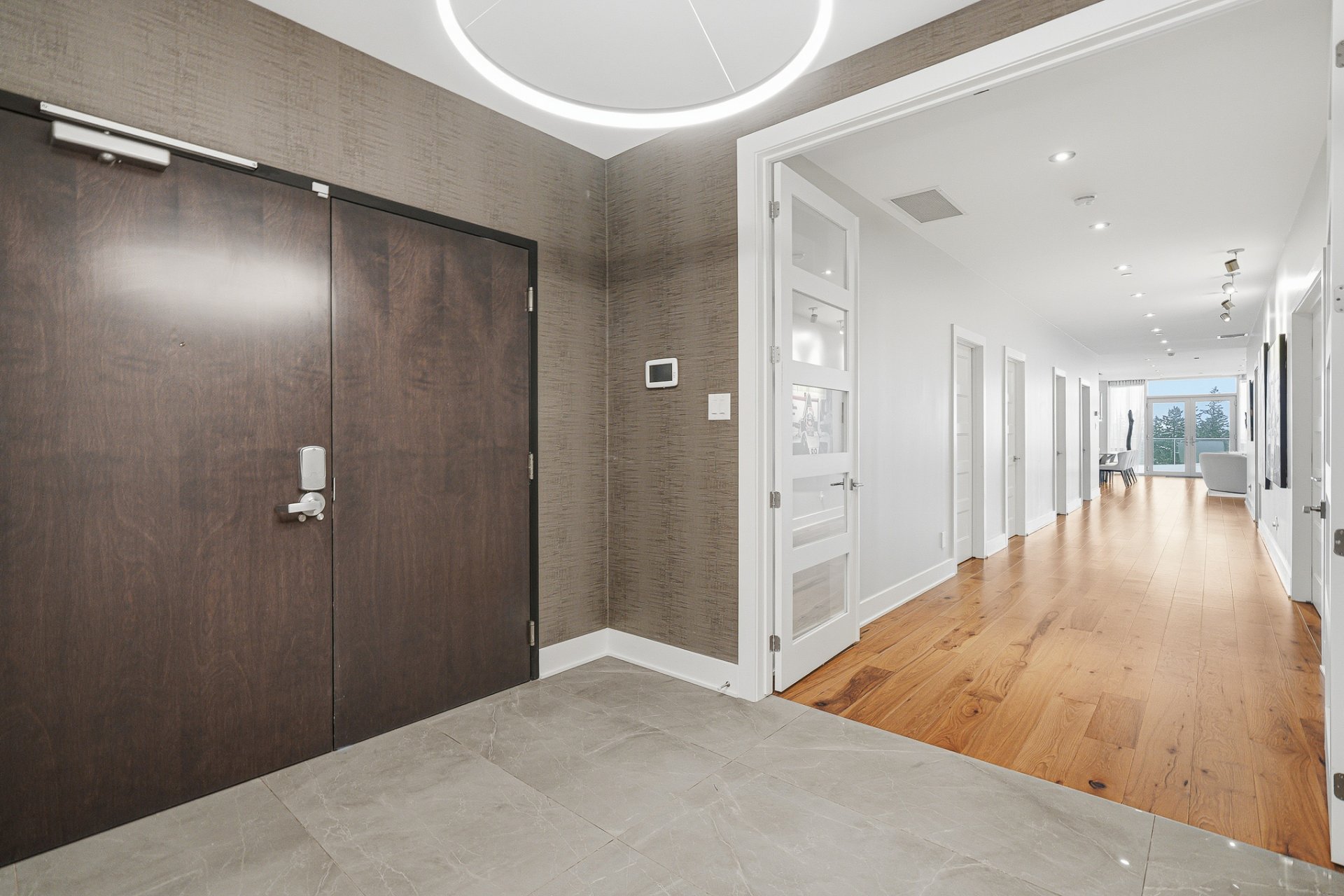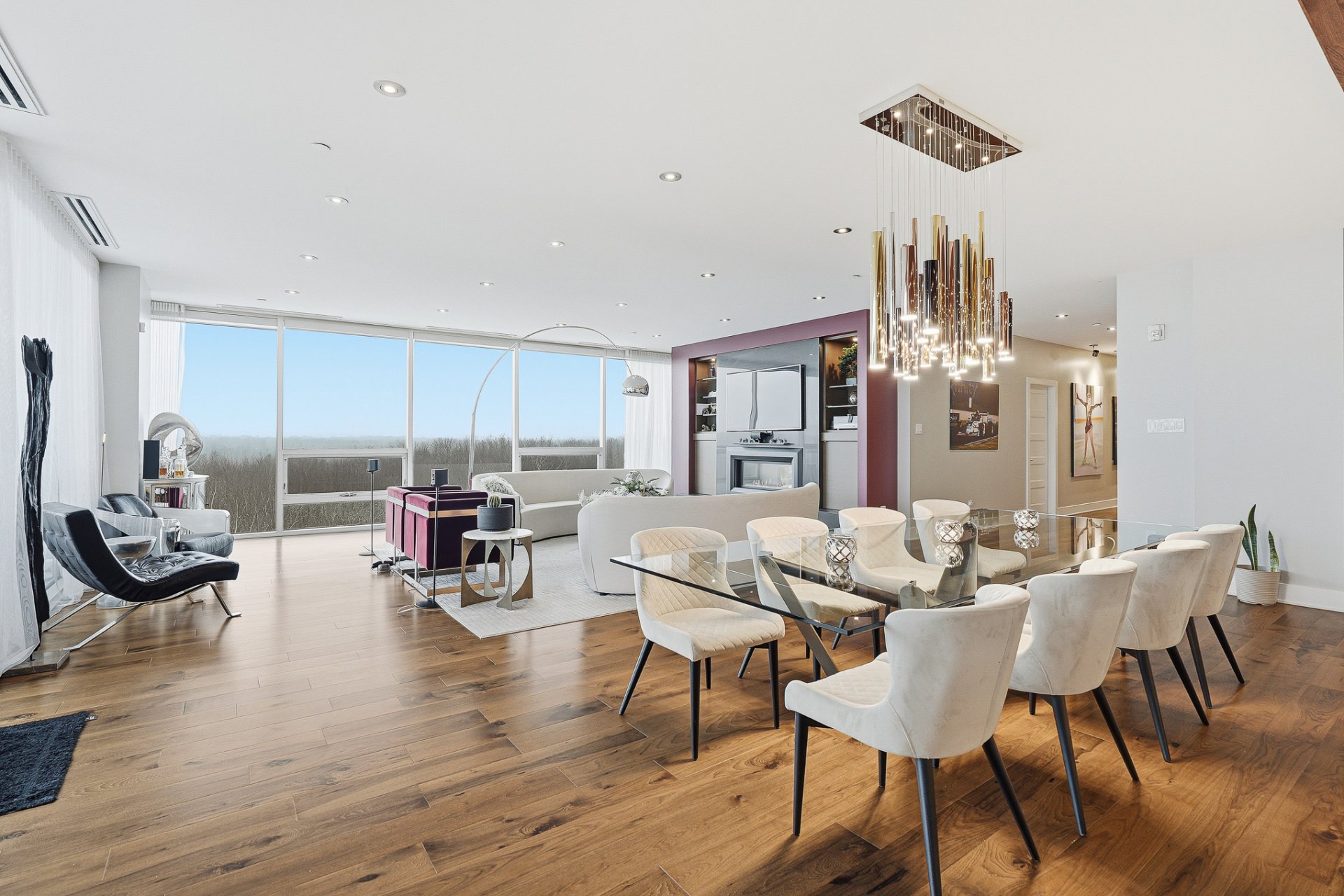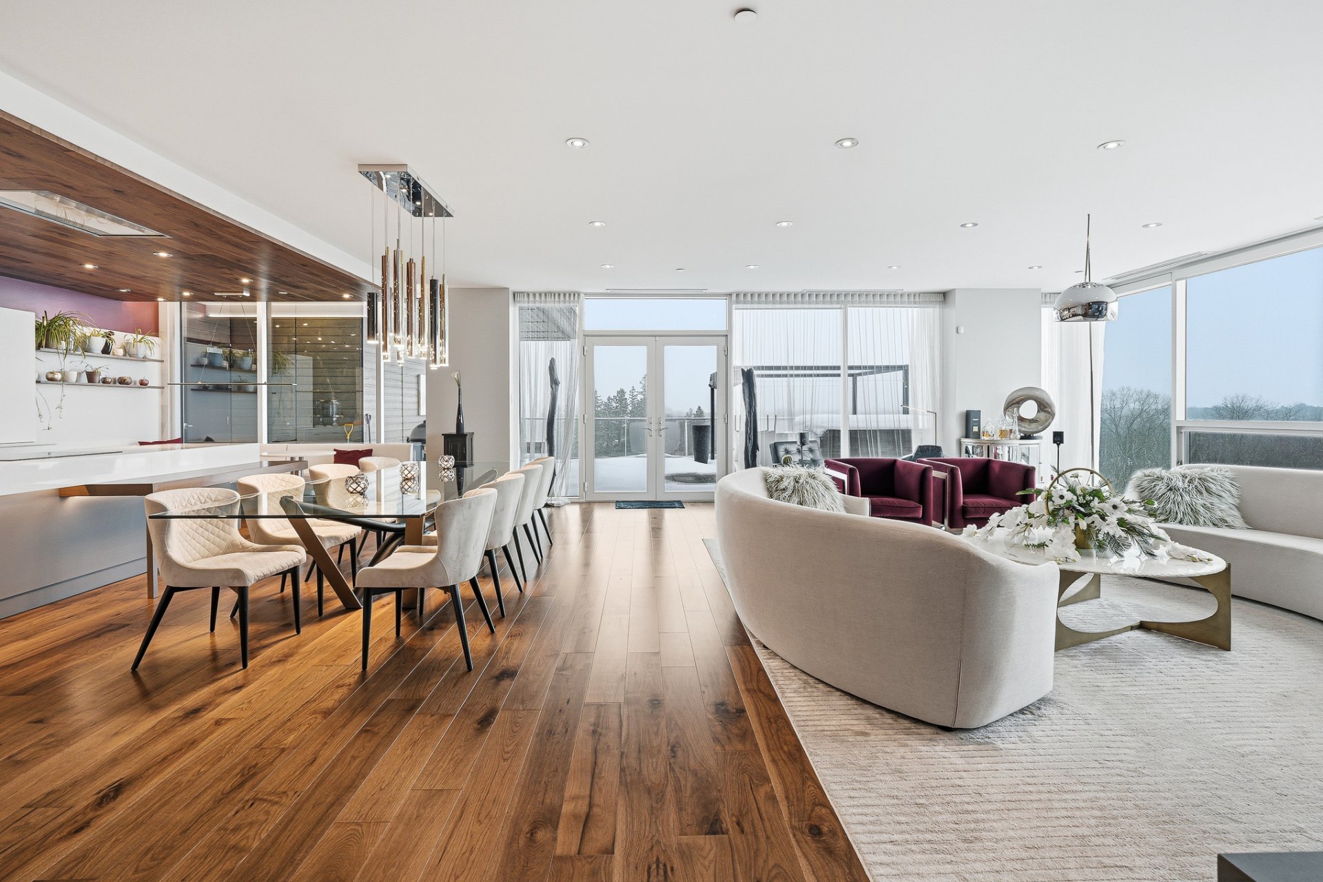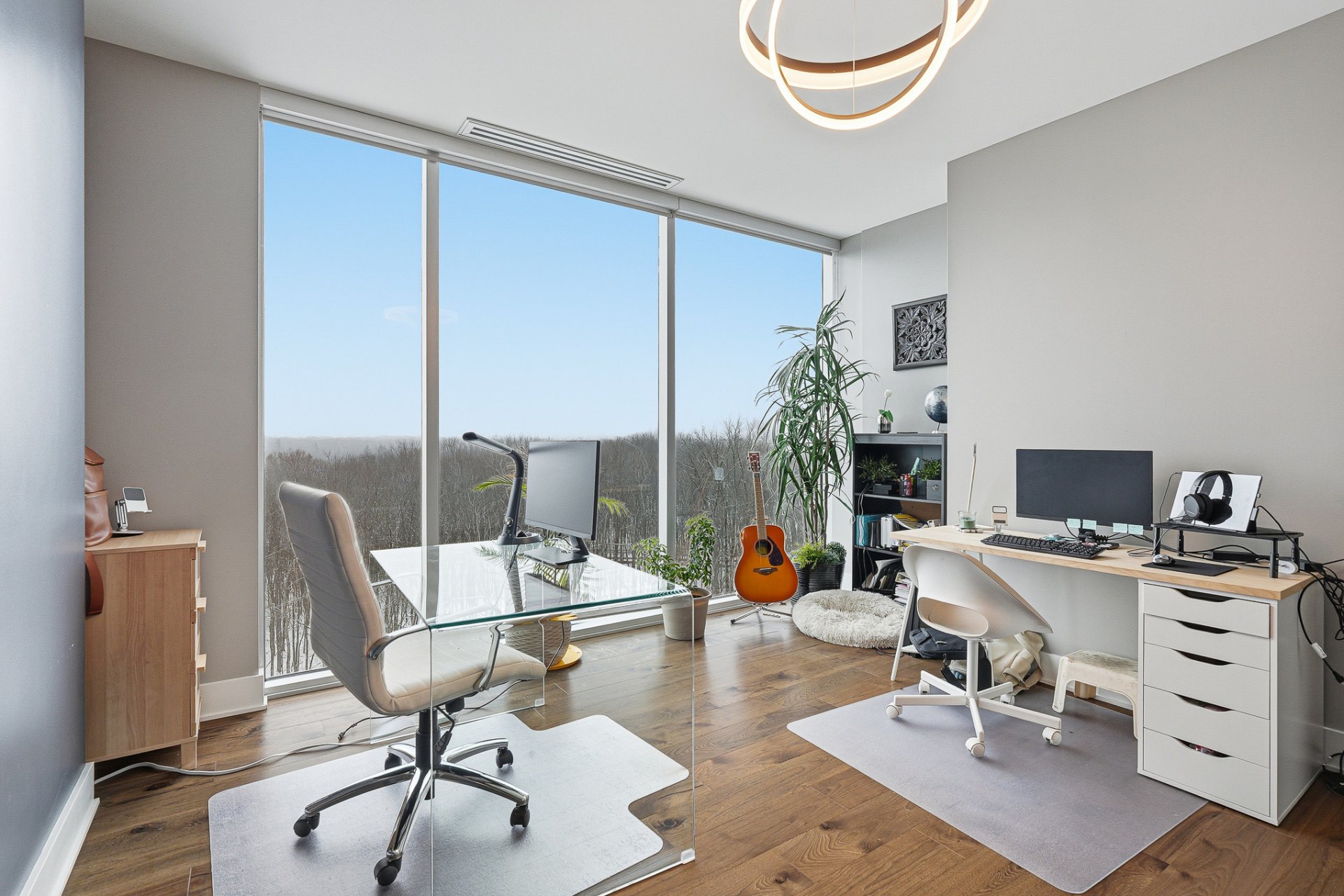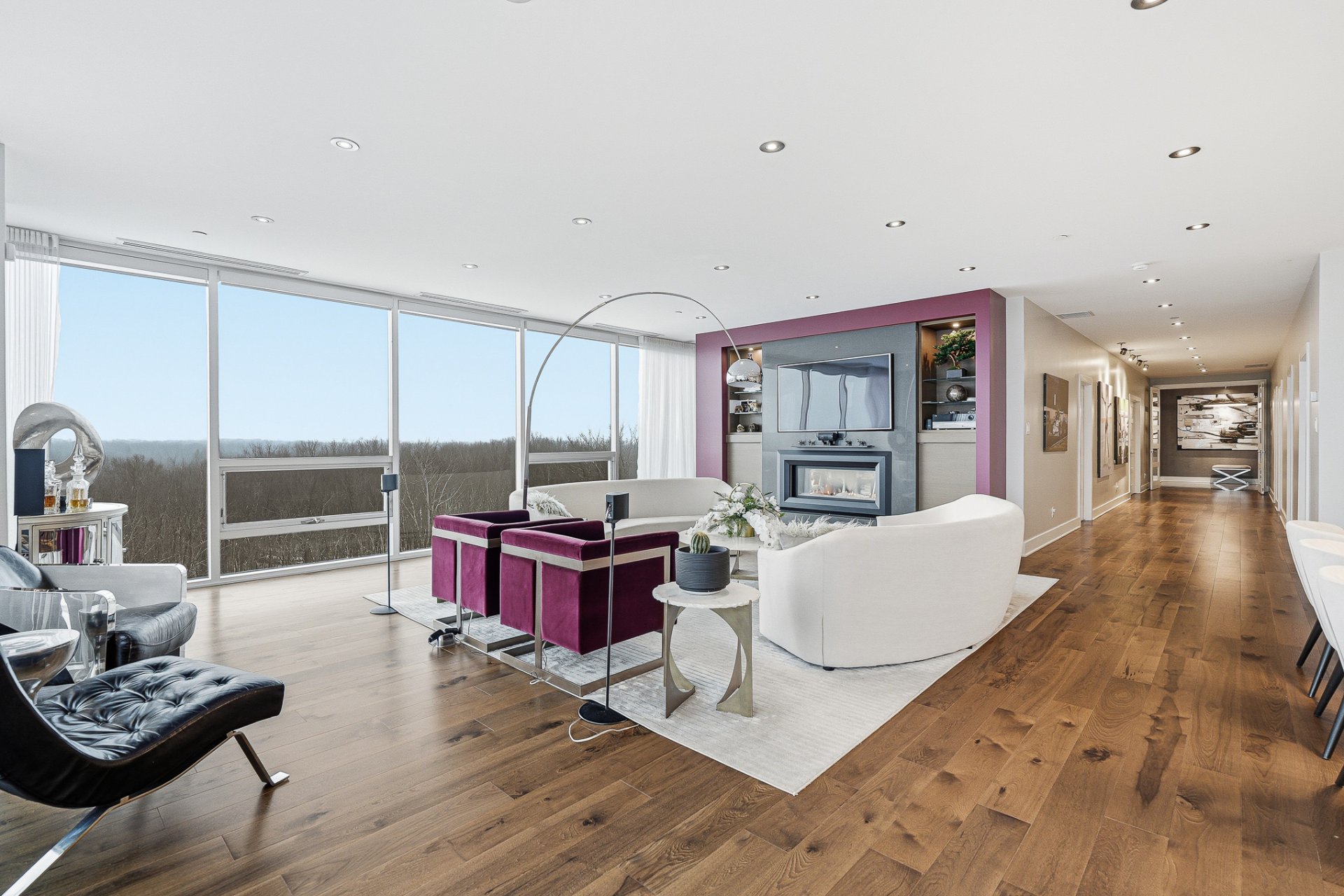 With over 2,700 sq. ft. of living space, the unit features a large entrance hall leading to an open-concept living area where floor-to-ceiling windows provide unobstructed views all the way to Montréal. Natural light floods the space thanks to the unit's southeast orientation, positioned just above the treetops.