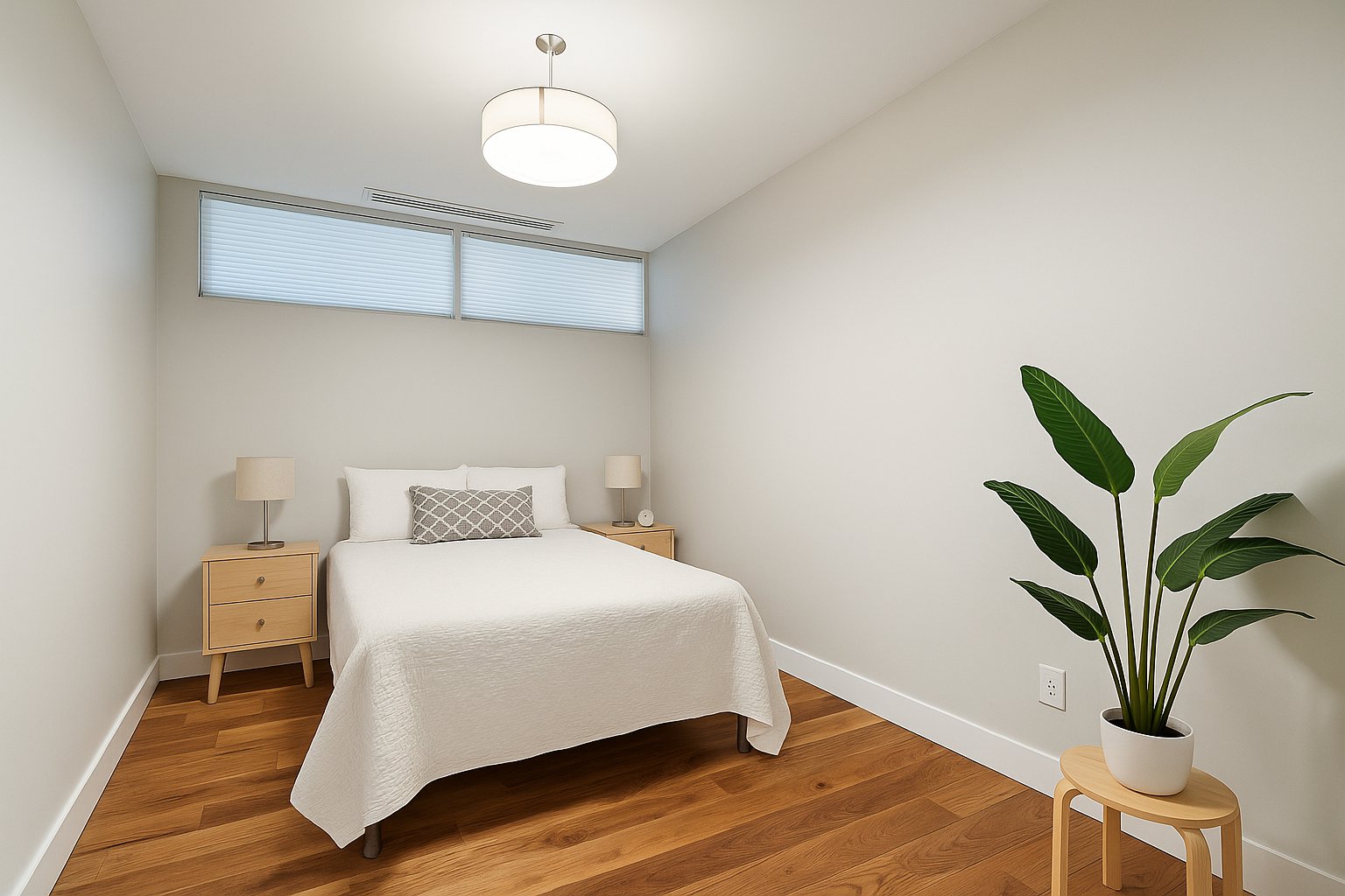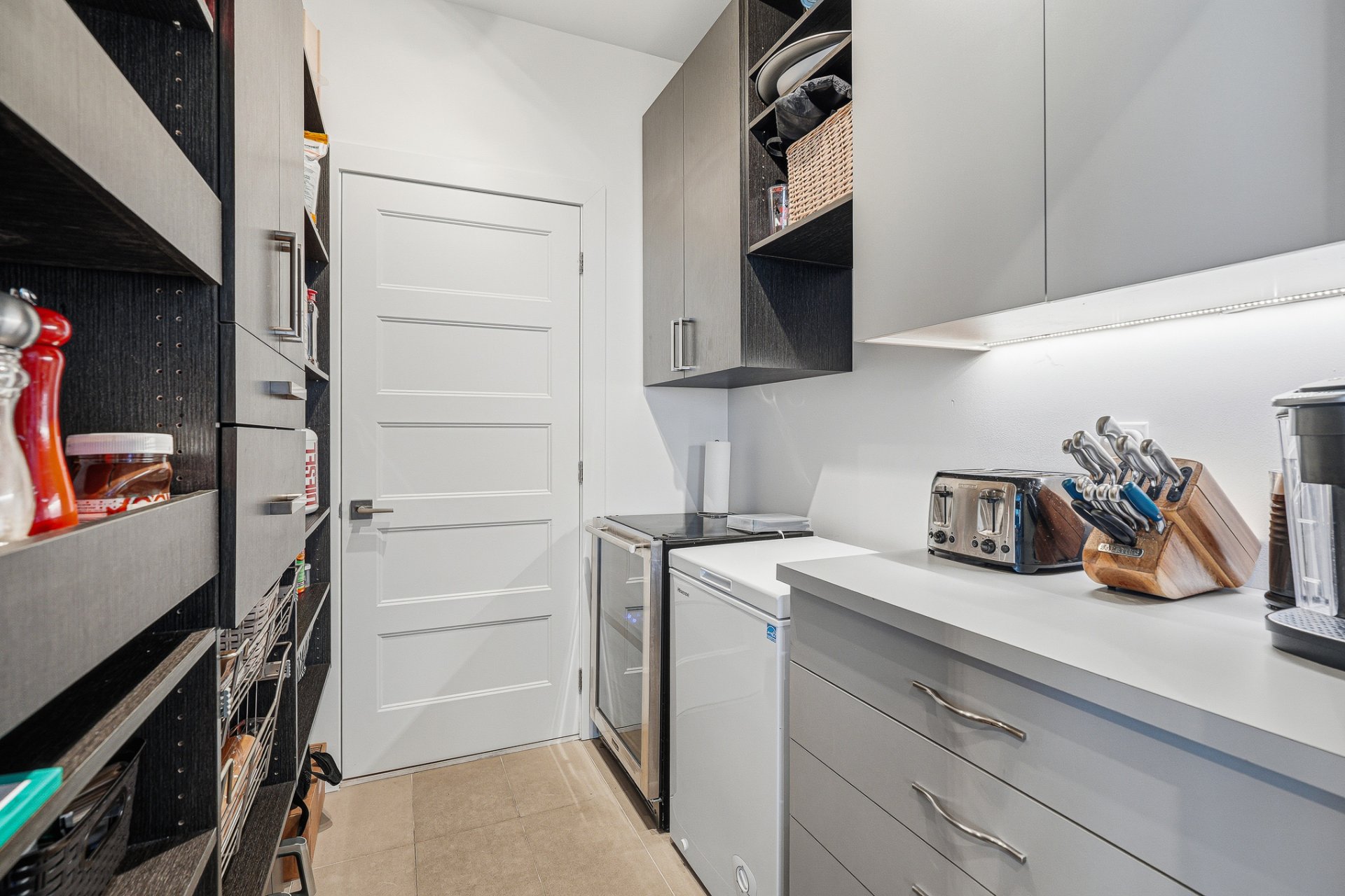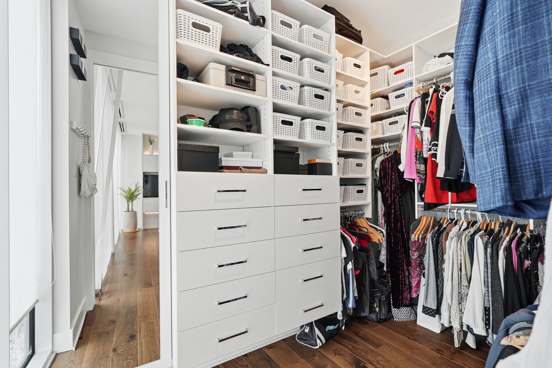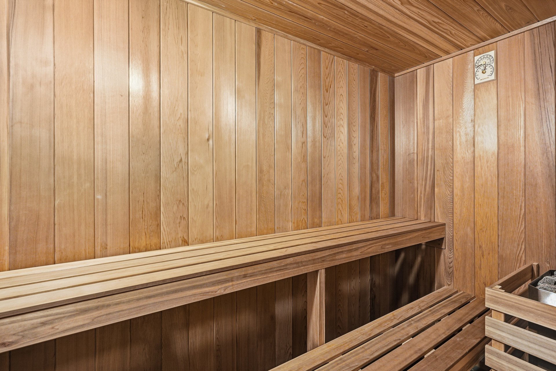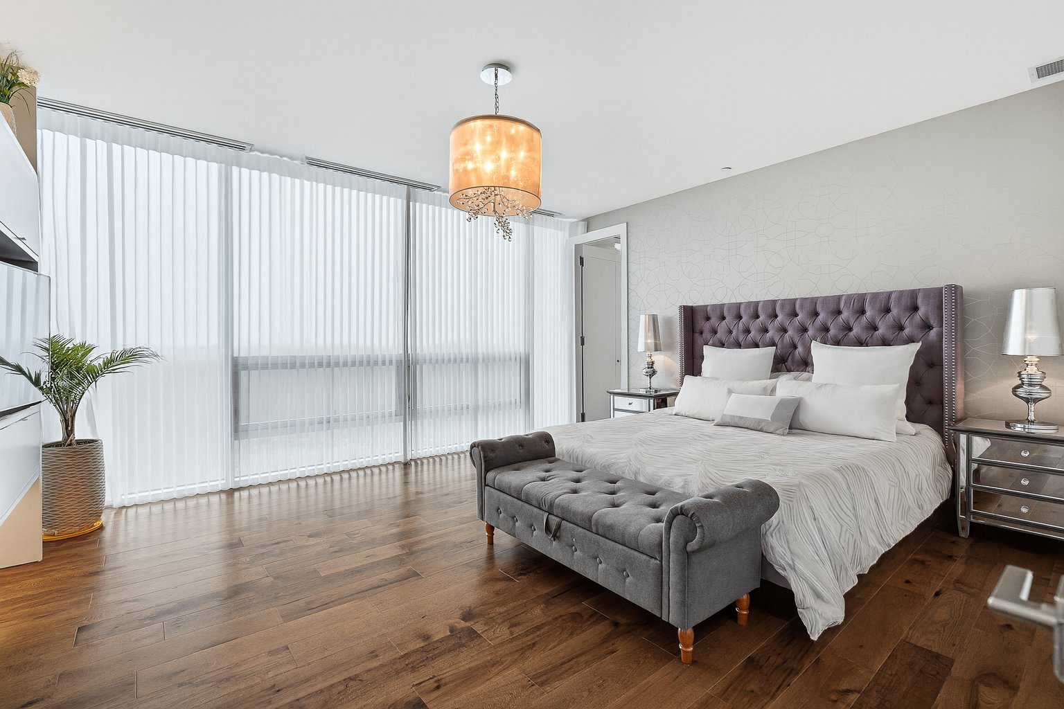 With over 2,700 sq. ft. of living space, the unit features a large entrance hall leading to an open-concept living area where floor-to-ceiling windows provide unobstructed views all the way to Montréal. Natural light floods the space thanks to the unit's southeast orientation, positioned just above the treetops.