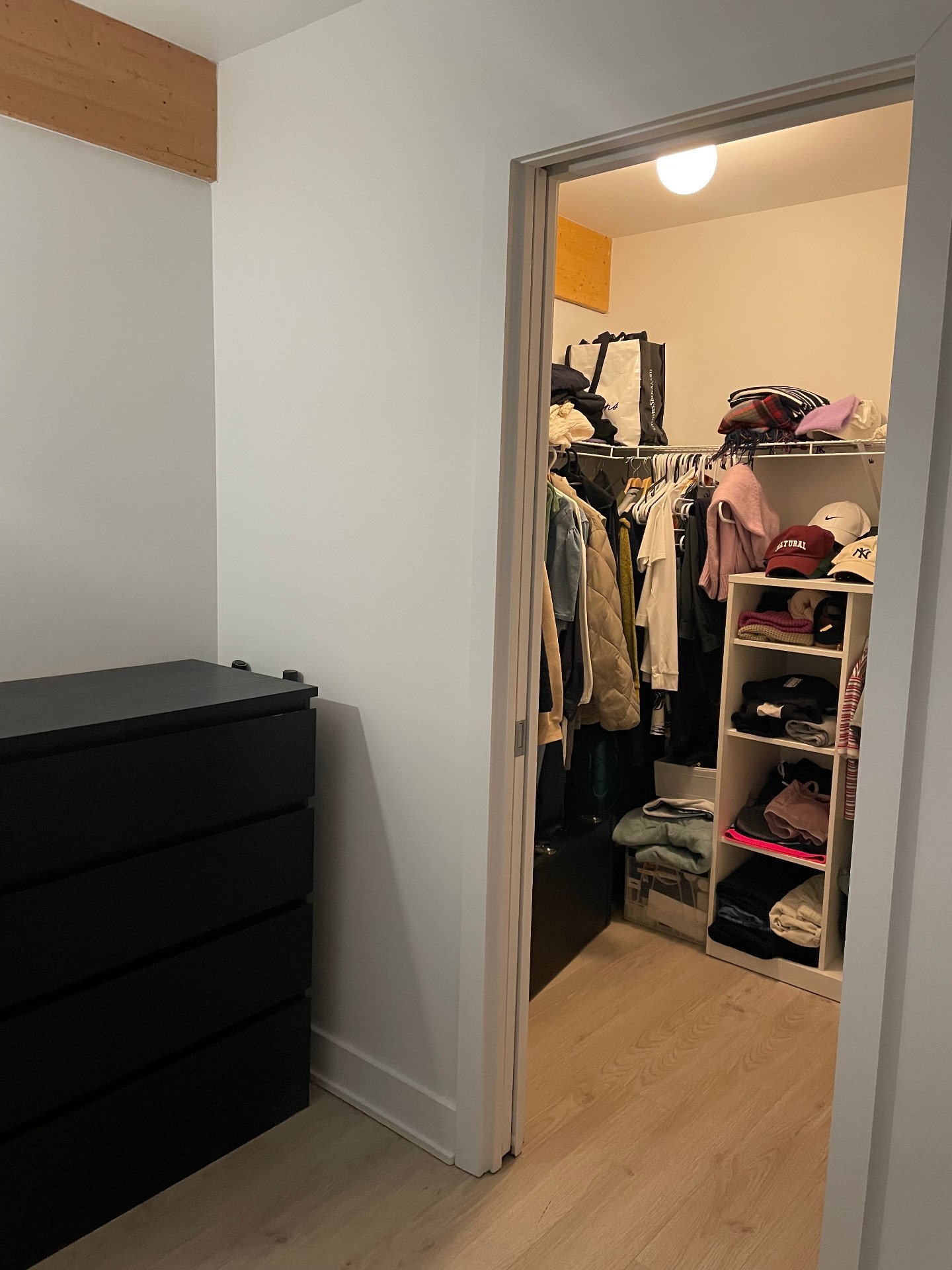 Lease transfer ending November 30th 2026. Bright and elegant condo in the heart of Griffintown! Beautiful 2-bedroom, 1-bathroom unit featuring 9-ft ceilings, cross-laminated wood beams, air conditioning, in-unit washer/dryer, and a private balcony. Located in the prestigious Arbora project, offering top-tier amenities: gym, garage, wine cellar, storage lockers, and bike parking. Just steps from the Lachine Canal, St-Ann Park, ETS, and Griffintown's best cafés, restaurants, and boutiques. Urban living at its finest!
