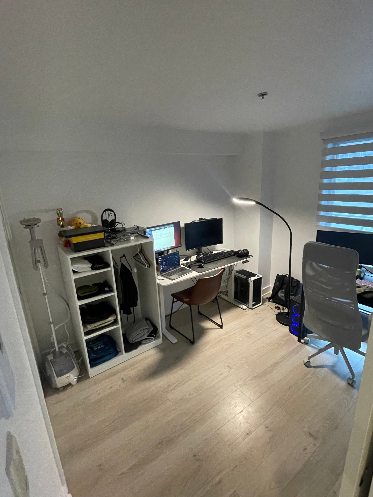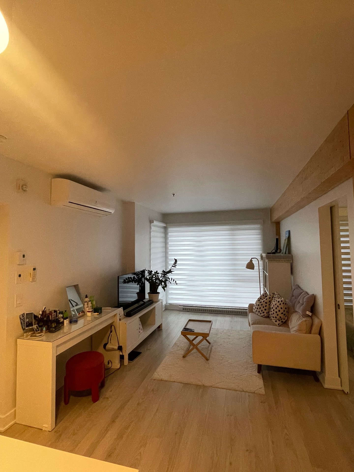 This bright 2-bedroom, 1-bathroom condo features 9-foot ceilings, modern finishes, air conditioning, a private balcony, and in-unit washer and dryer. The layout is thoughtfully designed for comfort, functionality, and a contemporary urban lifestyle.
