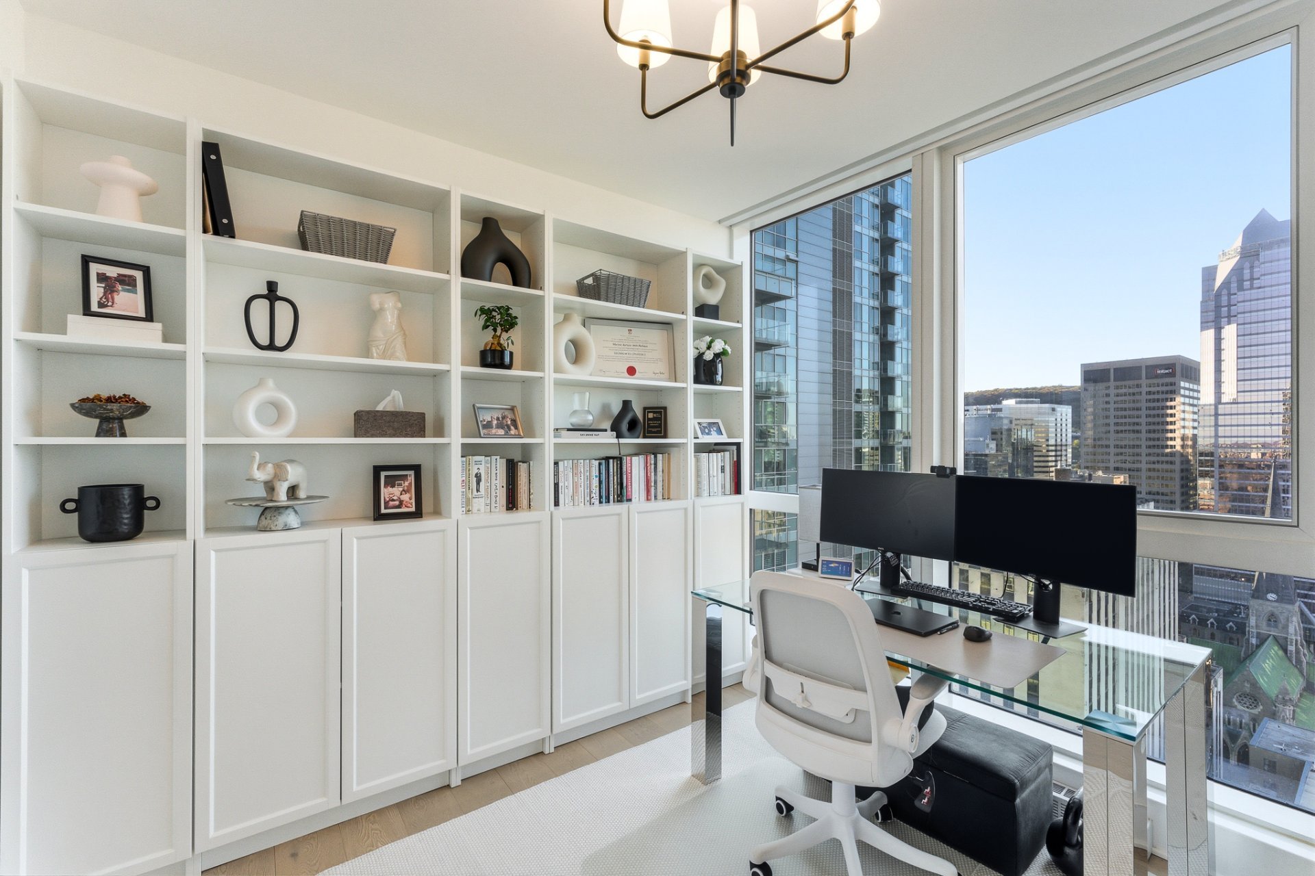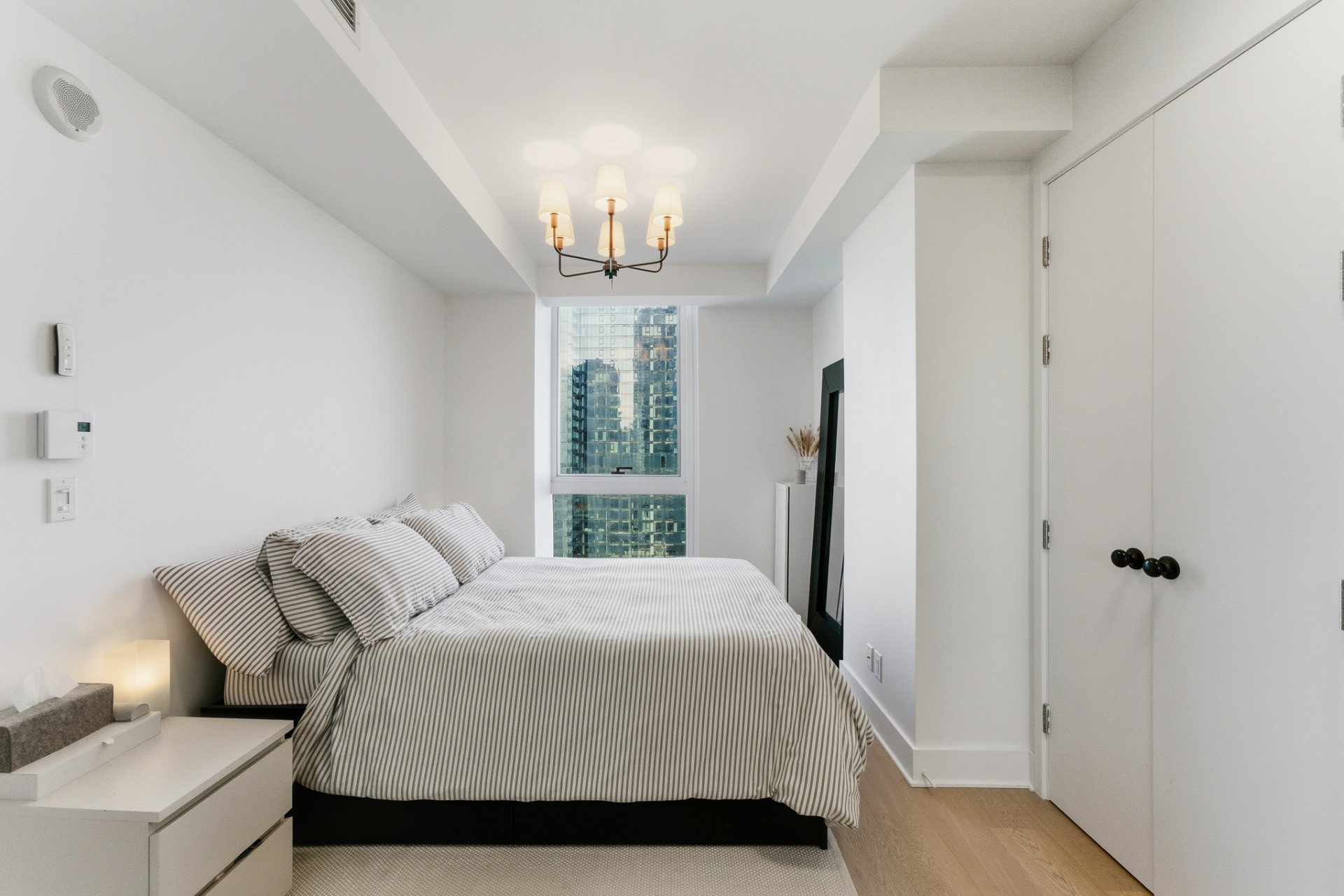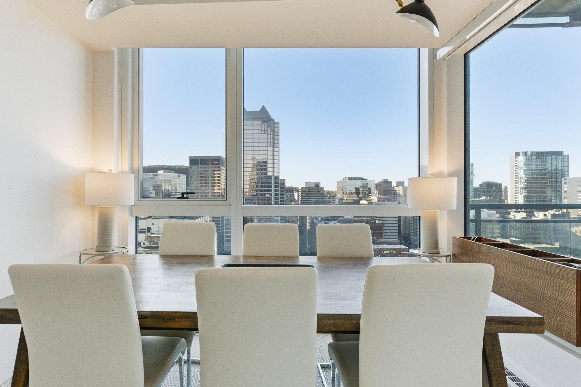 Perched in the vibrant heart of downtown Montreal, this remarkable address perfectly combines urban dynamism with spectacular views. Located high above the city, it overlooks the city and offers remarkable views of Mount Royal, the glittering rooftops of downtown, and, in the summer, the fireworks that light up the Montreal sky. Bathed in natural light, this residence captivates with its contemporary design that exudes clarity and elegance. Its prime location allows you to enjoy the best of Montreal: cafés, museums, shops, restaurants, and more, all within walking distance.