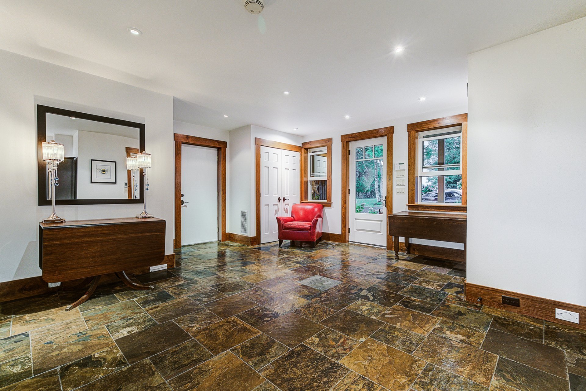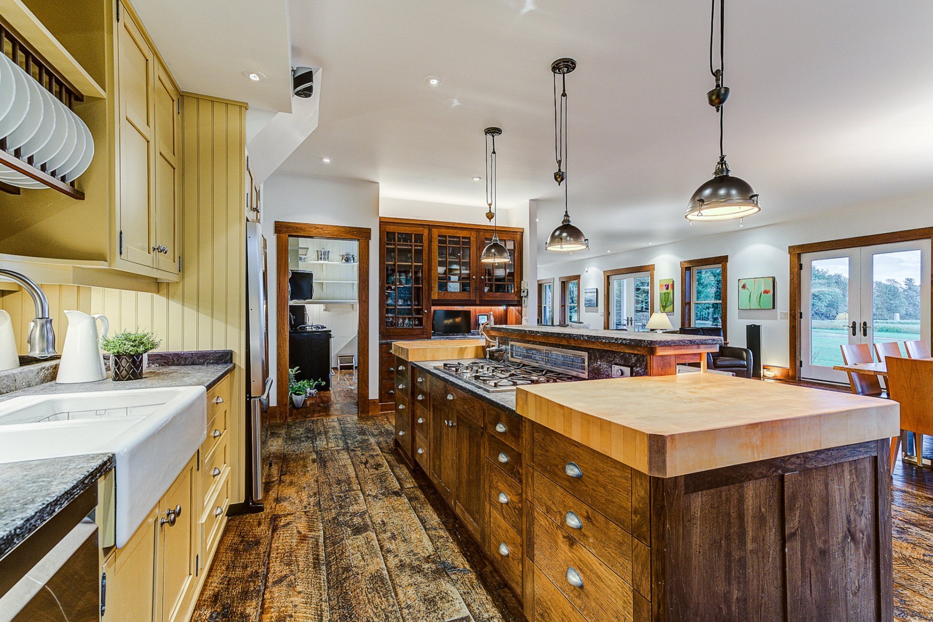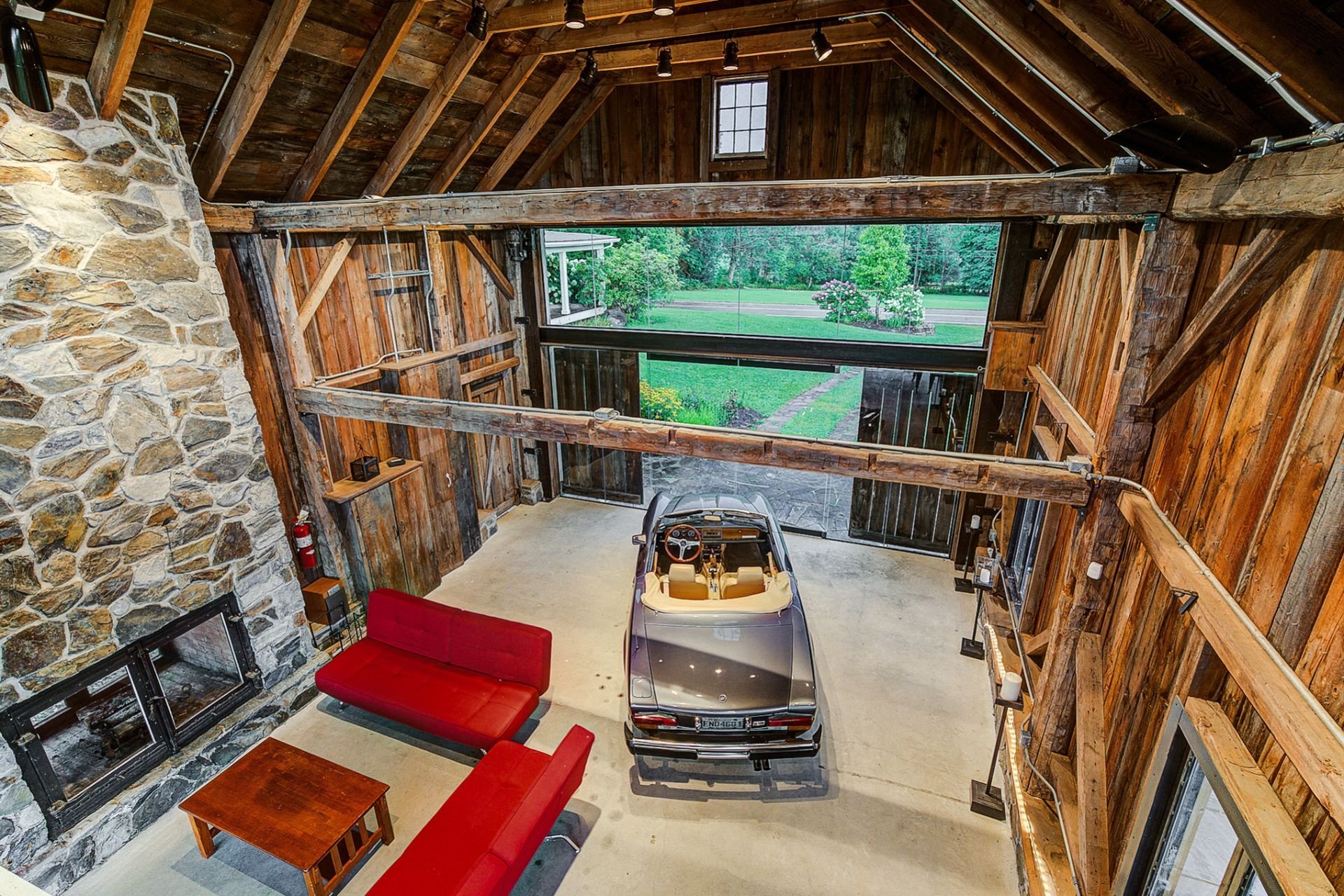 The carriage house, which housed horse carriages in the 1800's has been modernized and incorporates hewn posts and beams from the original 1839 building into the state of the art glass and steel structure. The front facade is completed in clapboard walls emulating the look of the 1800's. The wall forms panels that retract electrically to reveal the 21st century design. The building, boasting breathtaking views is fully equipped with multimedia facilities, double sided fireplace and mezzanine overlooking the property. This exquisite building can be used for events or as a gathering place to enjoy company.
