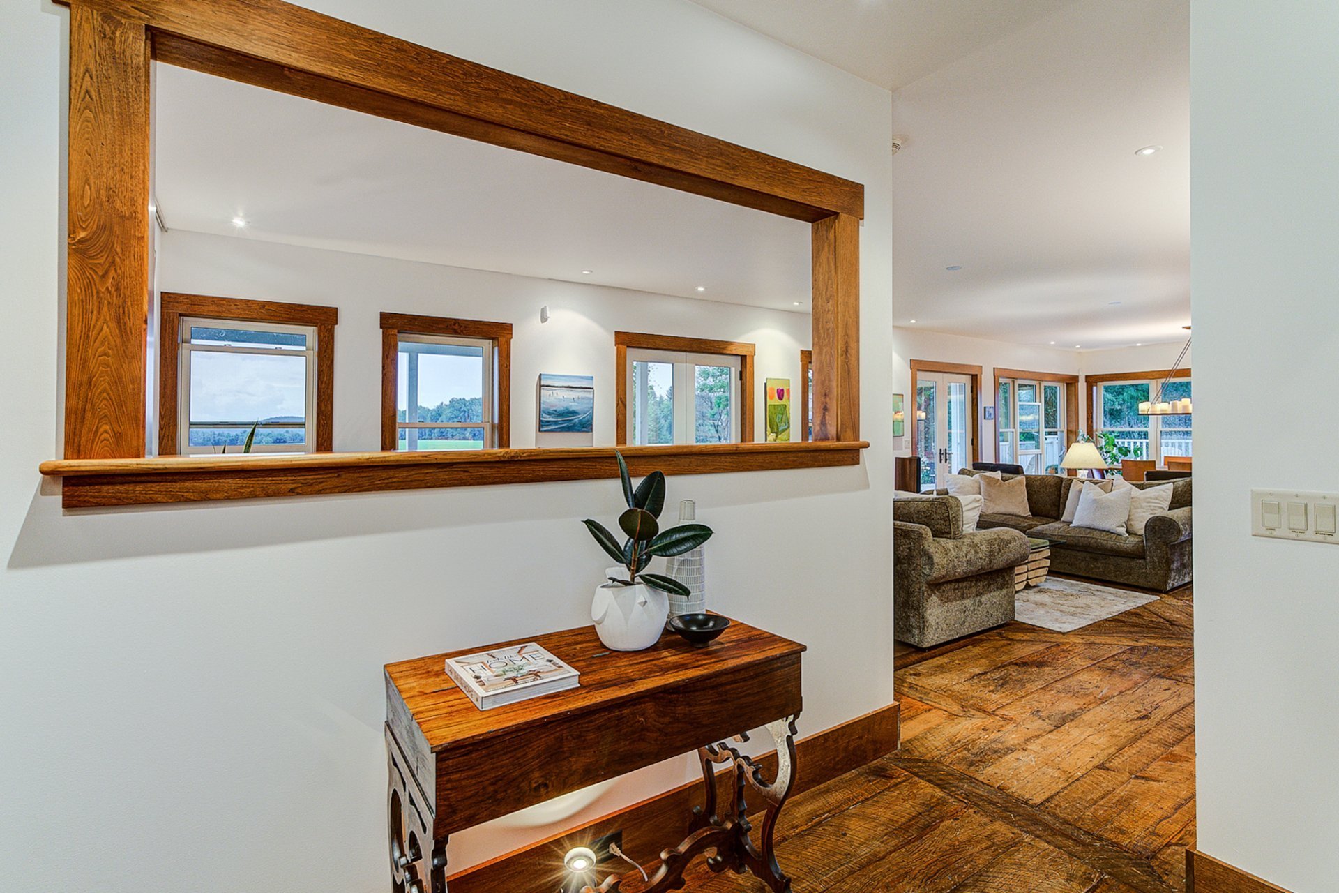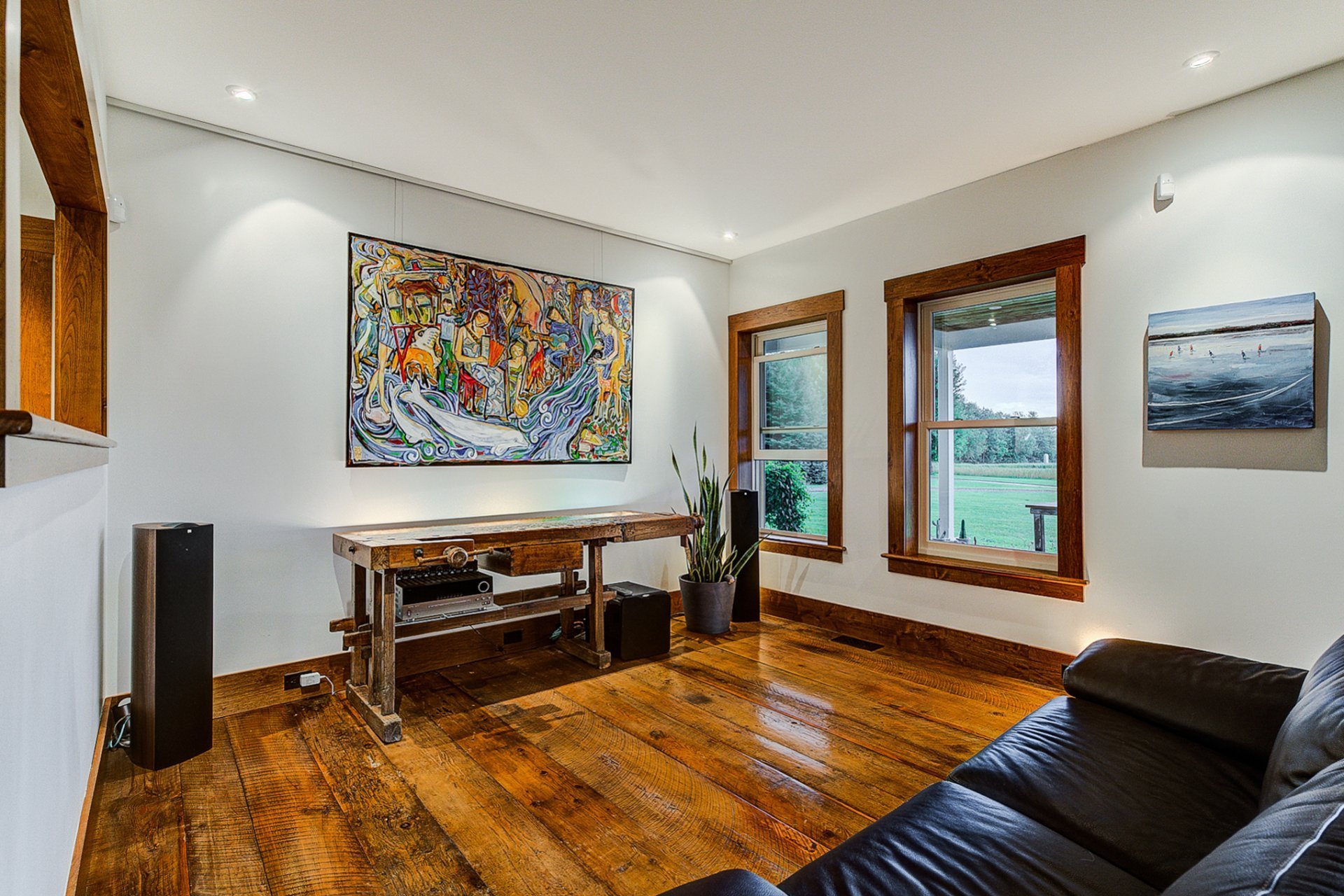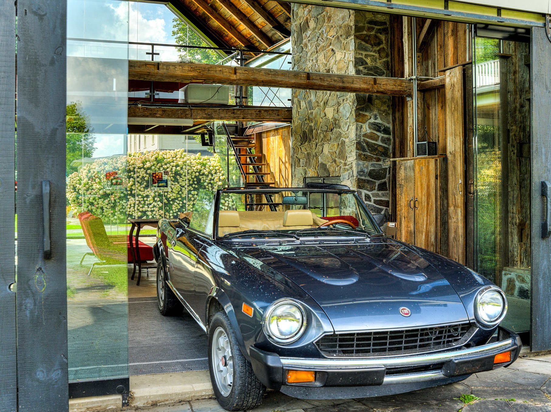 The carriage house, which housed horse carriages in the 1800's has been modernized and incorporates hewn posts and beams from the original 1839 building into the state of the art glass and steel structure. The front facade is completed in clapboard walls emulating the look of the 1800's. The wall forms panels that retract electrically to reveal the 21st century design. The building, boasting breathtaking views is fully equipped with multimedia facilities, double sided fireplace and mezzanine overlooking the property. This exquisite building can be used for events or as a gathering place to enjoy company.