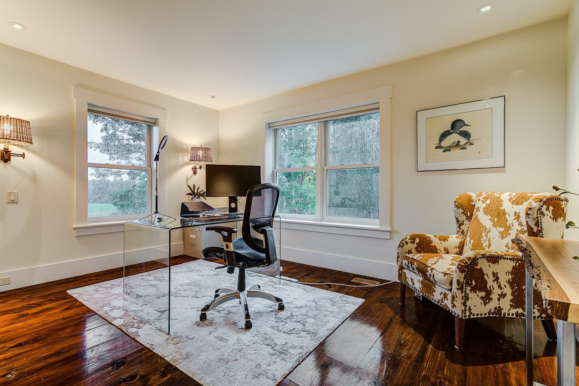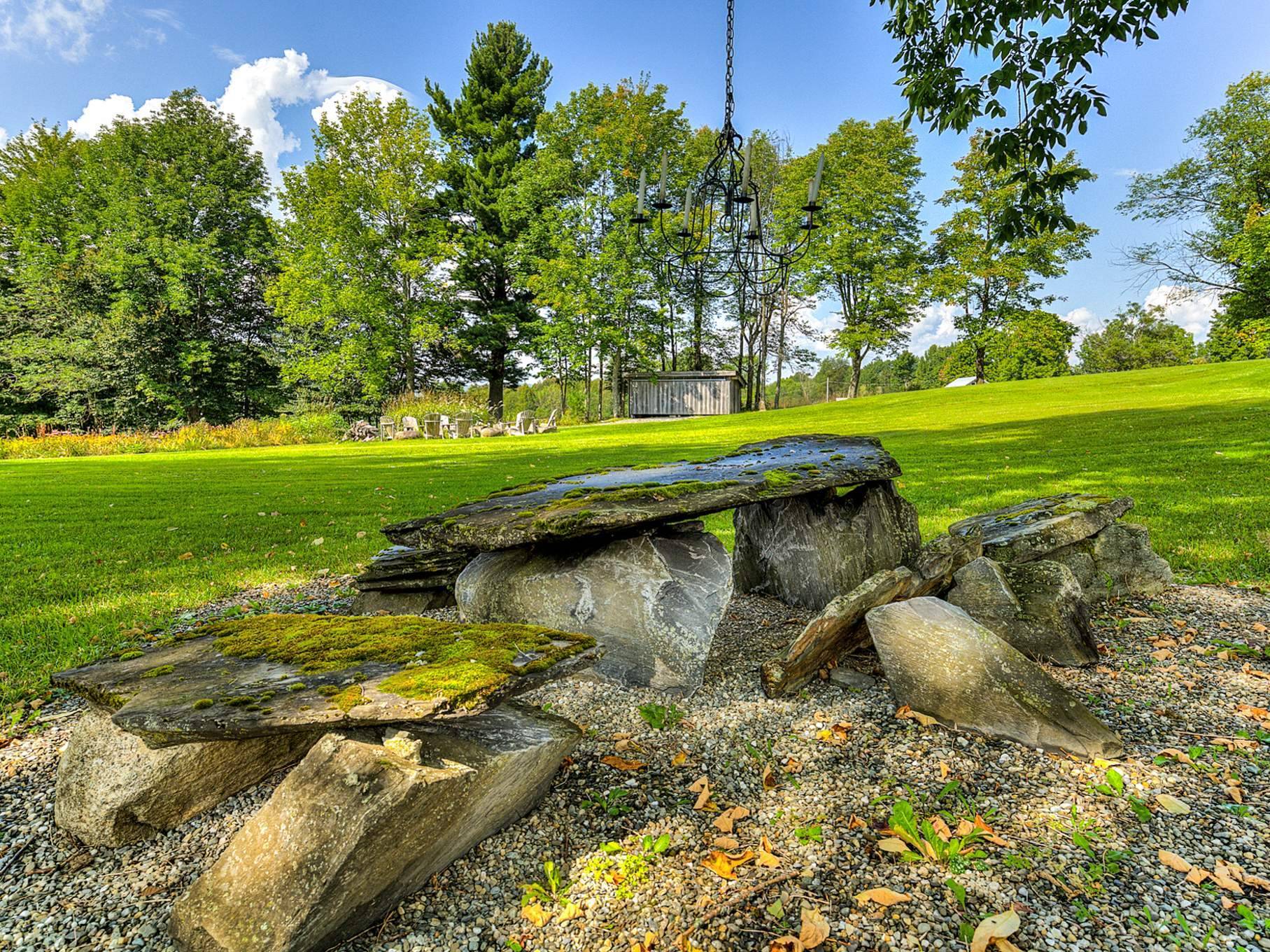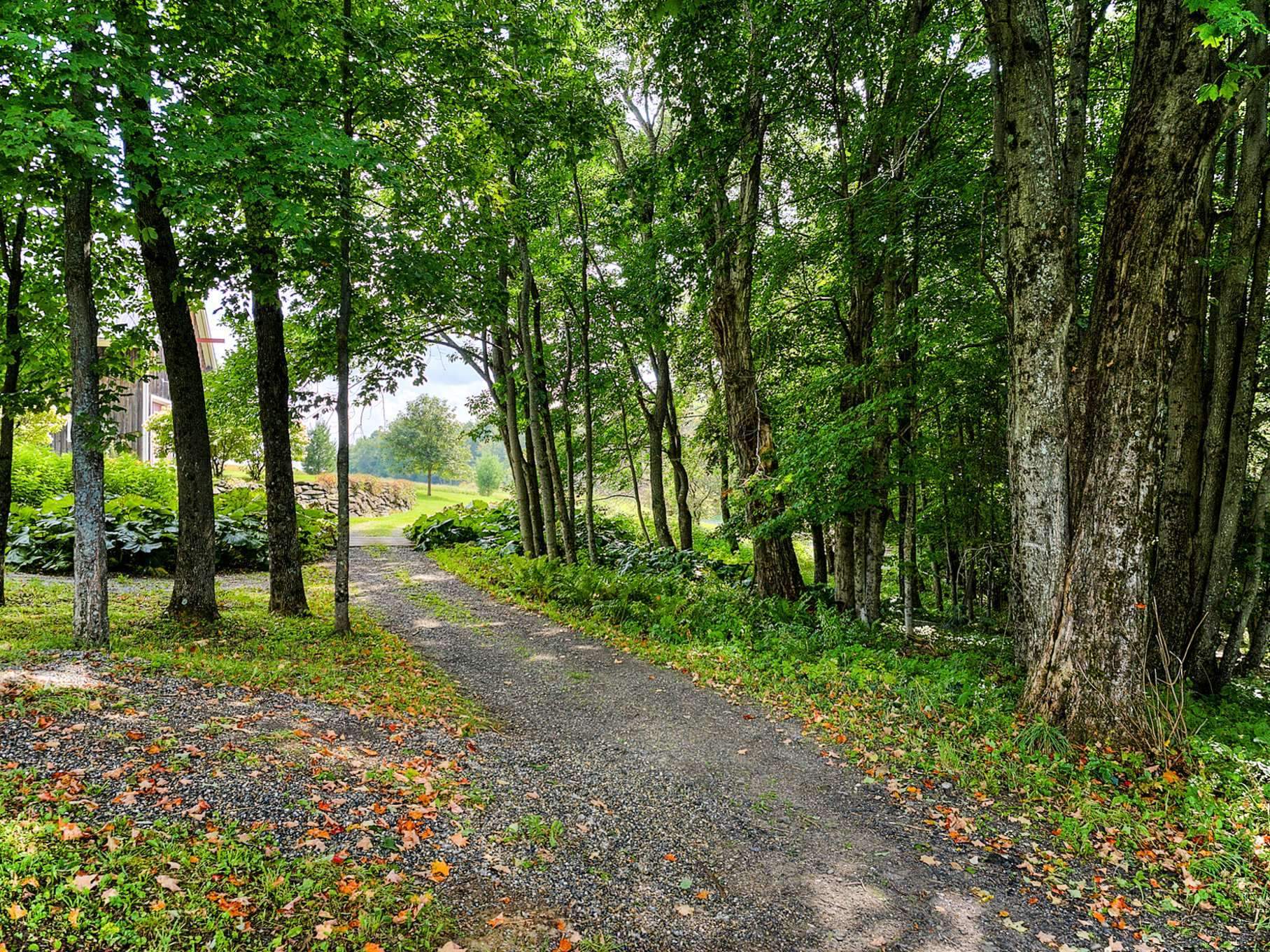 Nestled in the heart of the Eastern Townships, this exquisite property is designed to blend 1800's local historical culture with modern architecture. The expansive 80 acre property with stunning mountain views to the south and west, features 2 houses, a glass carriage house, a barn and multiple sheds for storage.
