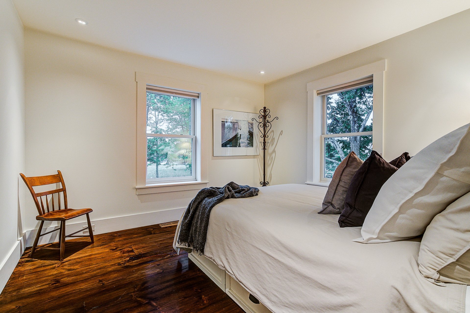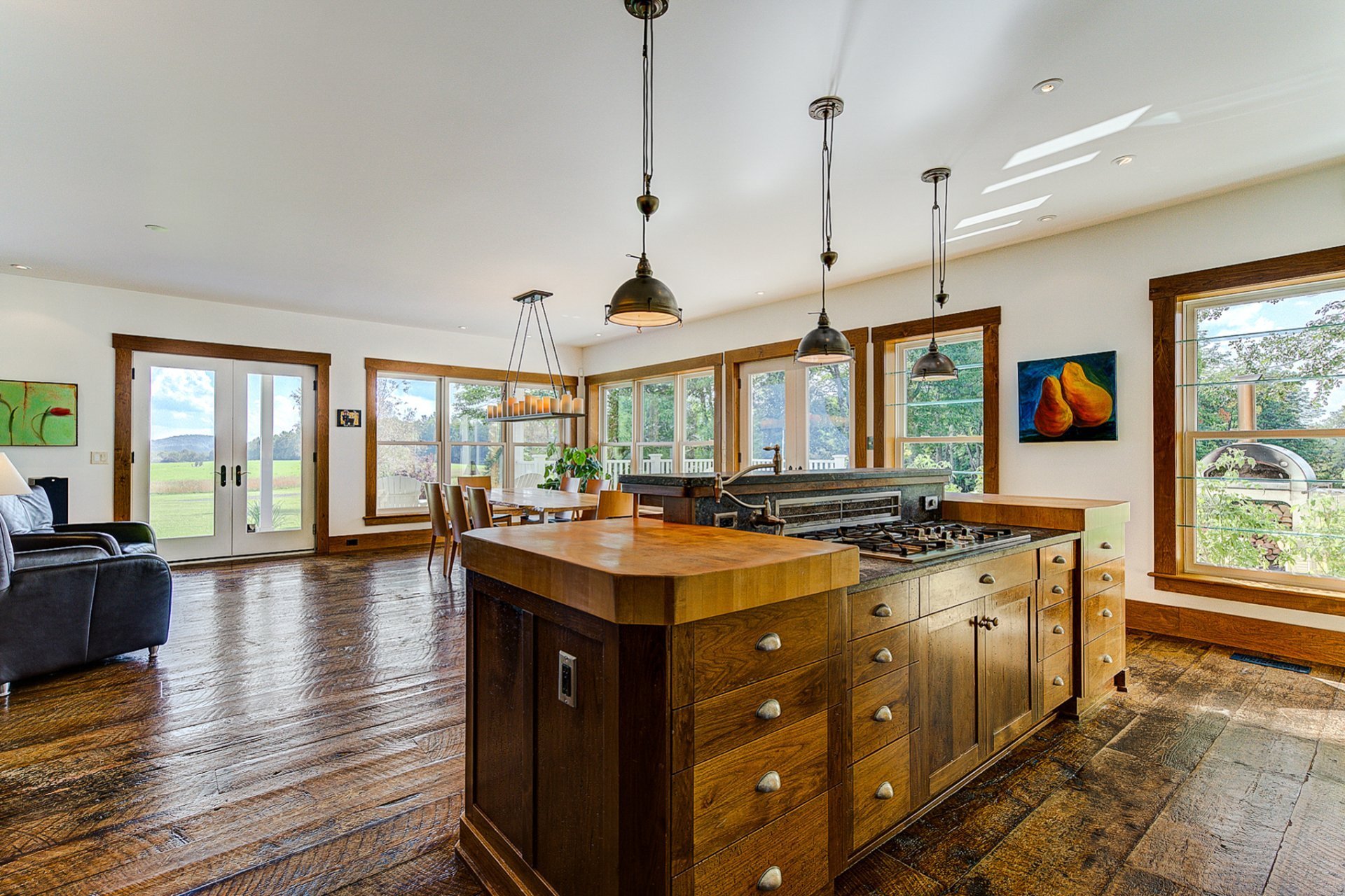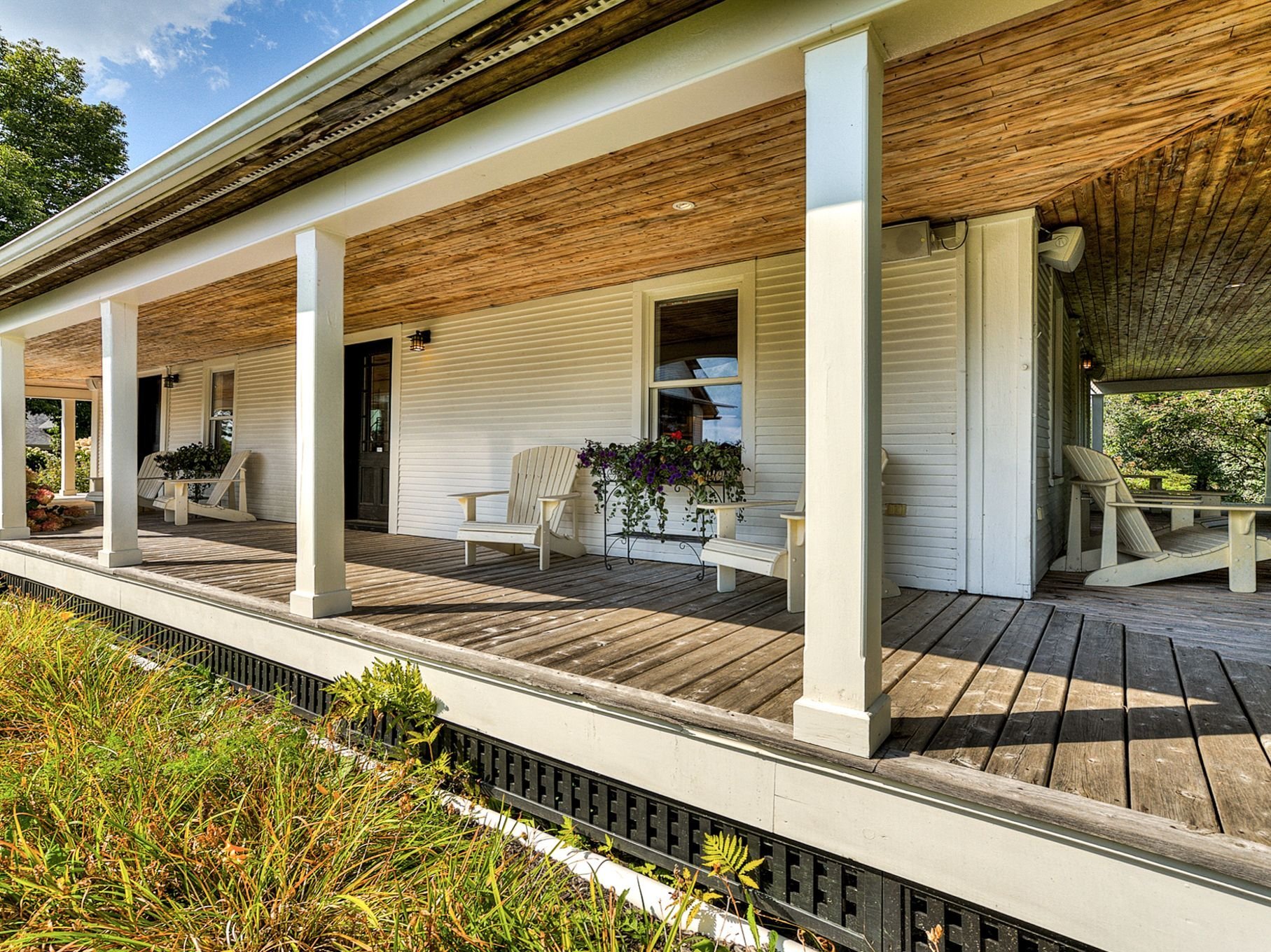 The original house, built in 1839 has been immaculately restored preserving the historical look and feel. Even though the house has been meticulously refinished and is adherent to code, the layout remains much the same as originally designed. This 5 bedroom house features original hardwood flooring throughout, exposed beams and windows offering spectacular views. The large wrap-around porch is perfect for watching the sun set over the mountains on summer evenings.