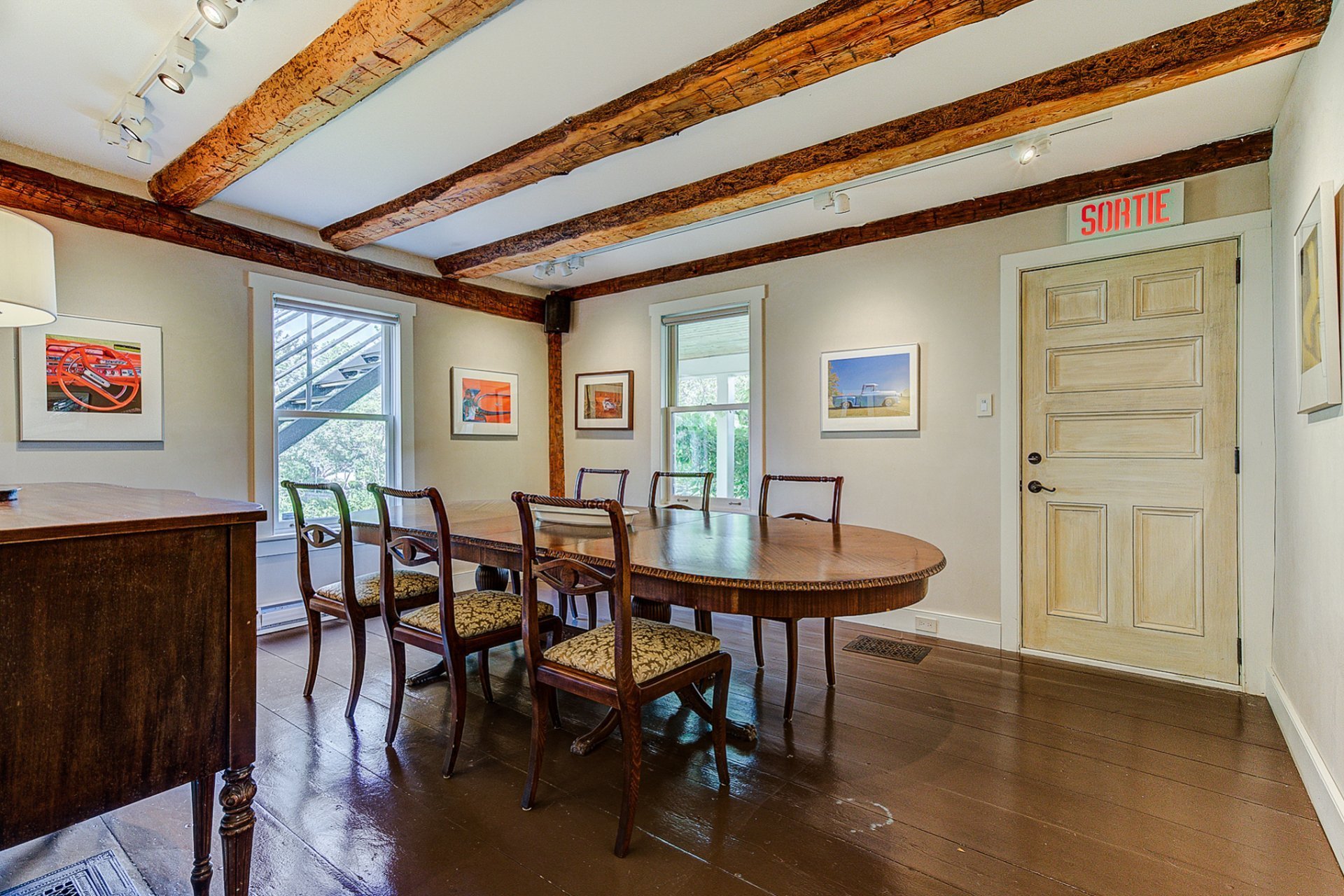 The main house, built in 2007 was designed by Quebec's renowned architect ALAN BELLAVANCE and was built to emulate the architecture of the original house. This 7-bedroom home embraces the concept of living peacefully within nature enabled by oversized windows overlooking Owl's Head and views into Vermont. The main floor features an open concept living space, ideal for entertaining. The kitchen features a built in gas stove, large farm-style sink, butler's kitchen and ample storage. The large open dining room provides a direct access to the expansive wrap-a-around porch with numerous seating areas designed for soaking in the scenery and enjoying the breath-taking sunsets.