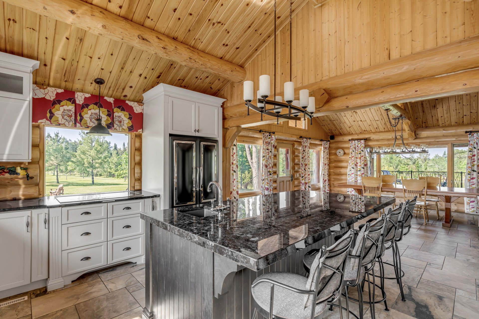 A haven of peace, this private 177-acre estate, with a lake stored 800m long and reaching up to 30 feet deep, will delight you. Thanks to its excellent development potential and its white zoning, this site offers many opportunities to the buyer. Located approximately 15 minutes from the city of Saint-Georges and 1h15 from Quebec City, this estate includes two private entrances with automatic gates, 2 log cabins and several secondary buildings. Possibility of landing on the lake by seaplane or landing by helicopter. 6 bedrooms, 4 bathrooms and a large mezzanine with a view of the lake.