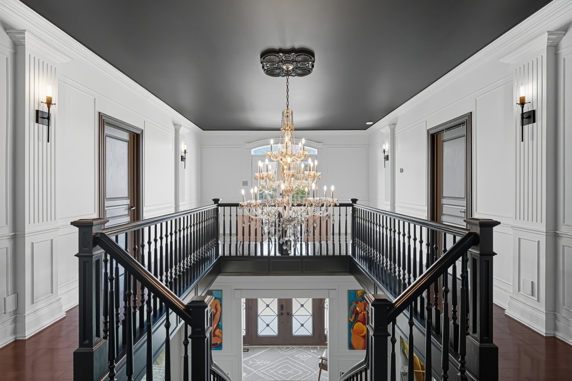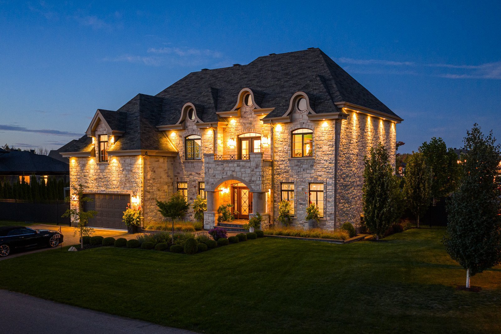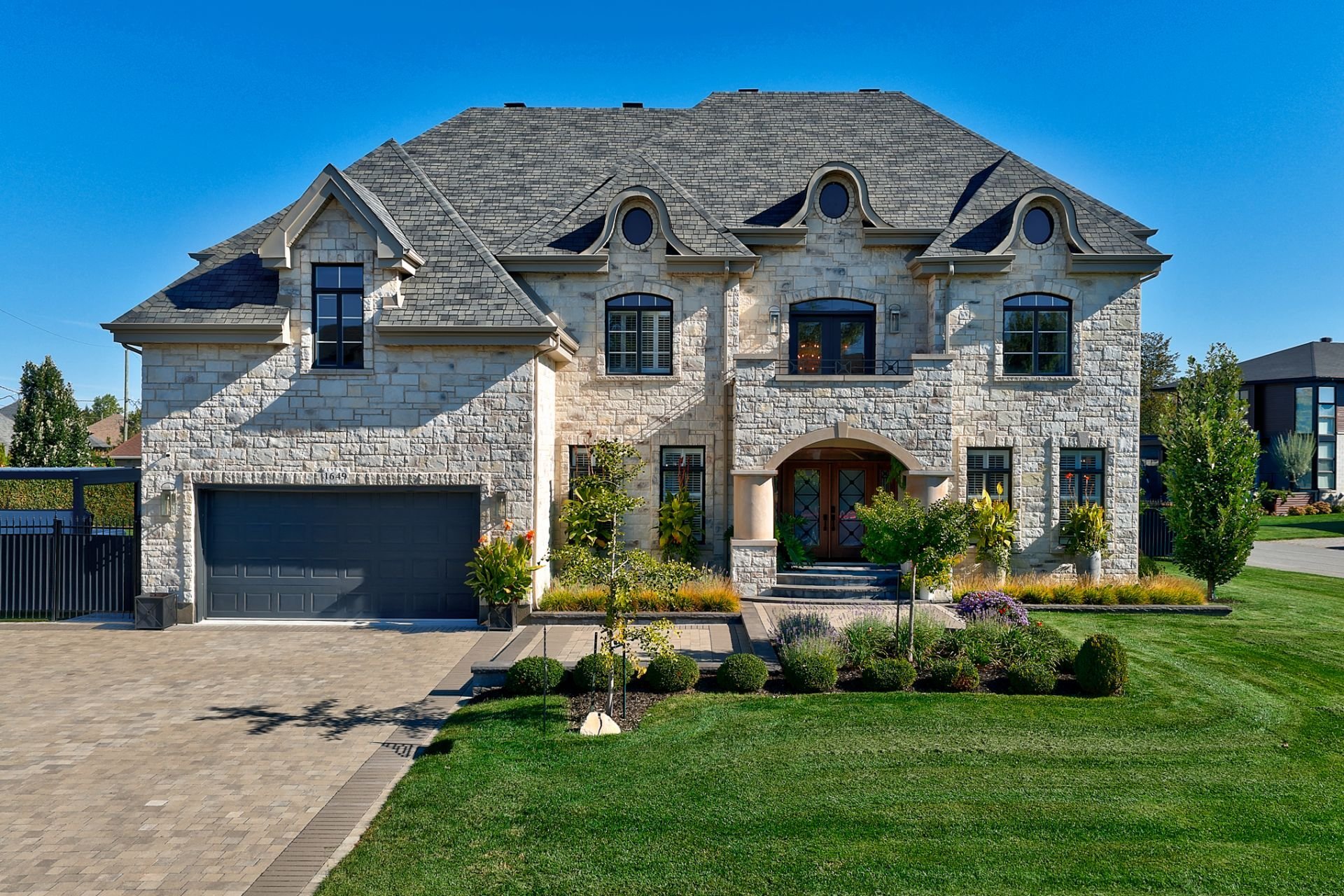 A double garage, spacious paved driveway, and natural stone façade complete this extraordinary residence. Its noble and symmetrical architecture evokes European charm while offering modern-day functionality.