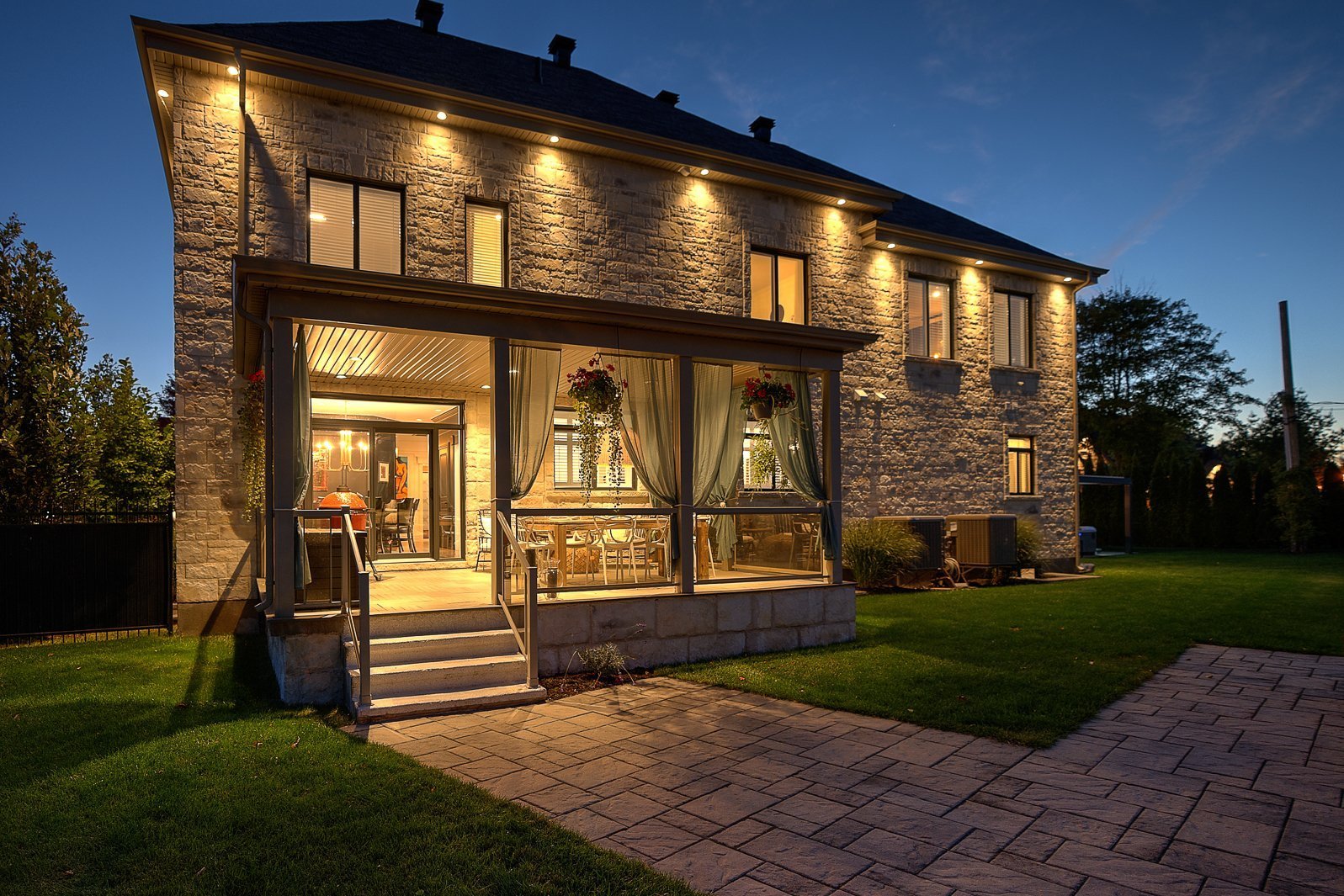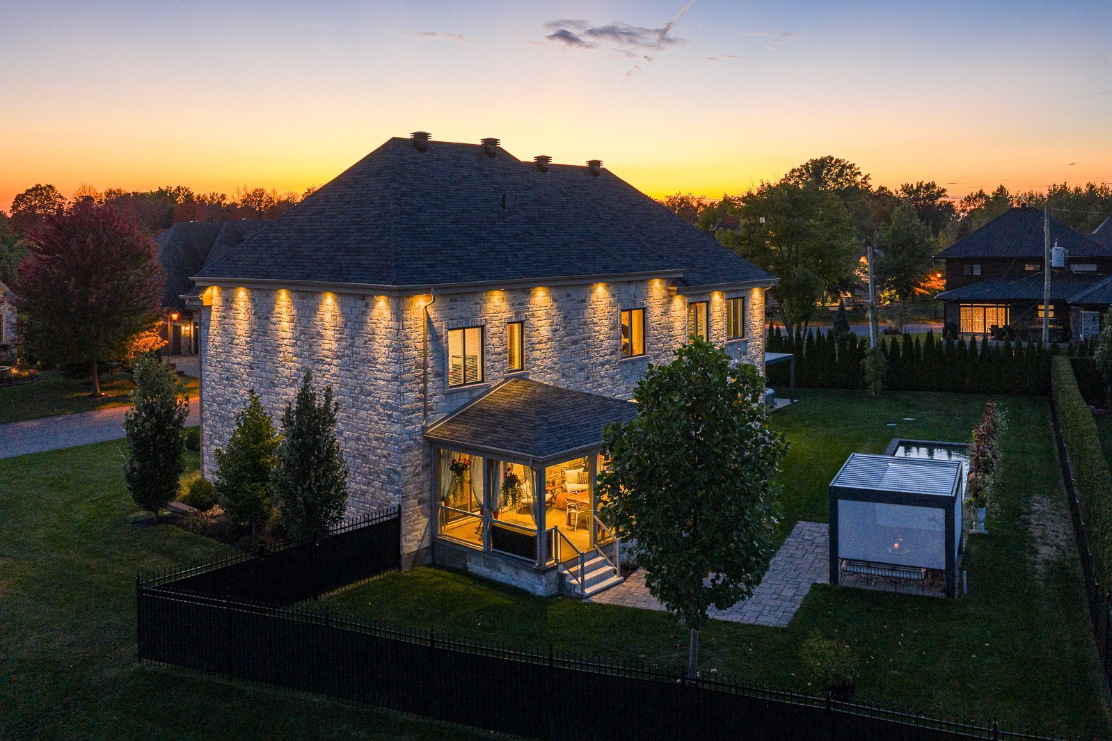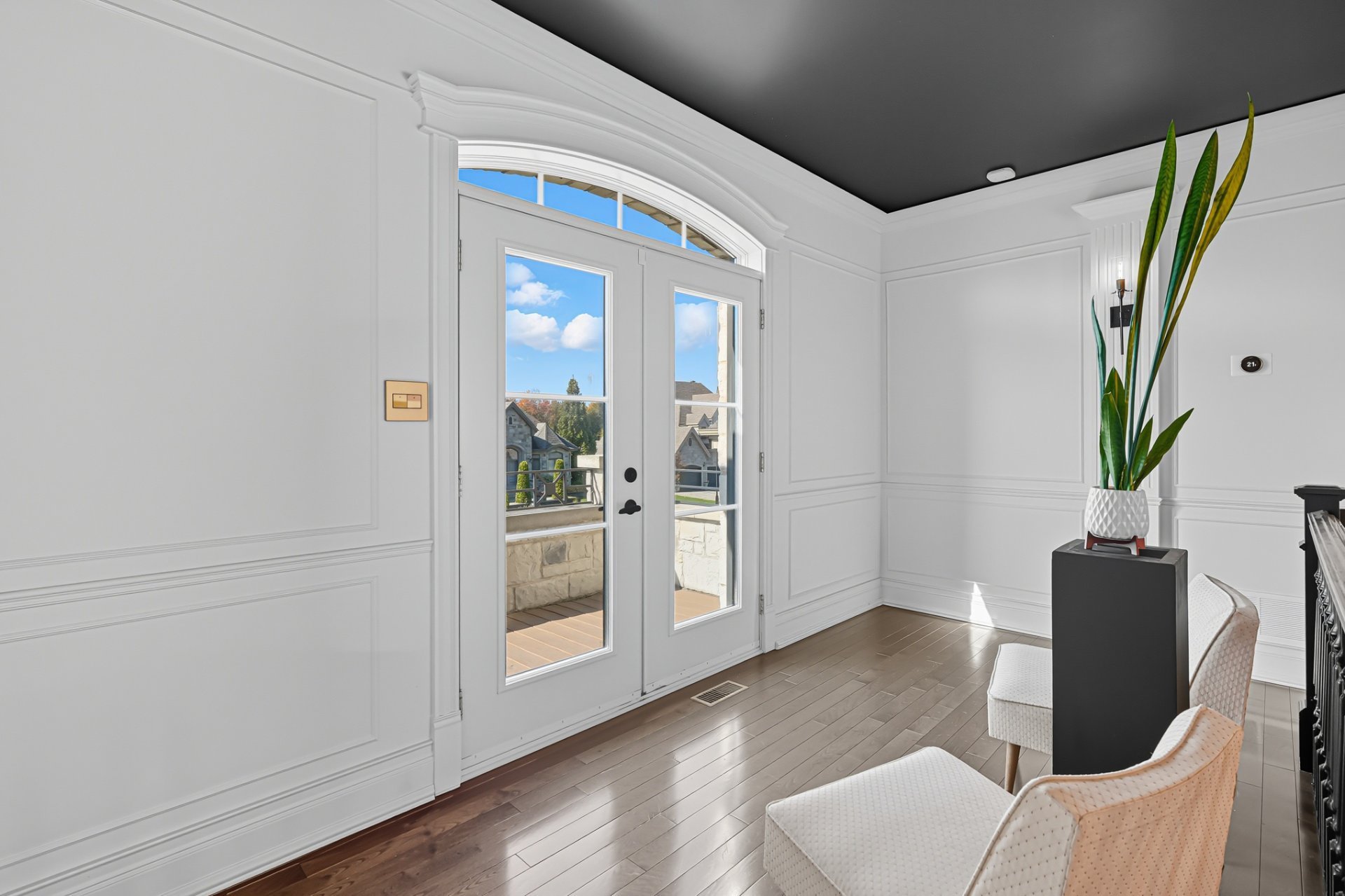 A double garage, spacious paved driveway, and natural stone façade complete this extraordinary residence. Its noble and symmetrical architecture evokes European charm while offering modern-day functionality.