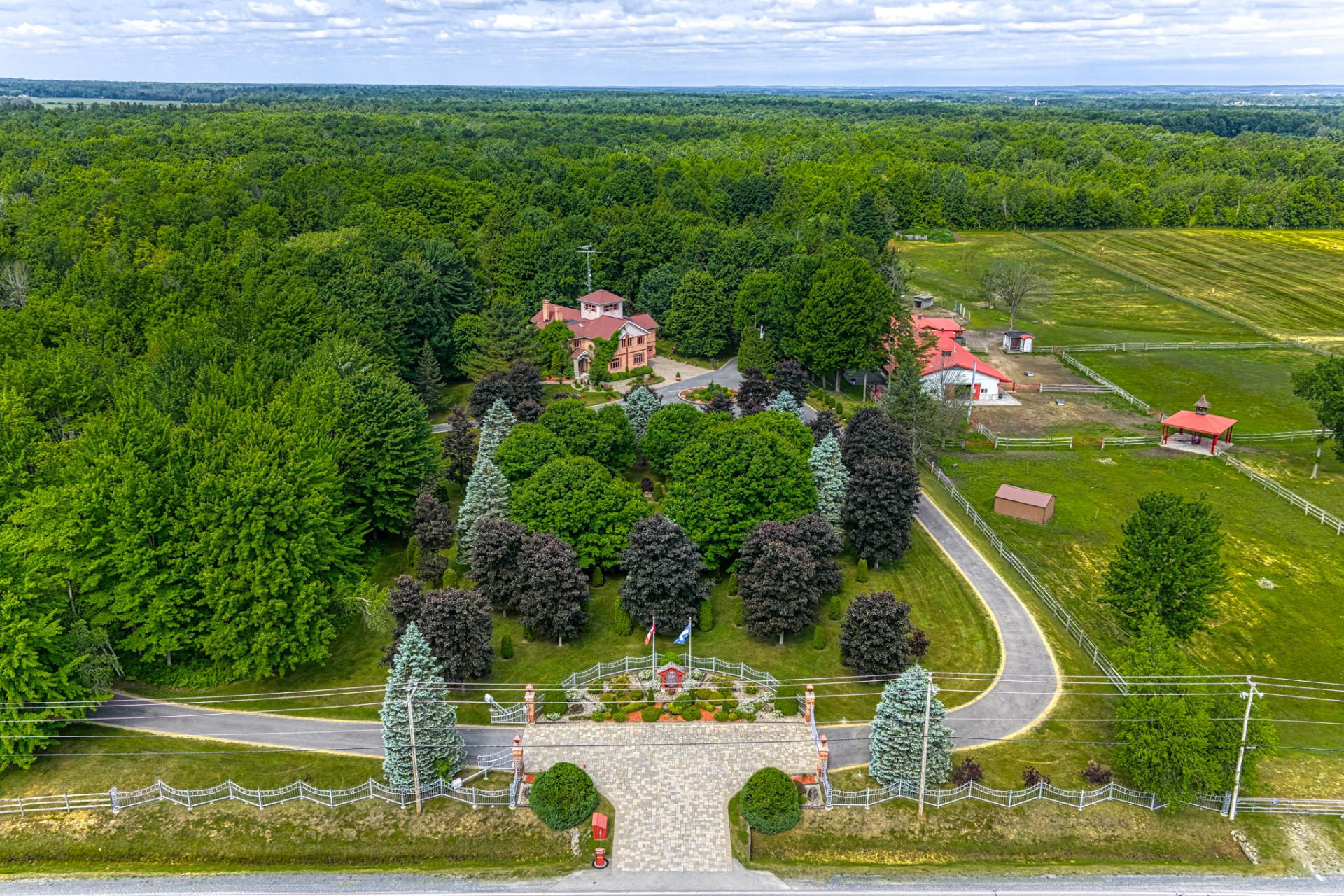 THE PRESTIGIOUS DOMAINE LEGLER, built in 1992, embodies timeless elegance. Set on approximately 140 acres of peaceful countryside, the Hinchinbrooke River meanders through dense forest. The Estate includes more than 10 km of wide, private trails. Its sumptuous residence, built with noble materials, boasts soaring ceilings, bathed in natural light, with an open-concept living and dining room, fireplace and double-sided stove opening onto a chef's kitchen, as well as 7 bedrooms, 6 bathrooms, a sauna and much more. As the crowning jewel; a large indoor swimming pool invites you to relax all year round.