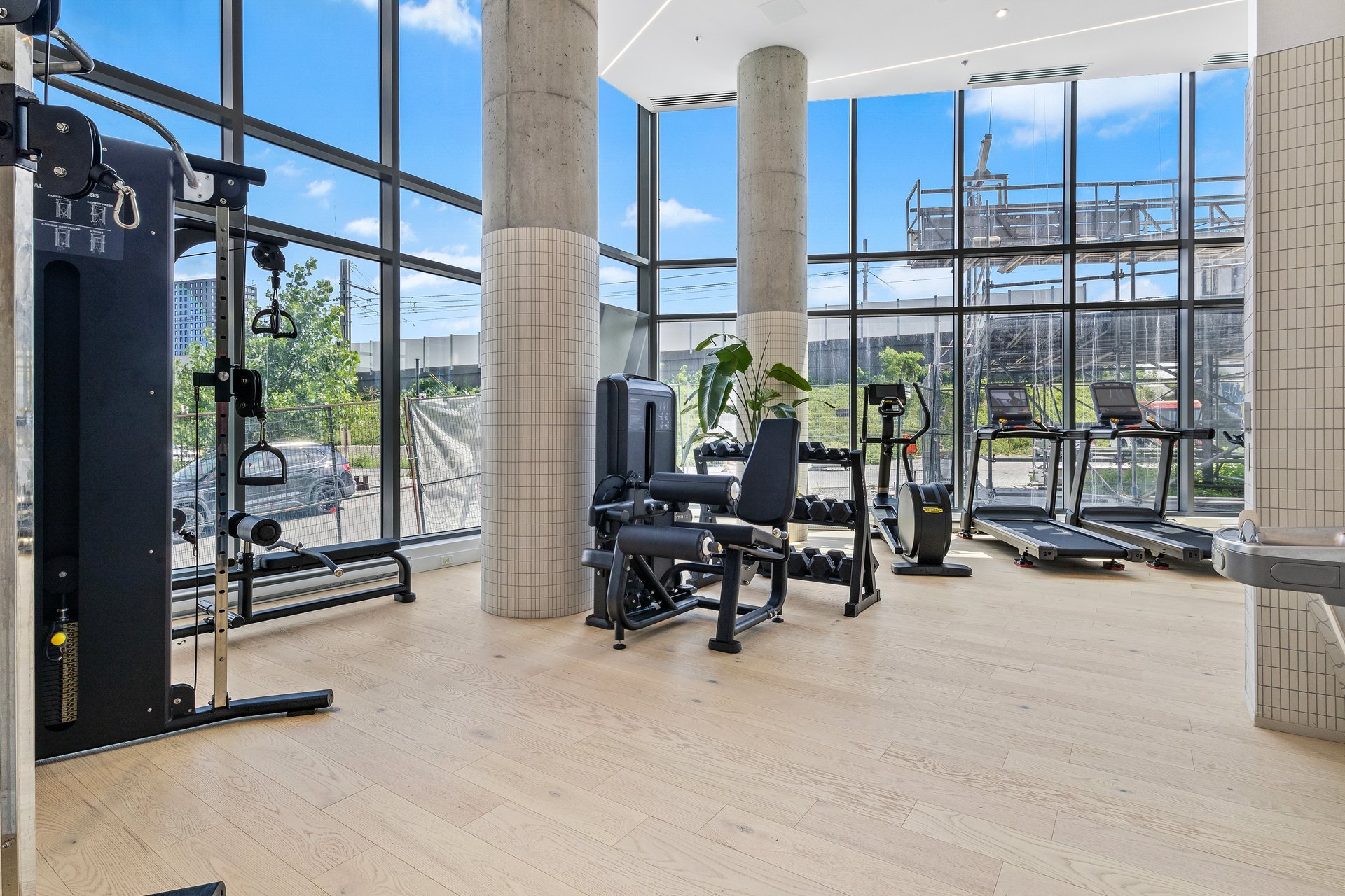 The building offers a pool, outdoor terrace with BBQs, courtyard, exercise room and urban chalet.