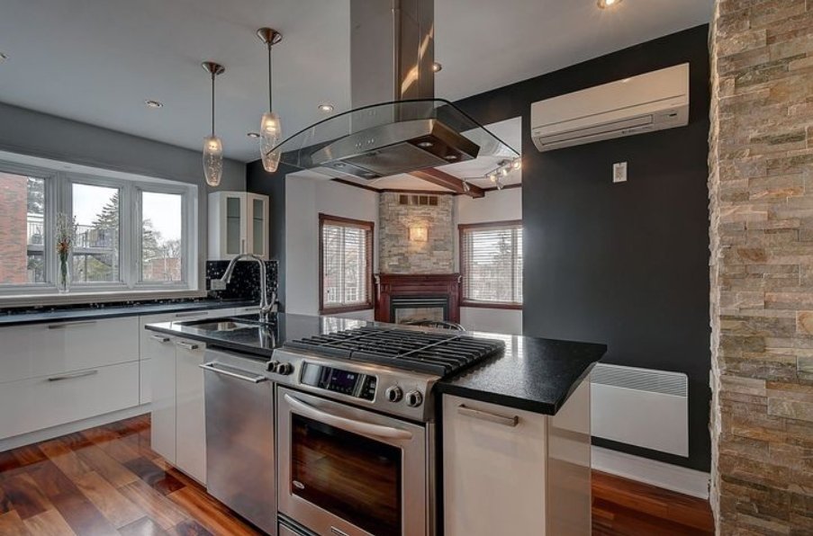 -- Wall-mounted air conditioner ensuring year-round comfort.