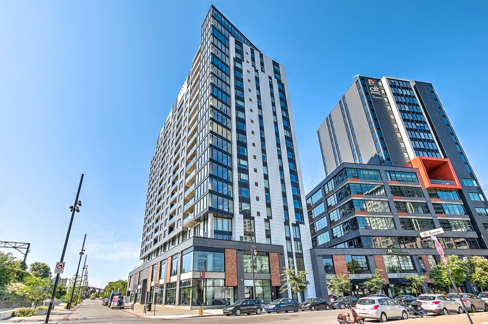 In the heart of Griffintown, just steps from Peel Basin, the Lachine Canal, bike paths, the REM, restaurants, shops, the metro and downtown.