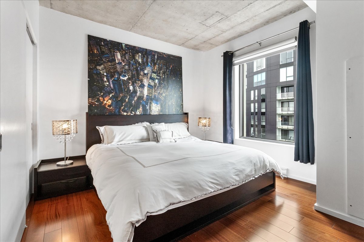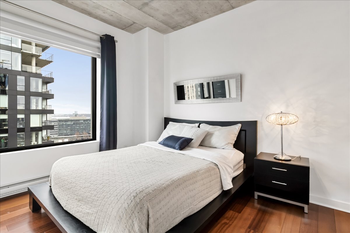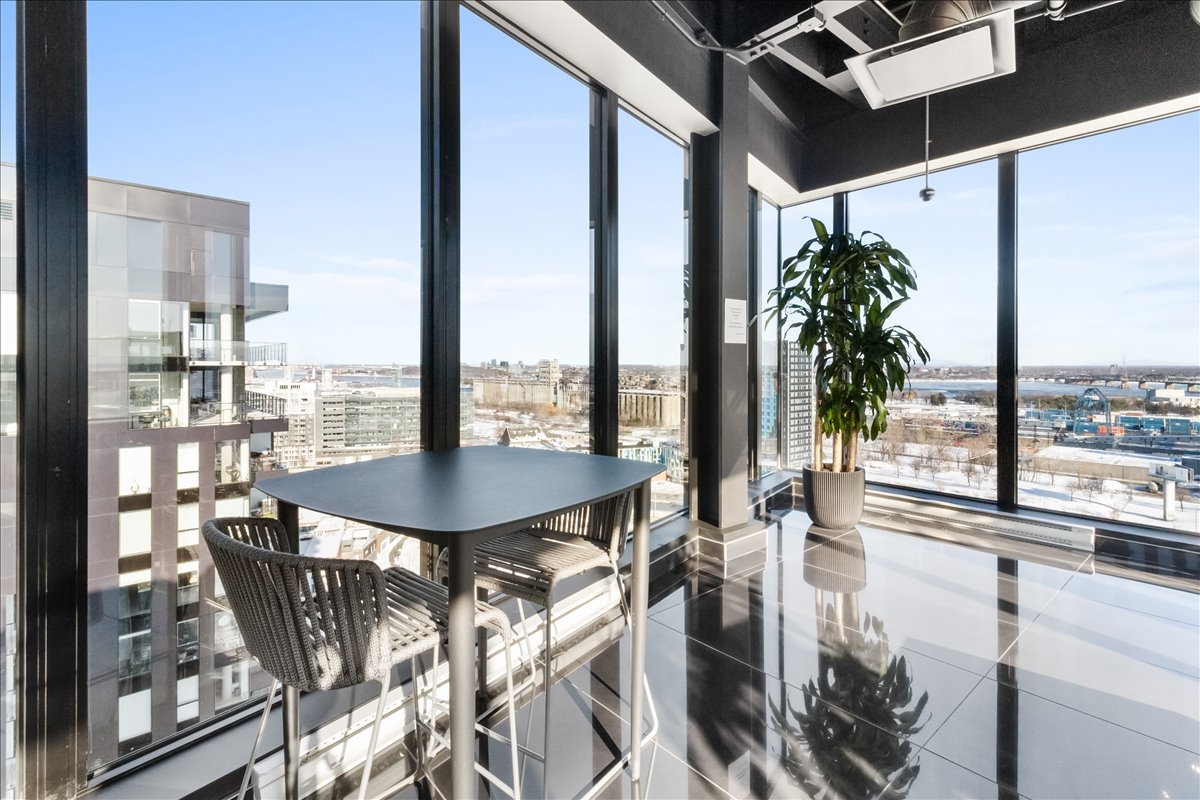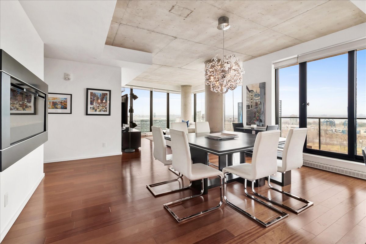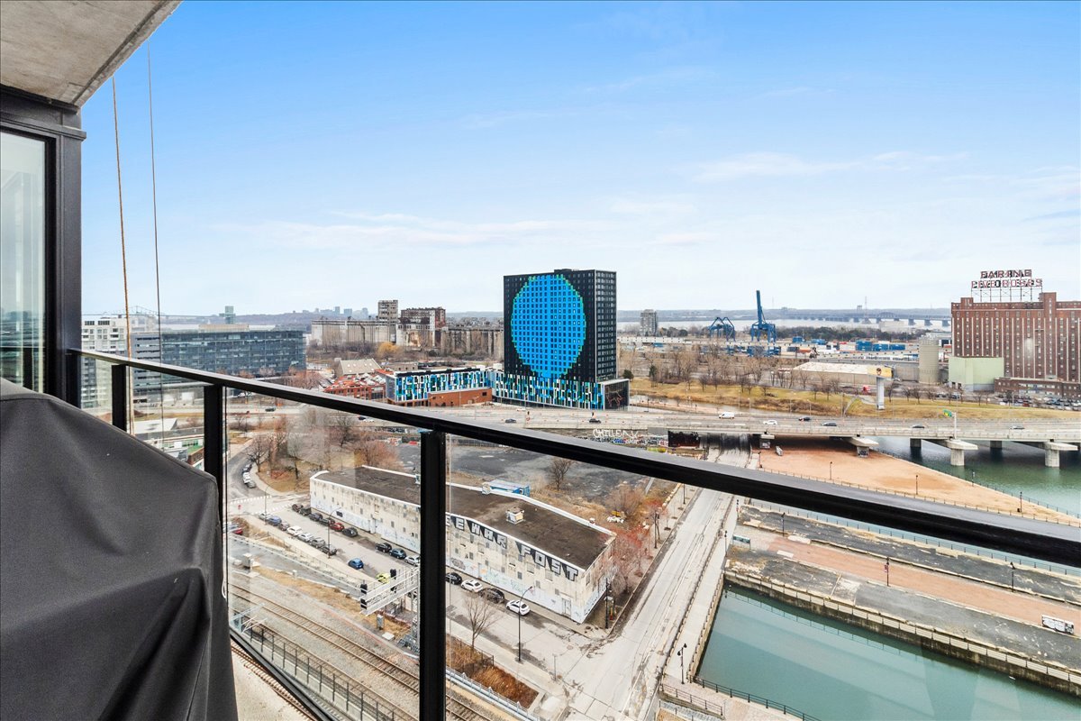 This corner unit stands out with its abundant natural light, expansive windows and unobstructed views. It offers remarkable views of the Old Port, the bridges, the Farine Five Roses sign, Peel Basin and Peel Street, while overlooking the bike path and the Lachine Canal. The open-concept living area seamlessly connects the living room, dining room and kitchen. The unit features two bedrooms and two bathrooms, including an ensuite to the primary bedroom.