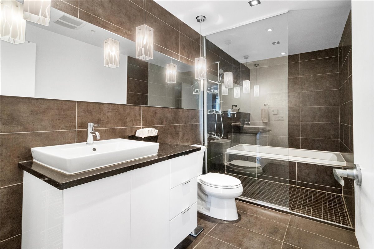 The building is secure and well maintained, with an evening doorman and quality common areas, including a rooftop terrace with BBQ and panoramic views, a lounge with billiard table, an outdoor heated pool, a sauna and a fitness room.