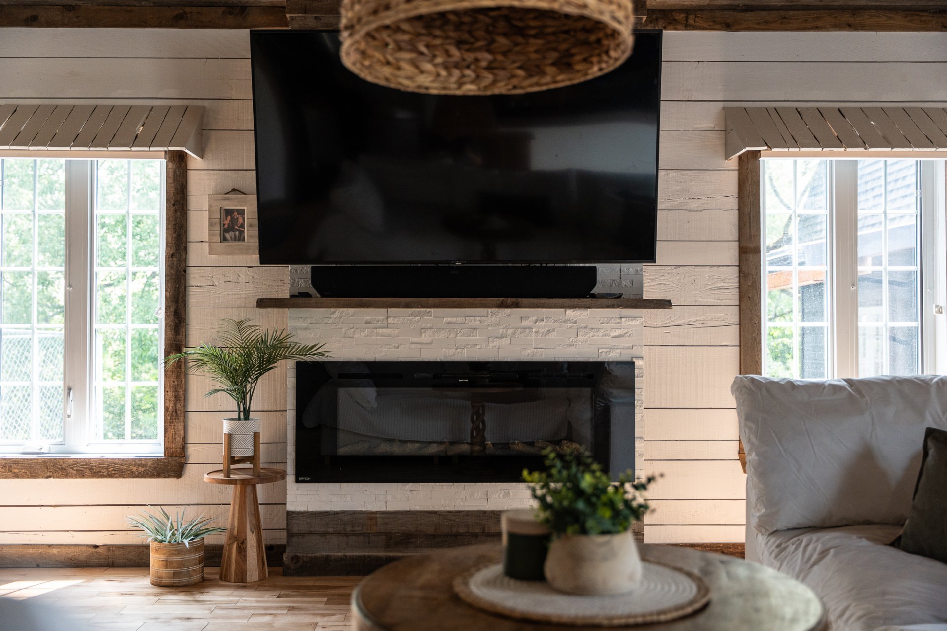 - Poles, blinds, curtains, light fixtures, 80" living room TV with wall mount, sound system + Samsung soundbar + subwoofer, alarm system, smart doorbell, camera system (6x), garage door remotes (2x), wood stove in the garage, electric fireplace, central vacuum and accessories, water softener, Bionest system, all appliances, washer, dryer.