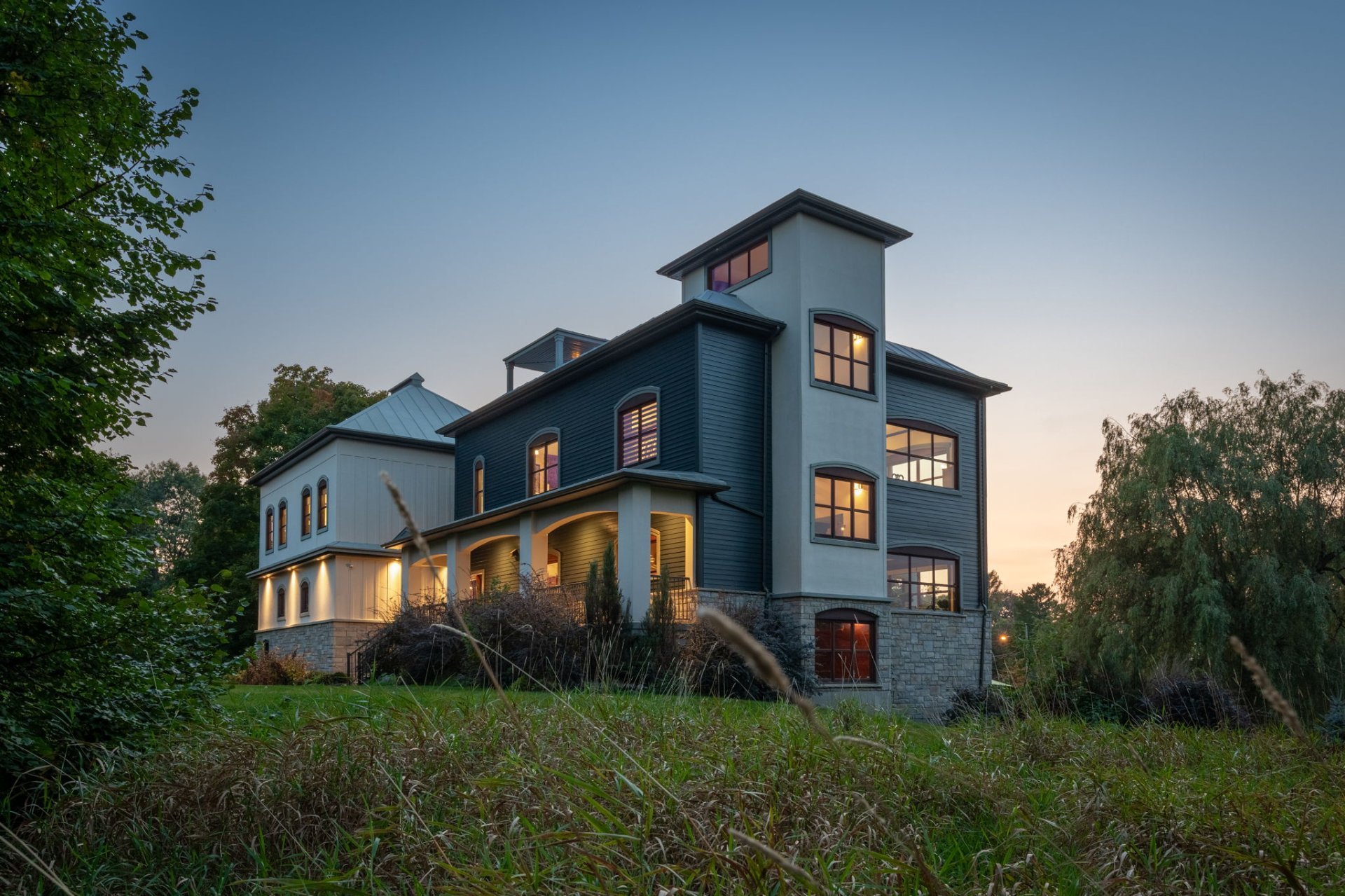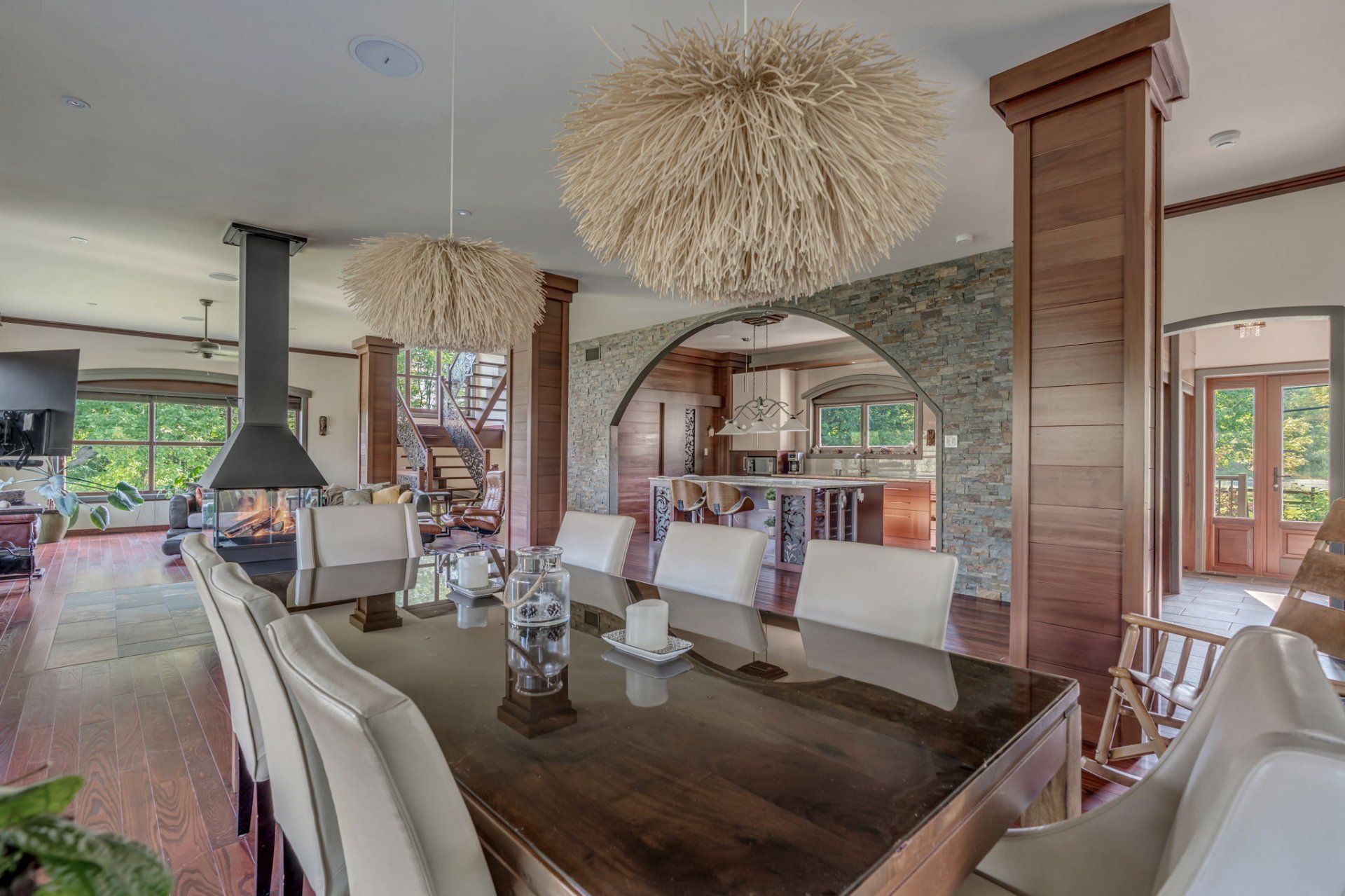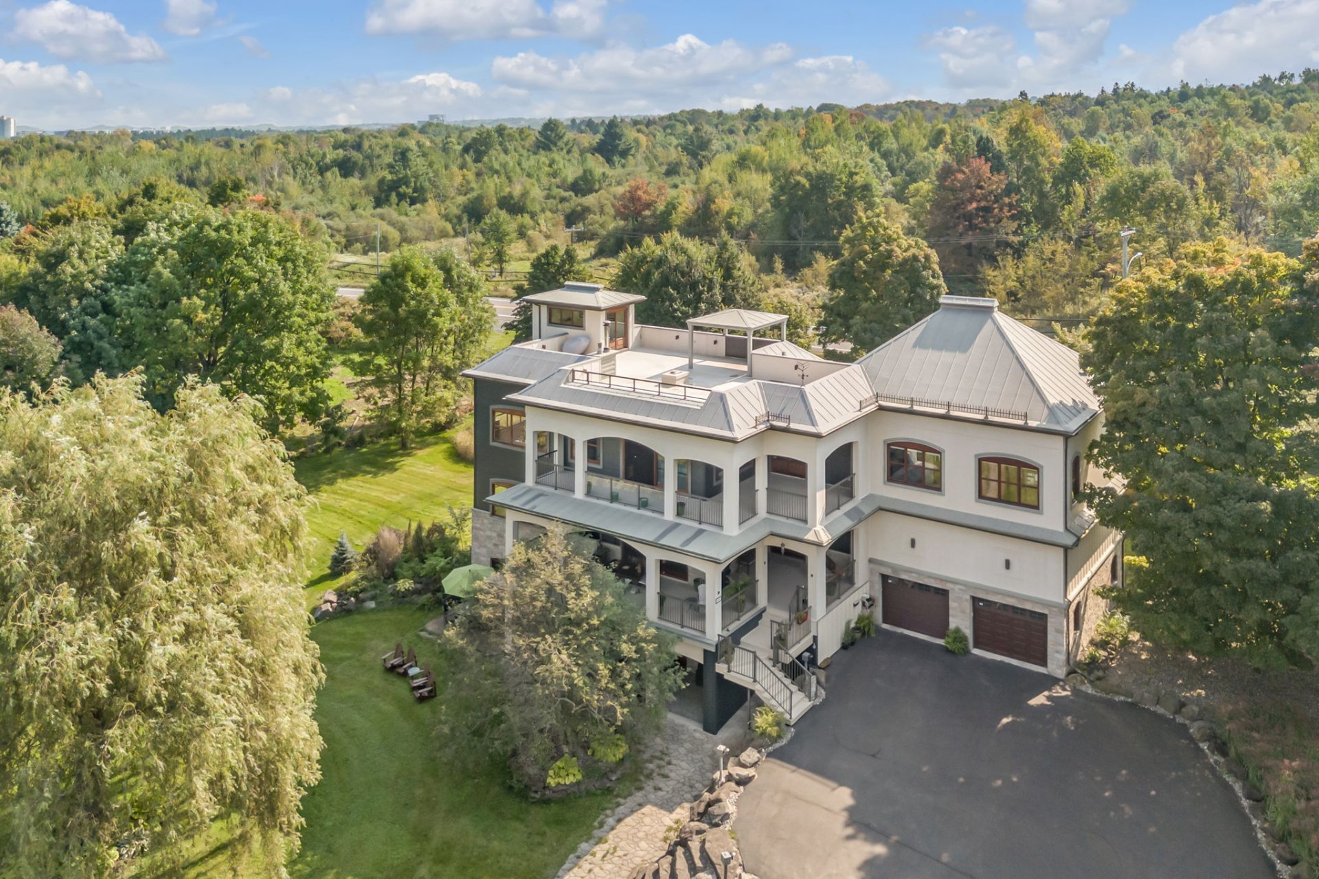 Discover this exceptional property, where modern Spanish-inspired architecture meets custom materials of unparalleled quality. Nestled on a vast estate with a natural pond, stream, and private forest, it offers an idyllic living environment surrounded by nature, with views of the St. Lawrence River, just 7 minutes from the bridges. Every detail exudes luxury and well-being, creating a true haven of peace. A large loft above the garage allows you to welcome your loved ones in an elegant and refined setting, for an unmatched living experience. Live the perfect harmony of nature, luxury, and serenity in this unique gem!