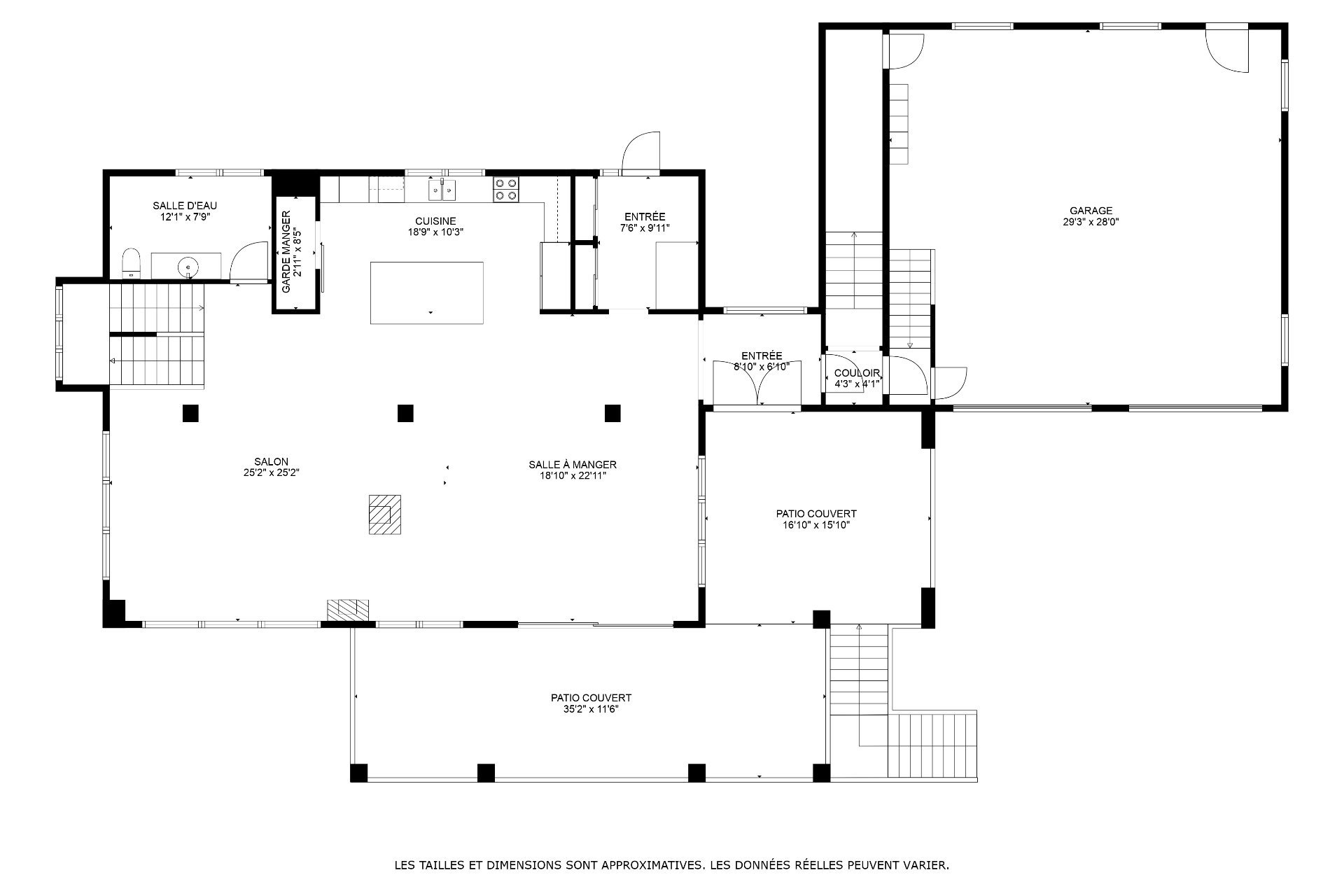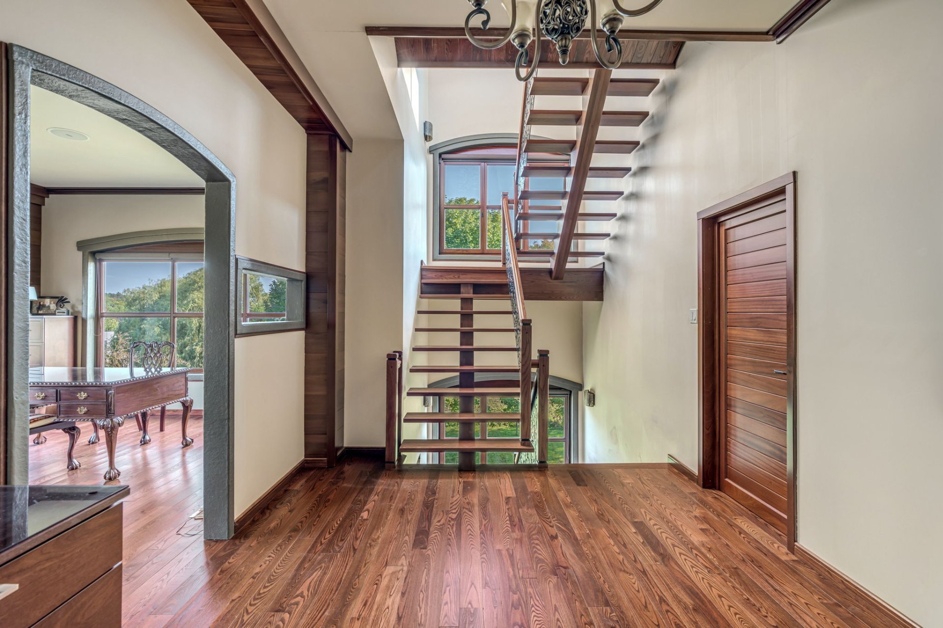 - Custom-made African mahogany doors and windows from **Prodomo Montreal**, crafted from the owner's wood.