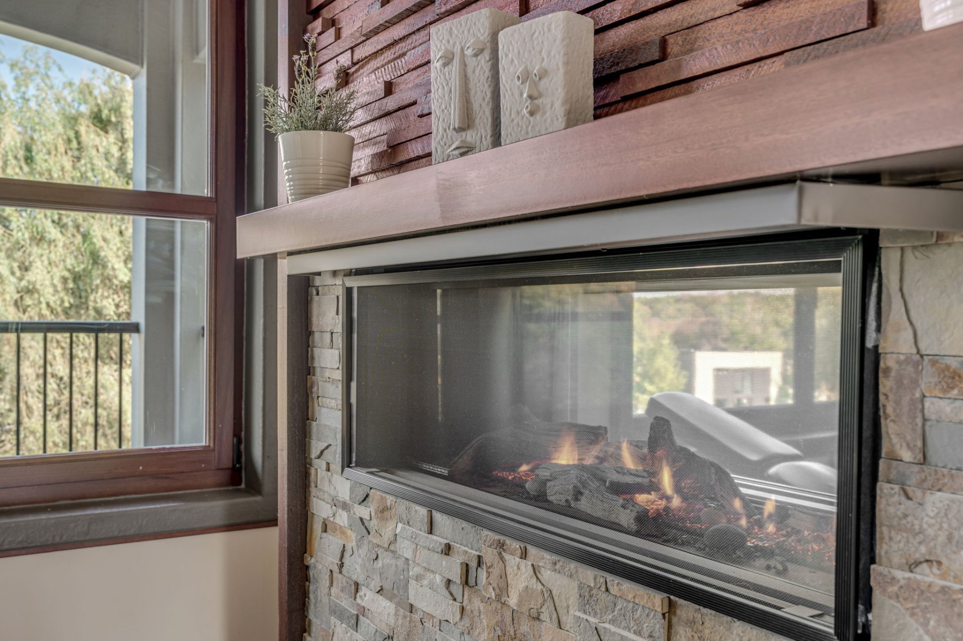 - Triple-pane windows with UV protection in fiberglass and mahogany.