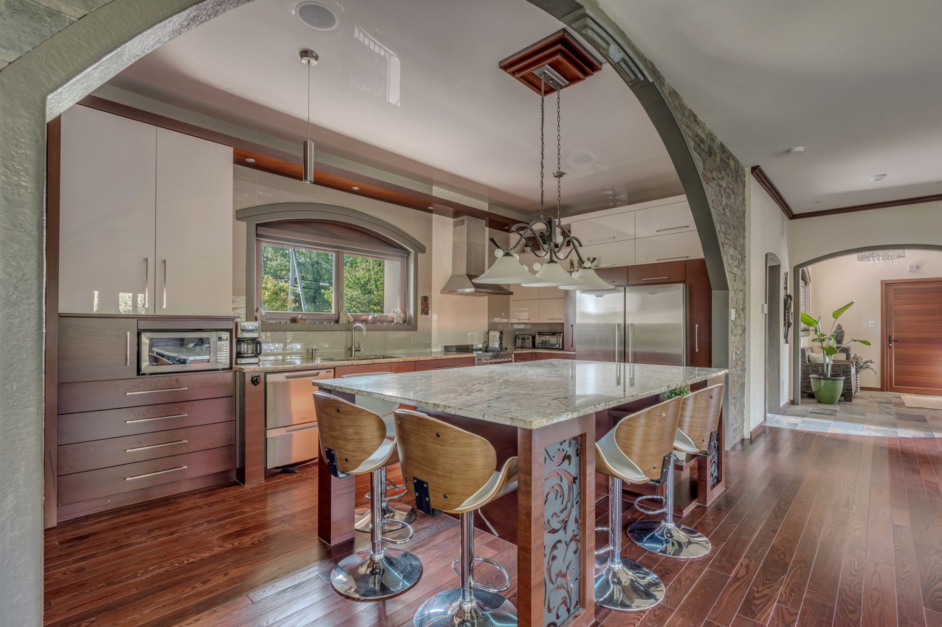 - Window treatments, electric garage door opener, light fixtures, range hood, stove, refrigerator, dishwasher, built-in pantry, 2 kitchen island benches, wood and gas fireplace, 2 TV mounts, 5 bar stools in the basement.