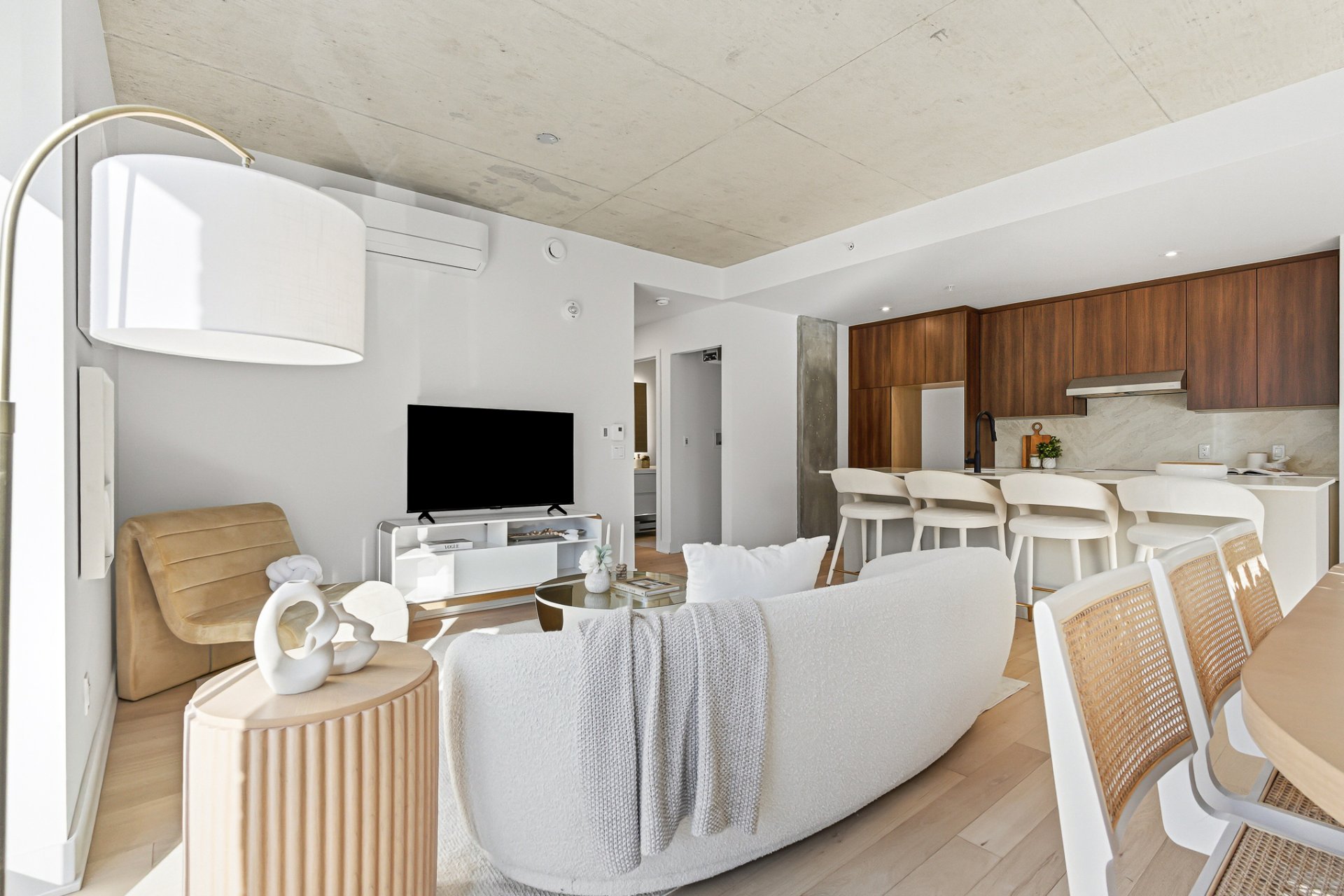 QV Outremont -- ideally located at the corner of Querbes and Van Horne streets, just 500 m from Outremont metro station. Close to top schools, the new Université de Montréal campus, and all essential services.Beautiful corner unit offering two bedrooms and two bathrooms. High-end finishes including quartz countertops and backsplashes, engineered wood flooring, and large windows providing abundant natural light. Concrete construction with elevator.Garage and storage available as optional purchases. Covered by the GCR warranty.