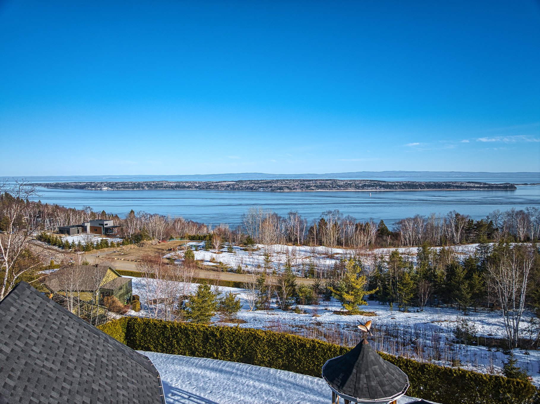 Located at the top of Baie-Saint-Paul, this residence overlooks a breathtaking landscape. Classic and timeless in style, it was custom-designed for a couple seeking balance. South-facing, it welcomes natural light all day long. Its glass turret frames the St. Lawrence River and Île aux Coudres like a living work of art. This retreat combines warmth, authenticity, and refinement. With a separate-entry basement unit, it's ideal for intergenerational living. A place to slow down, gather, reflect... and truly live.