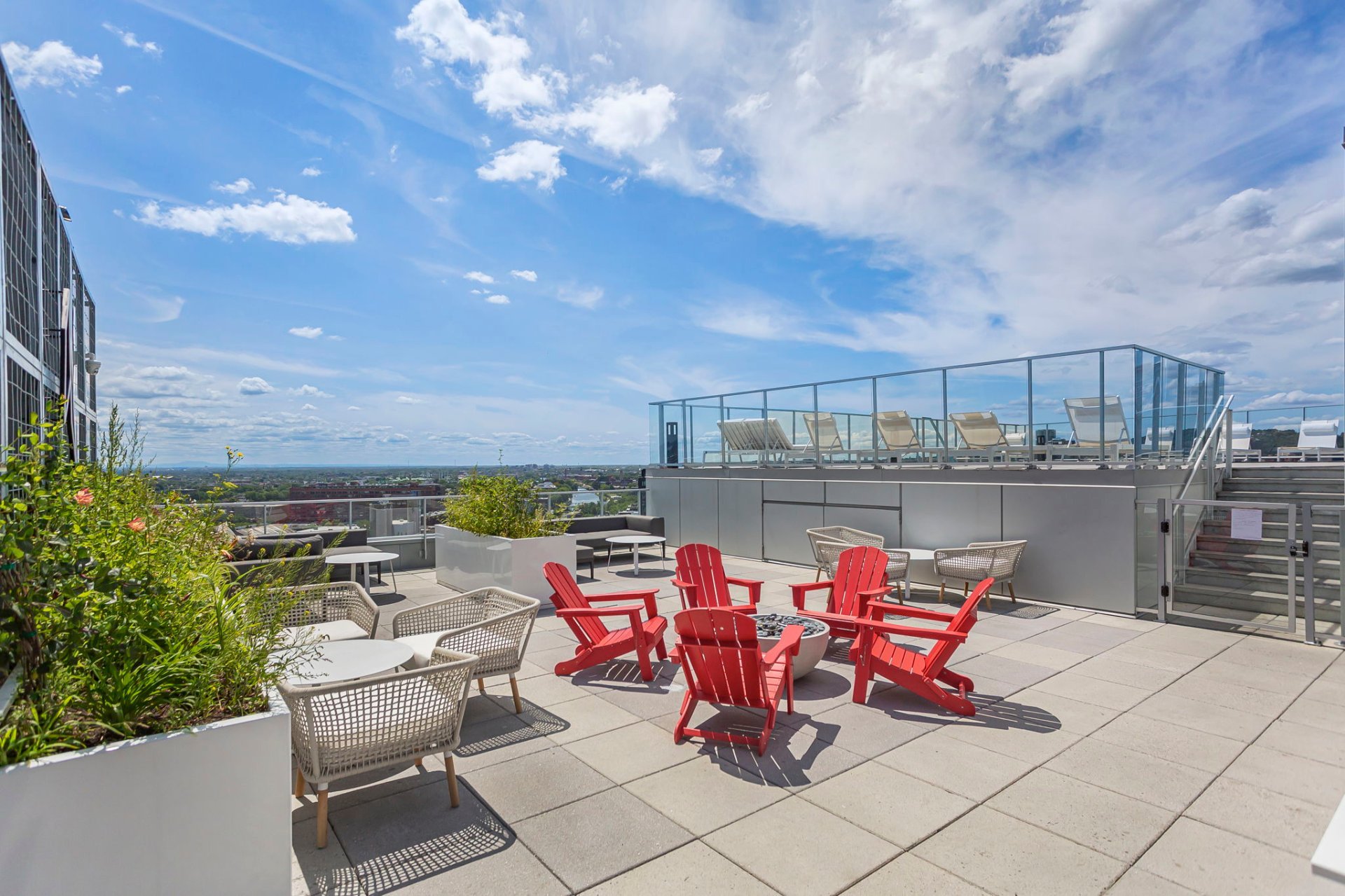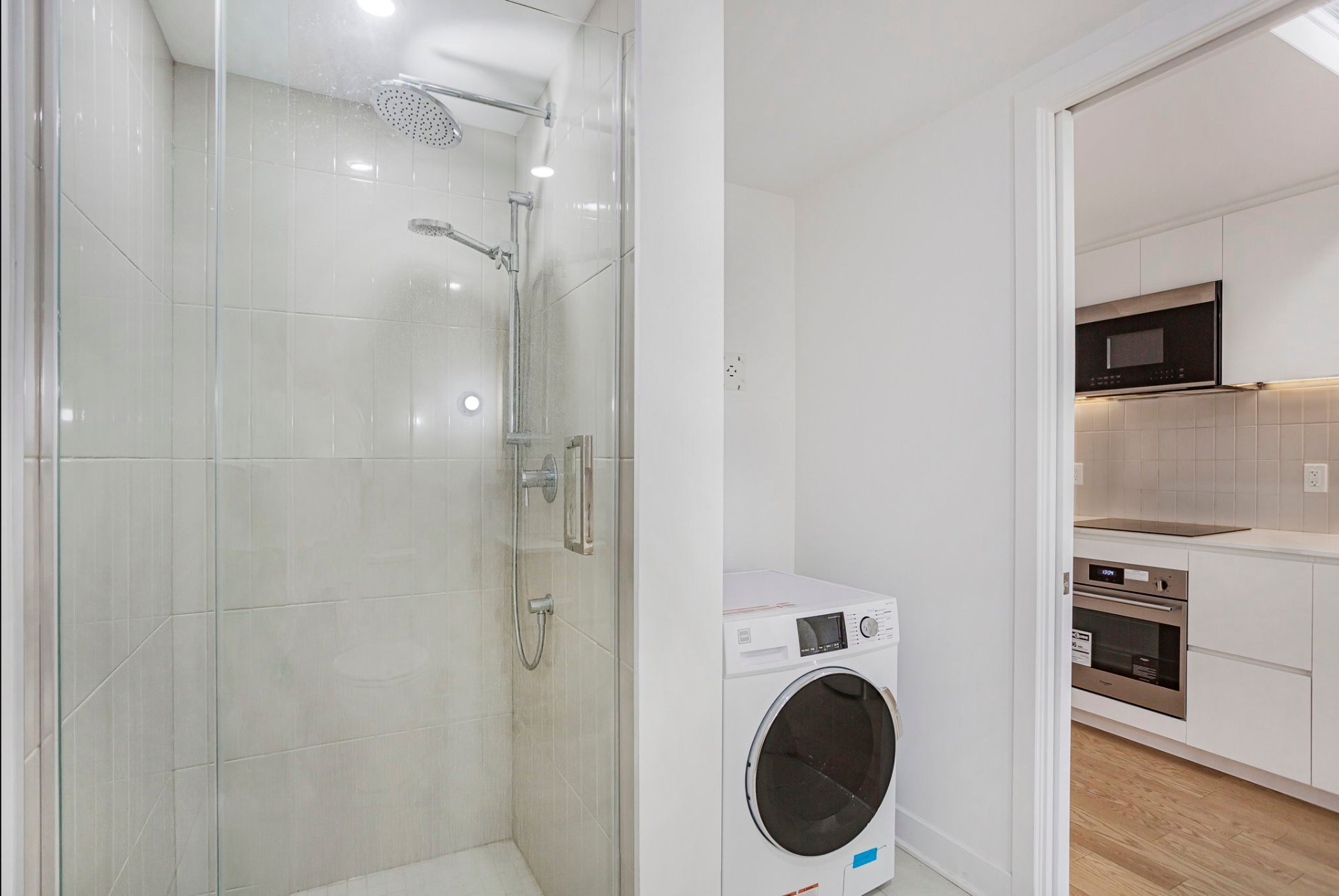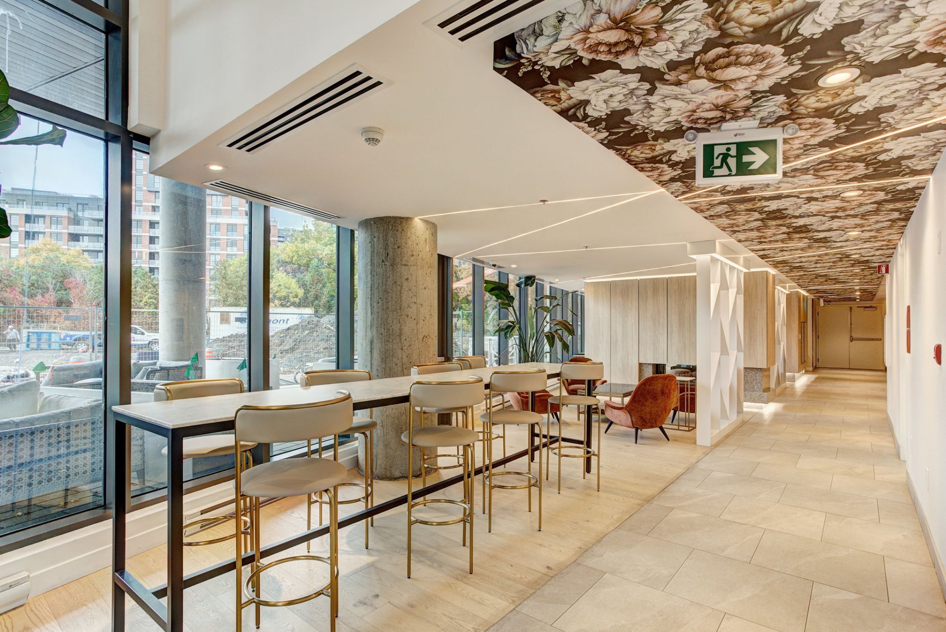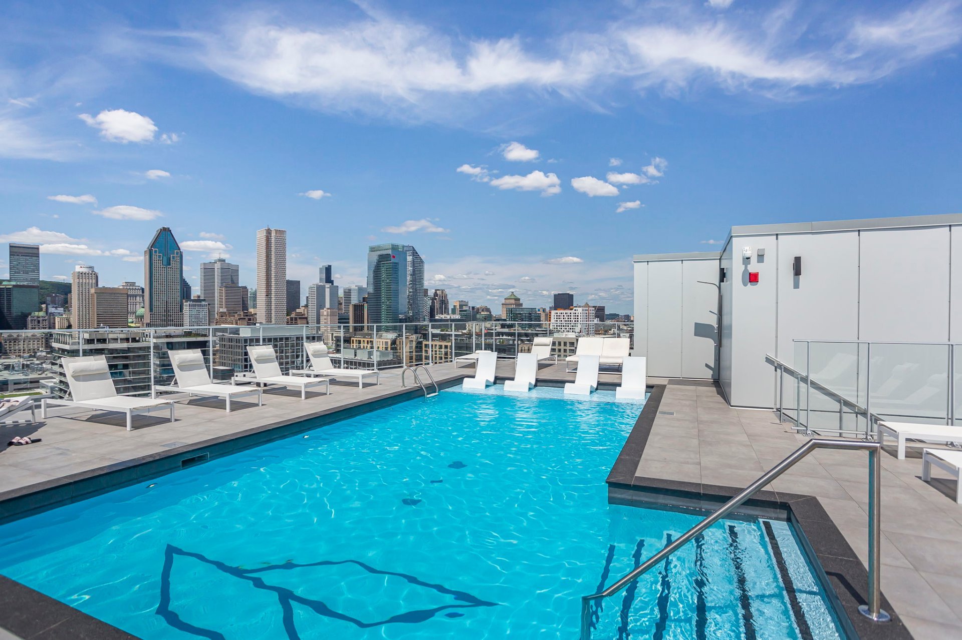 Hotel-inspired studio at WELLINGTON Sur Le Bassin, where natural serenity meets the city's vibrant energy. Bright unit with floor-to-ceiling glass doors opening to a great view on the courtyard. Fully equipped kitchen with storage, open-concept space accommodating bed, living area, and workspace. Large bathroom with glass shower and in-unit laundry. Premium amenities: rooftop terrace with panoramic views, outdoor pool, BBQs, lounge with pool table, modern gym, and 24/7 security. Prime location in the heart of Griffintown, steps from everything!