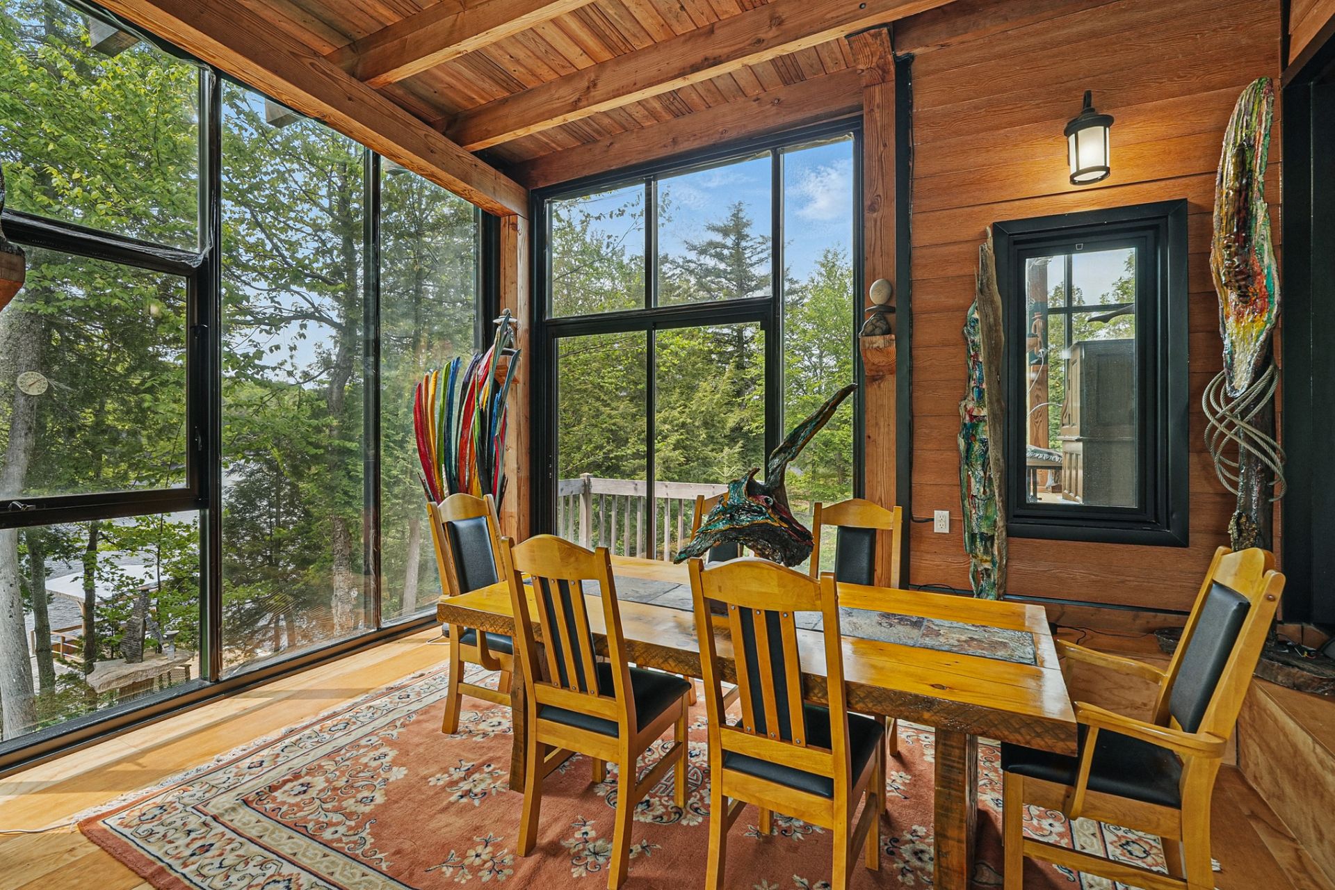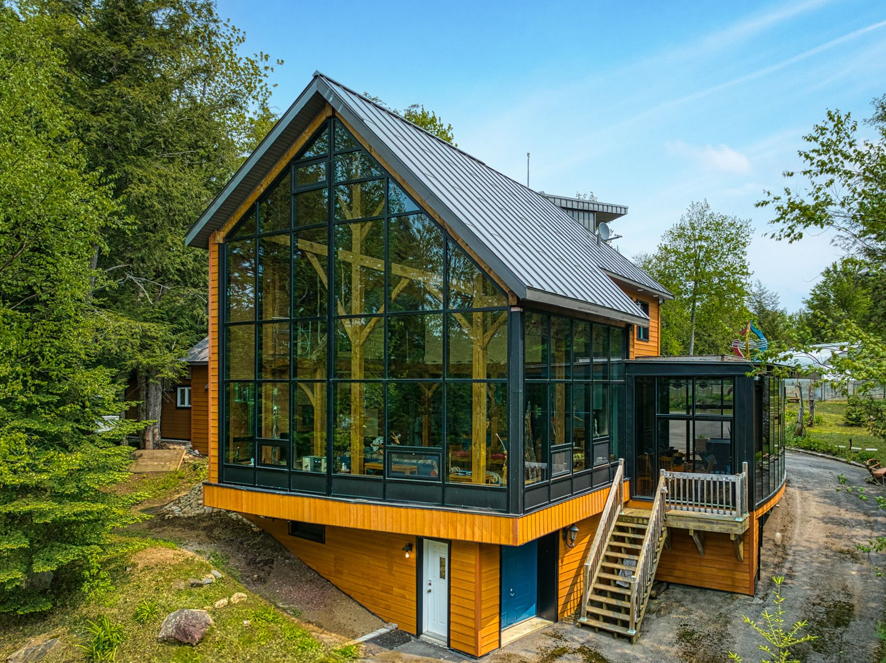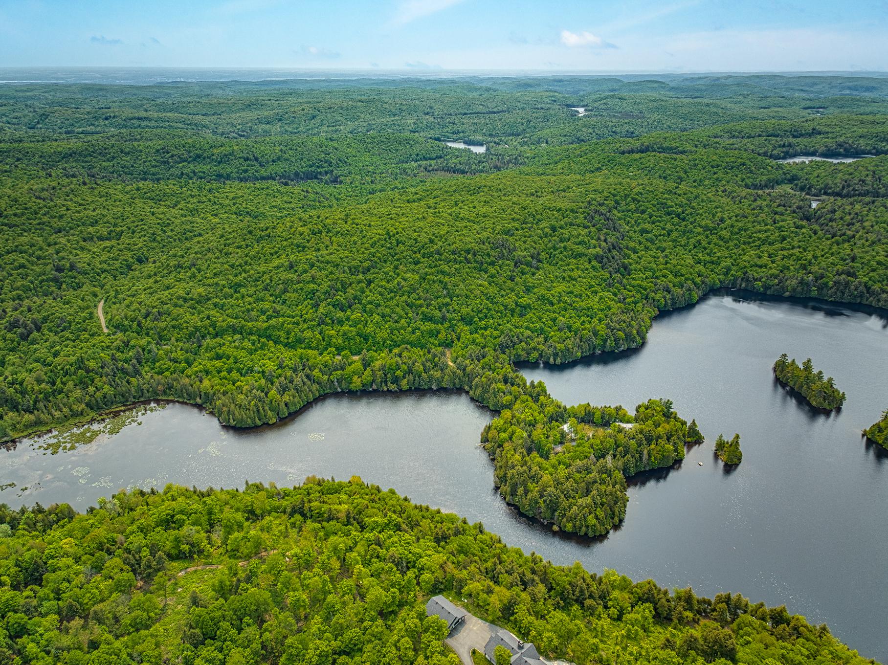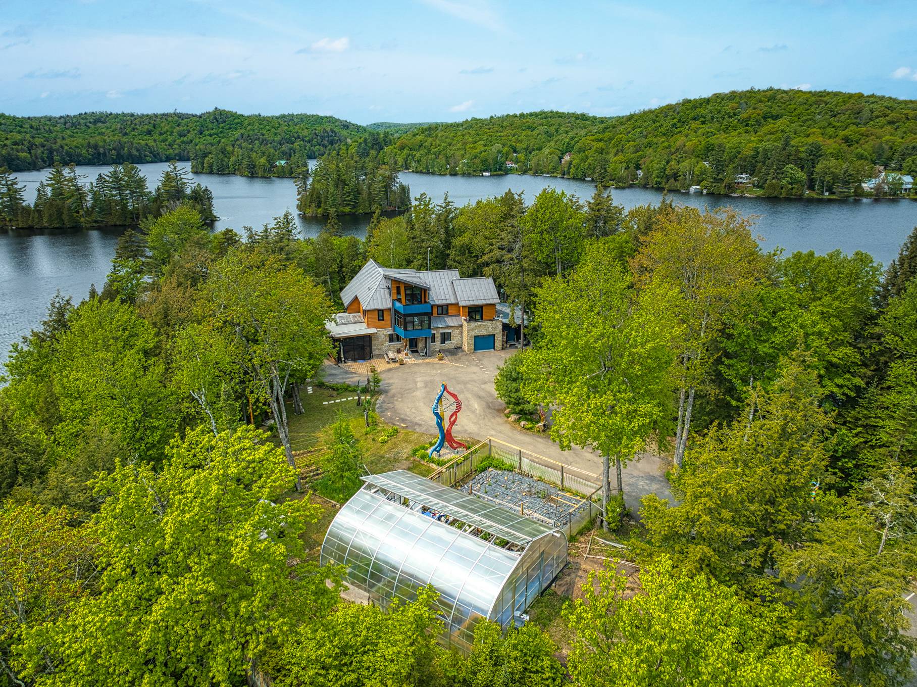 Discover a truly unique estate. The four-story main residence, built in 2008 atop a rocky bluff, features 30-foot south-west facing glass walls, offering breathtaking panoramic views. Highlights include: 5 bedrooms | 5 bathrooms, 2 living rooms + wellness suite. A grand solarium with spa, overlooking the lake. Comfort & Self-Sufficiency: 2 geothermal wells (gas + electric), 2 heat pumps + 26 kW automatic generator, dual H-Q power connection (underground and overhead).Private dock, fully automated organic greenhouse, vegetable garden, fruit trees, thriving forest. A Unique Lifestyle just steps from Lac Carling Golf.