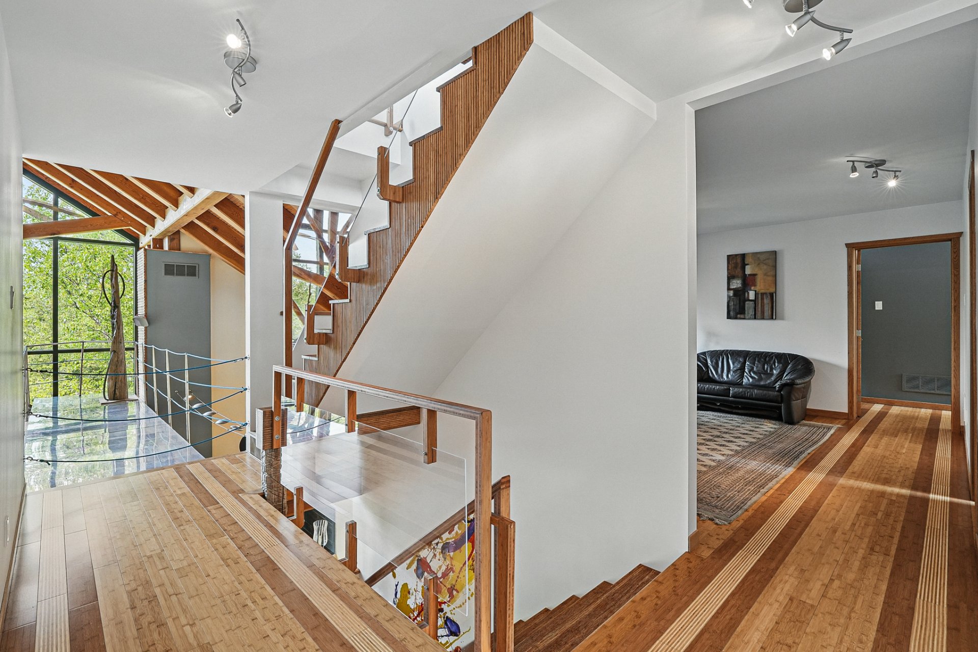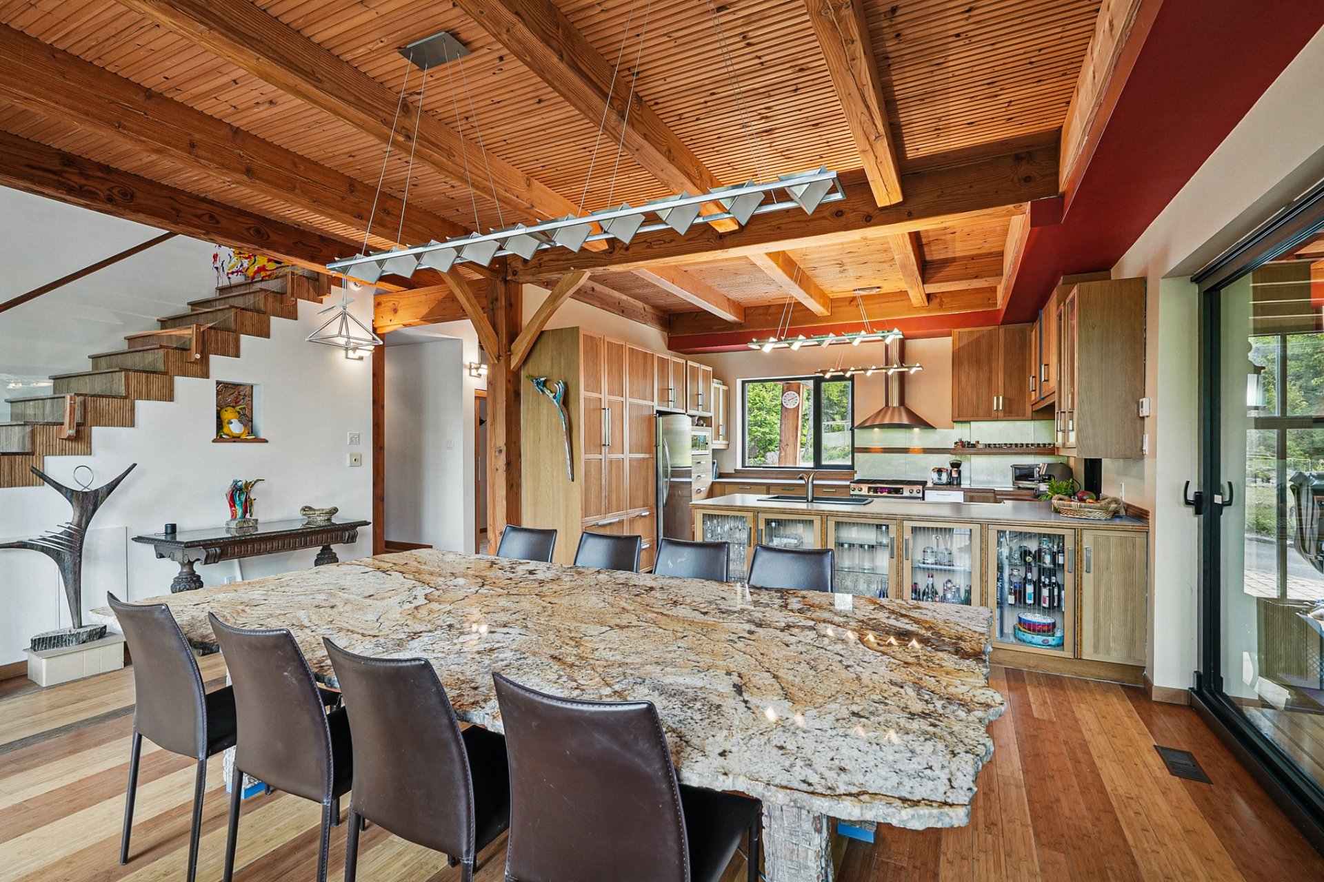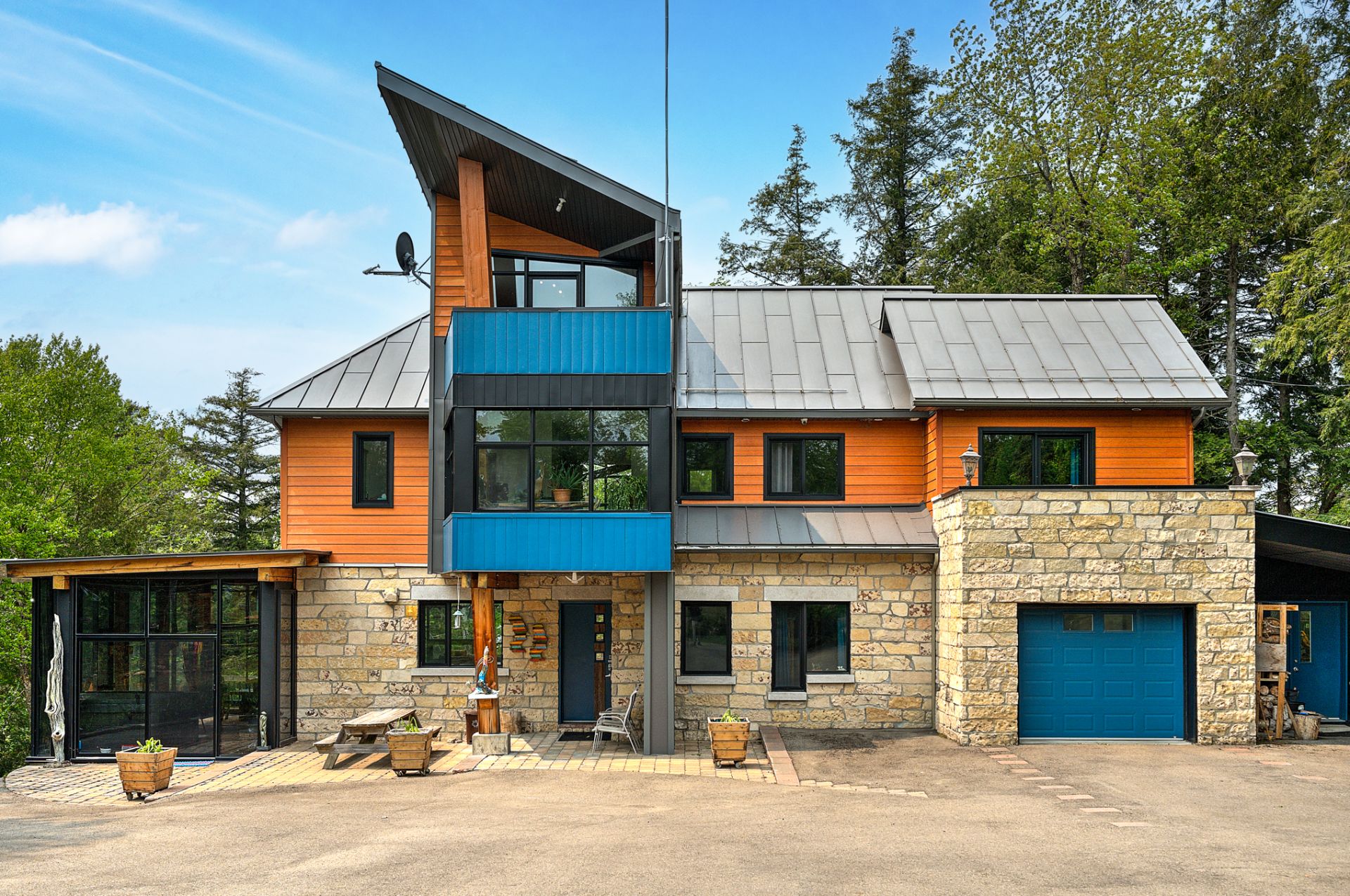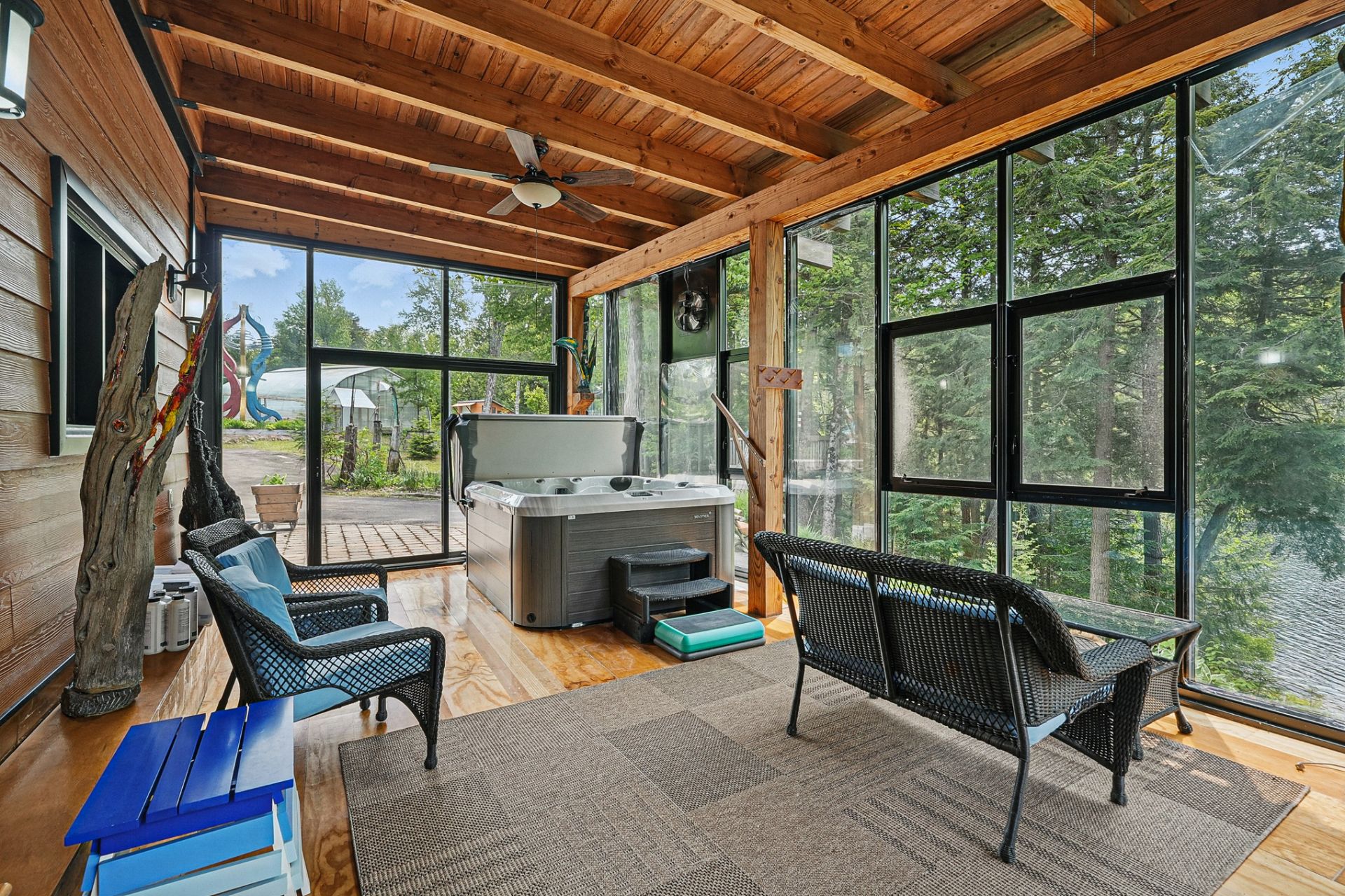 Discover a truly unique estate. The four-story main residence, built in 2008 atop a rocky bluff, features 30-foot south-west facing glass walls, offering breathtaking panoramic views. Highlights include: 5 bedrooms | 5 bathrooms, 2 living rooms + wellness suite. A grand solarium with spa, overlooking the lake. Comfort & Self-Sufficiency: 2 geothermal wells (gas + electric), 2 heat pumps + 26 kW automatic generator, dual H-Q power connection (underground and overhead).Private dock, fully automated organic greenhouse, vegetable garden, fruit trees, thriving forest. A Unique Lifestyle just steps from Lac Carling Golf.