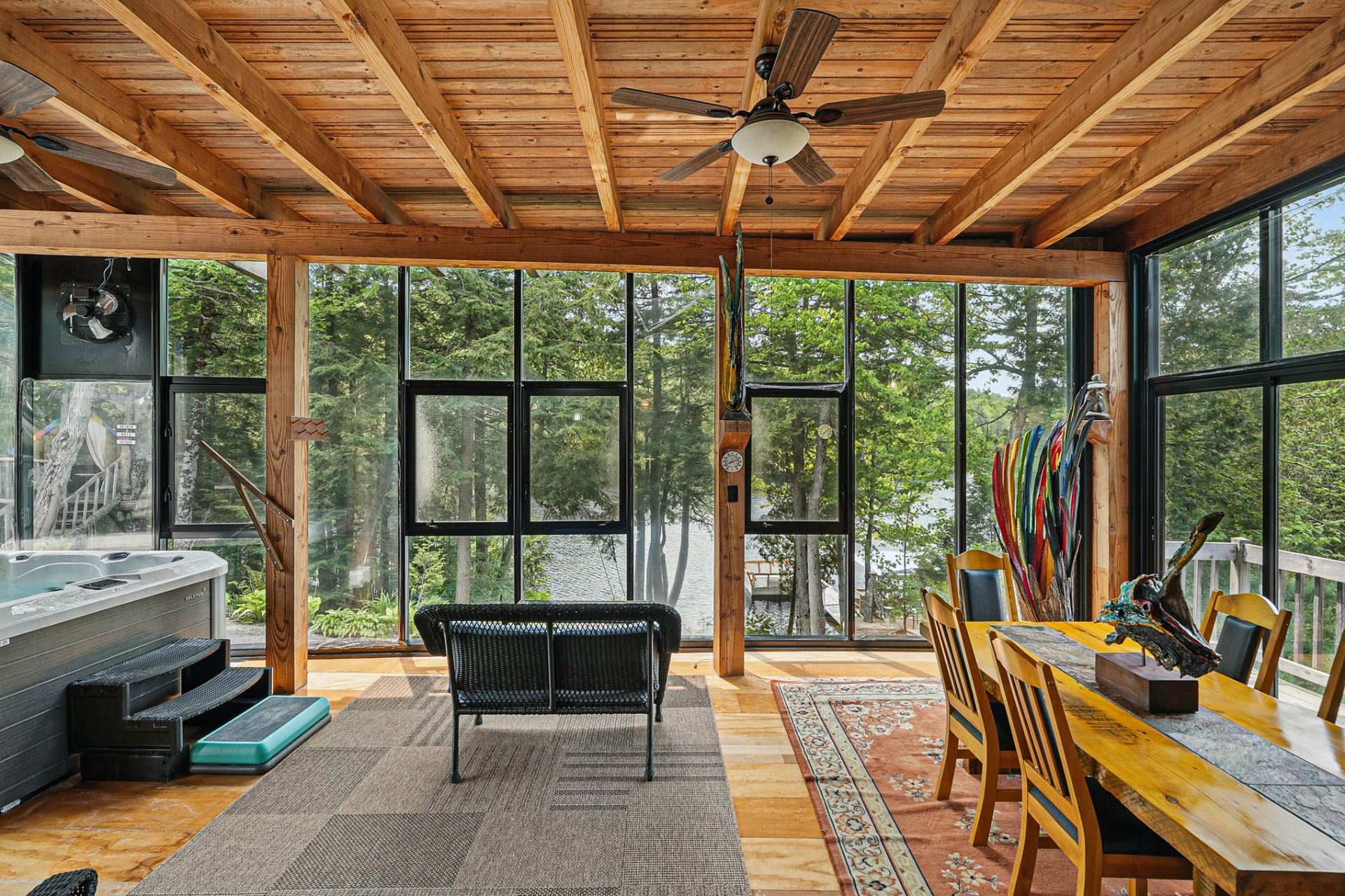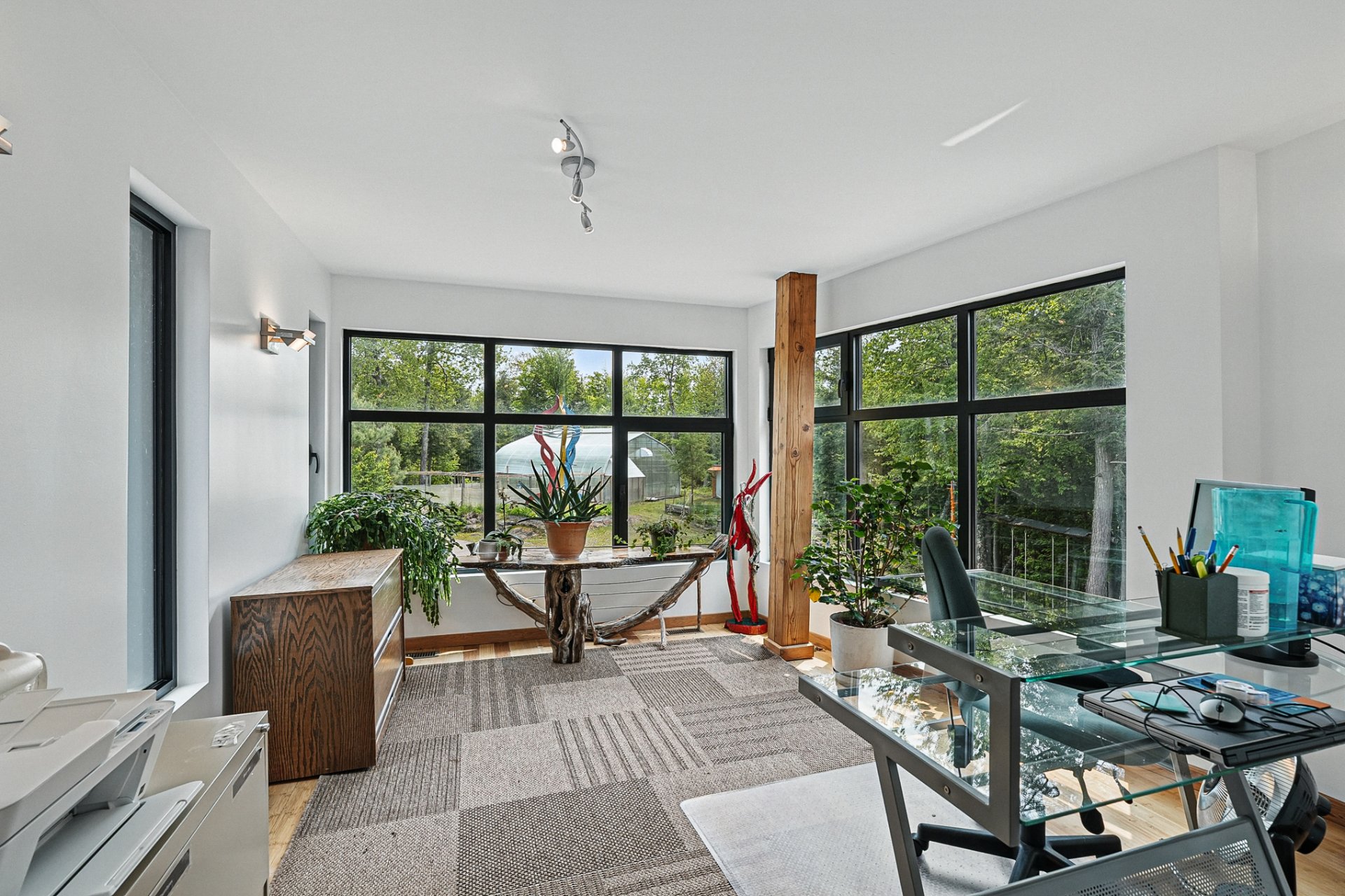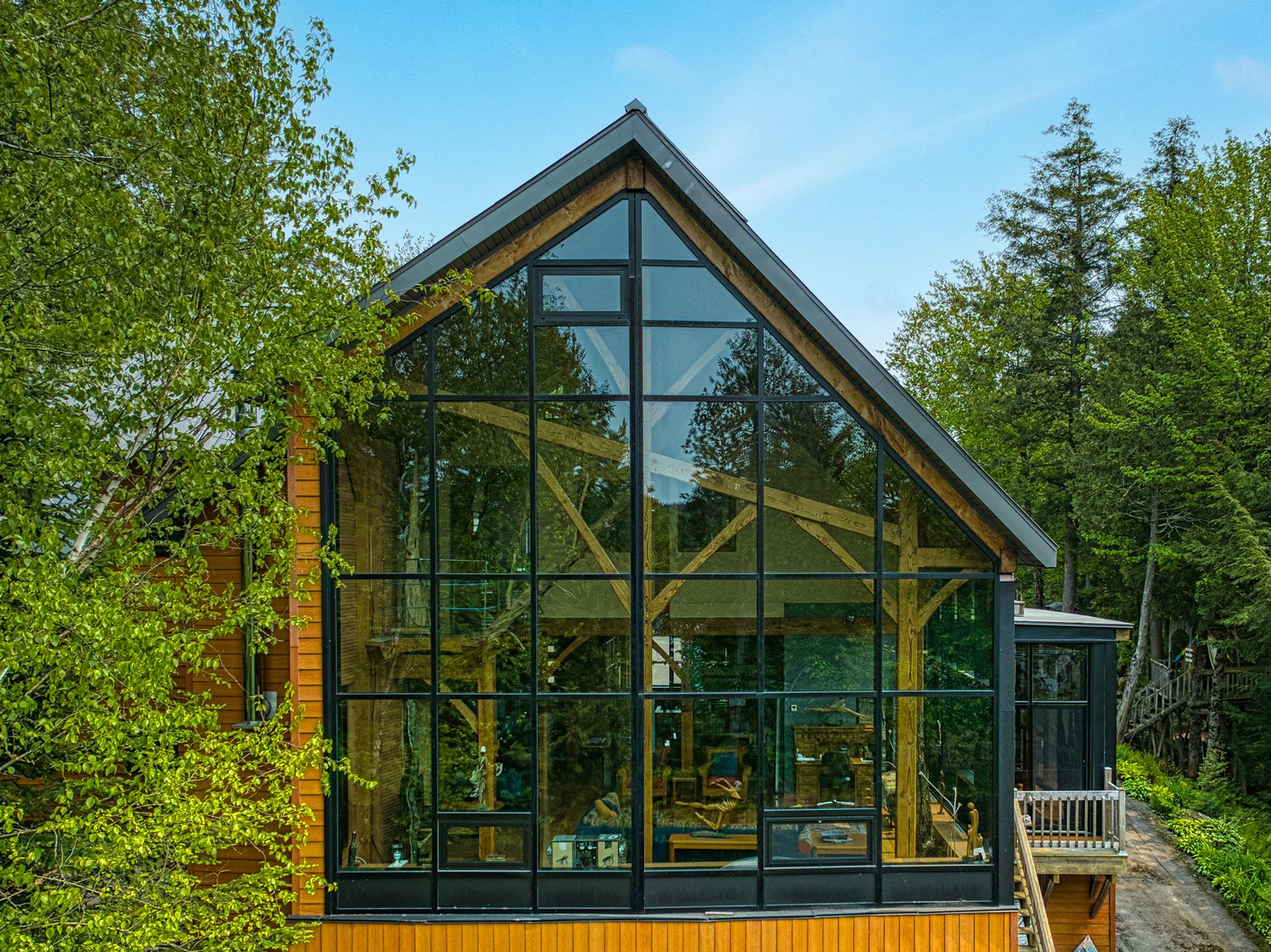 Built to Last. This residence was built for both durability and independence, and is equipped with. Two 400-foot-deep geothermal wells (one electric, one gas). 2 heat pumps (one electric with backup, one propane). A 26 kW automatic generator ensuring full energy autonomy. Dual Hydro-Québec connection (both underground and overhead). Pure well water drawn from 300 feet deep into the bedrock, of remarkable quality (4,500 photons). Exceptional Infrastructure. This estate also includes a full range of premium outdoor features. A private dock. A professional-grade, fully automated greenhouse designed for organic cultivation. A 24 x 24 ft steel shelter for heavy equipment. A thriving vegetable garden, fruit trees, and rare edible perennial plants. A rich forest ecosystem, home to moose, deer, wild turkeys, and partridges