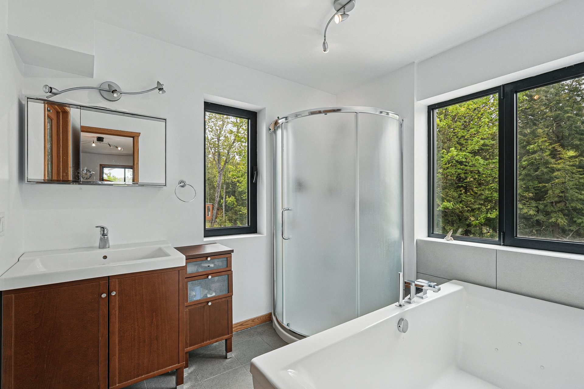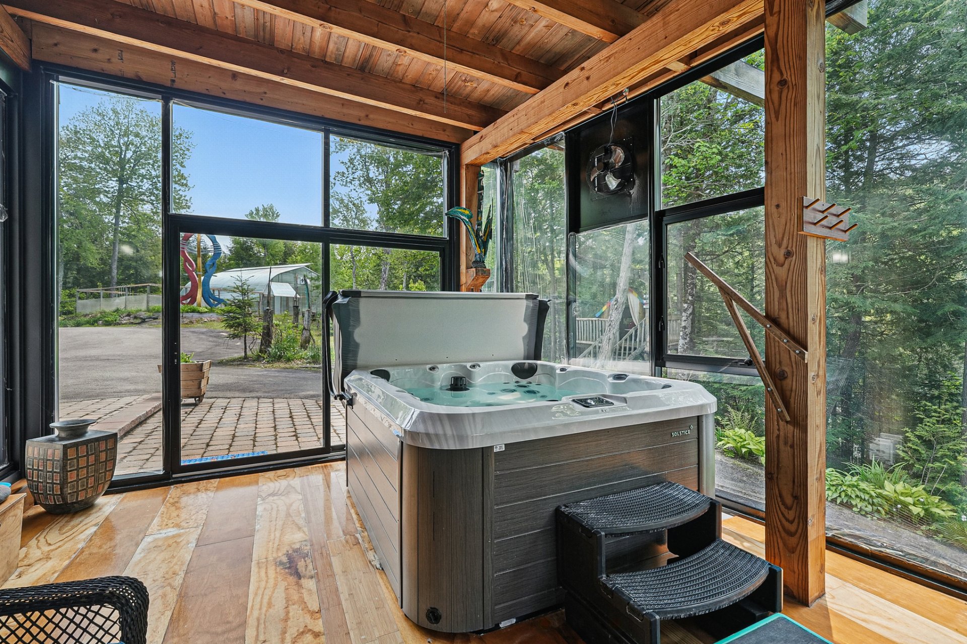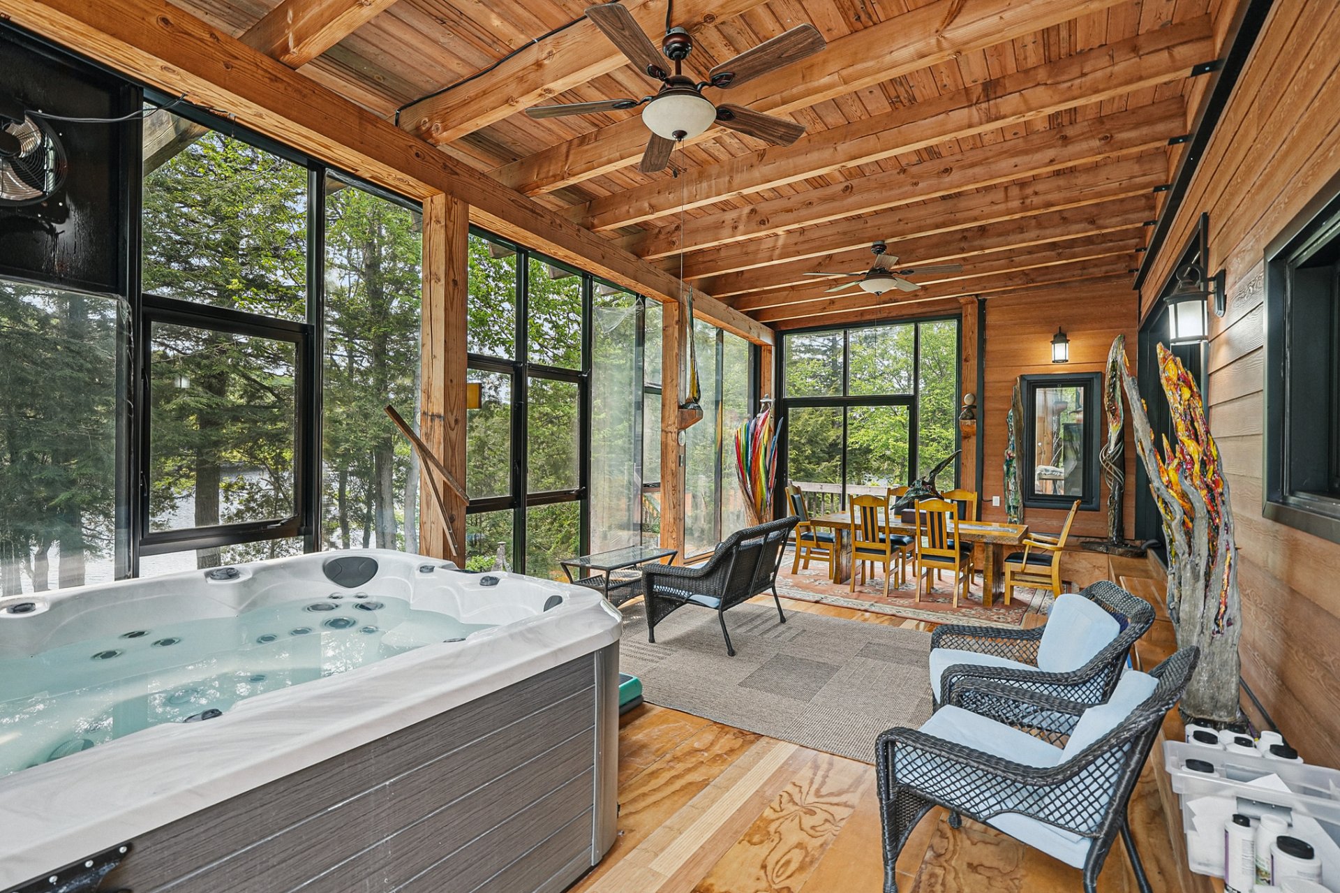 Built to Last. This residence was built for both durability and independence, and is equipped with. Two 400-foot-deep geothermal wells (one electric, one gas). 2 heat pumps (one electric with backup, one propane). A 26 kW automatic generator ensuring full energy autonomy. Dual Hydro-Québec connection (both underground and overhead). Pure well water drawn from 300 feet deep into the bedrock, of remarkable quality (4,500 photons). Exceptional Infrastructure. This estate also includes a full range of premium outdoor features. A private dock. A professional-grade, fully automated greenhouse designed for organic cultivation. A 24 x 24 ft steel shelter for heavy equipment. A thriving vegetable garden, fruit trees, and rare edible perennial plants. A rich forest ecosystem, home to moose, deer, wild turkeys, and partridges